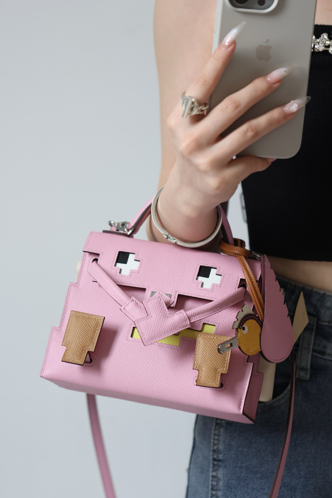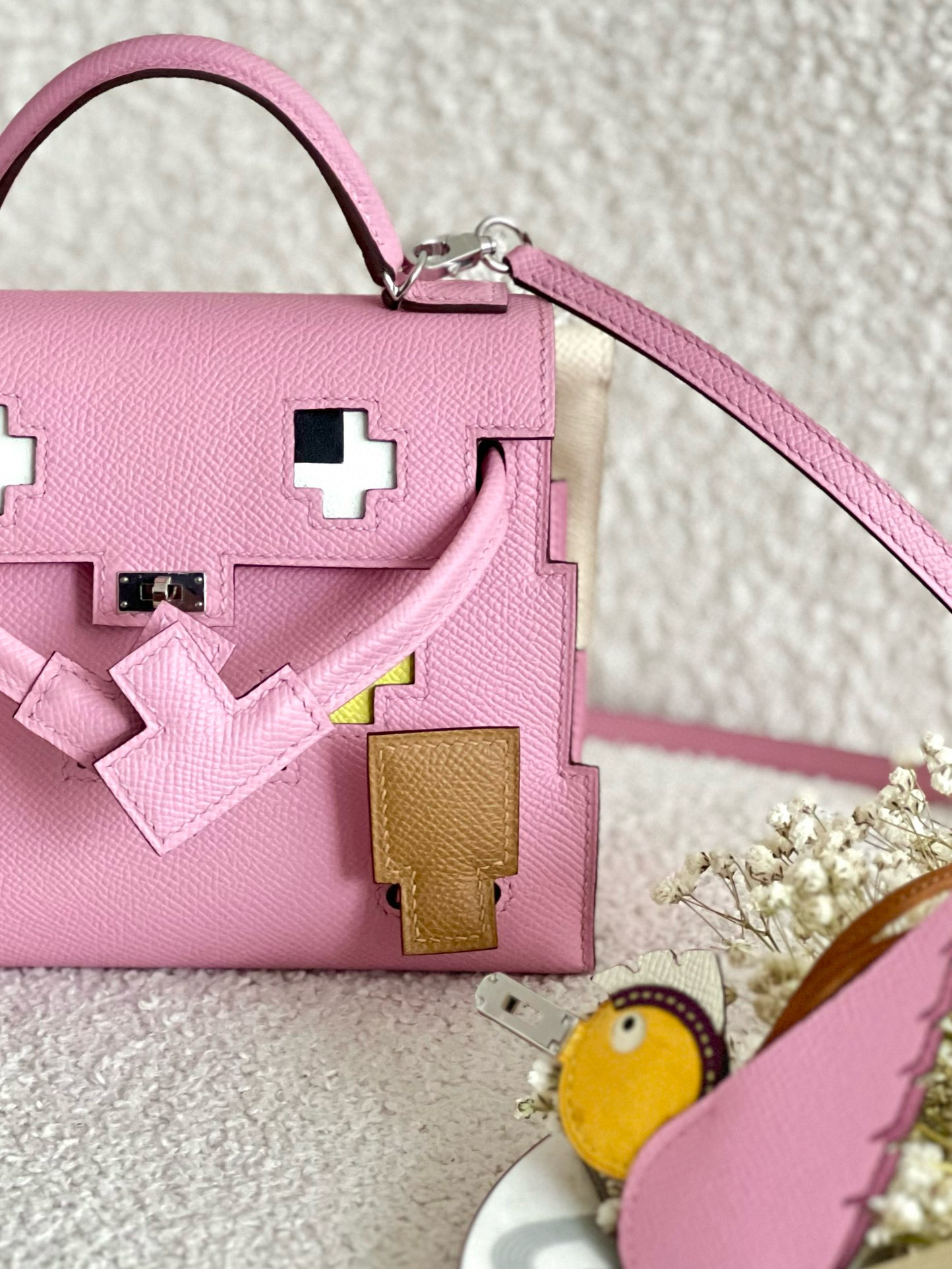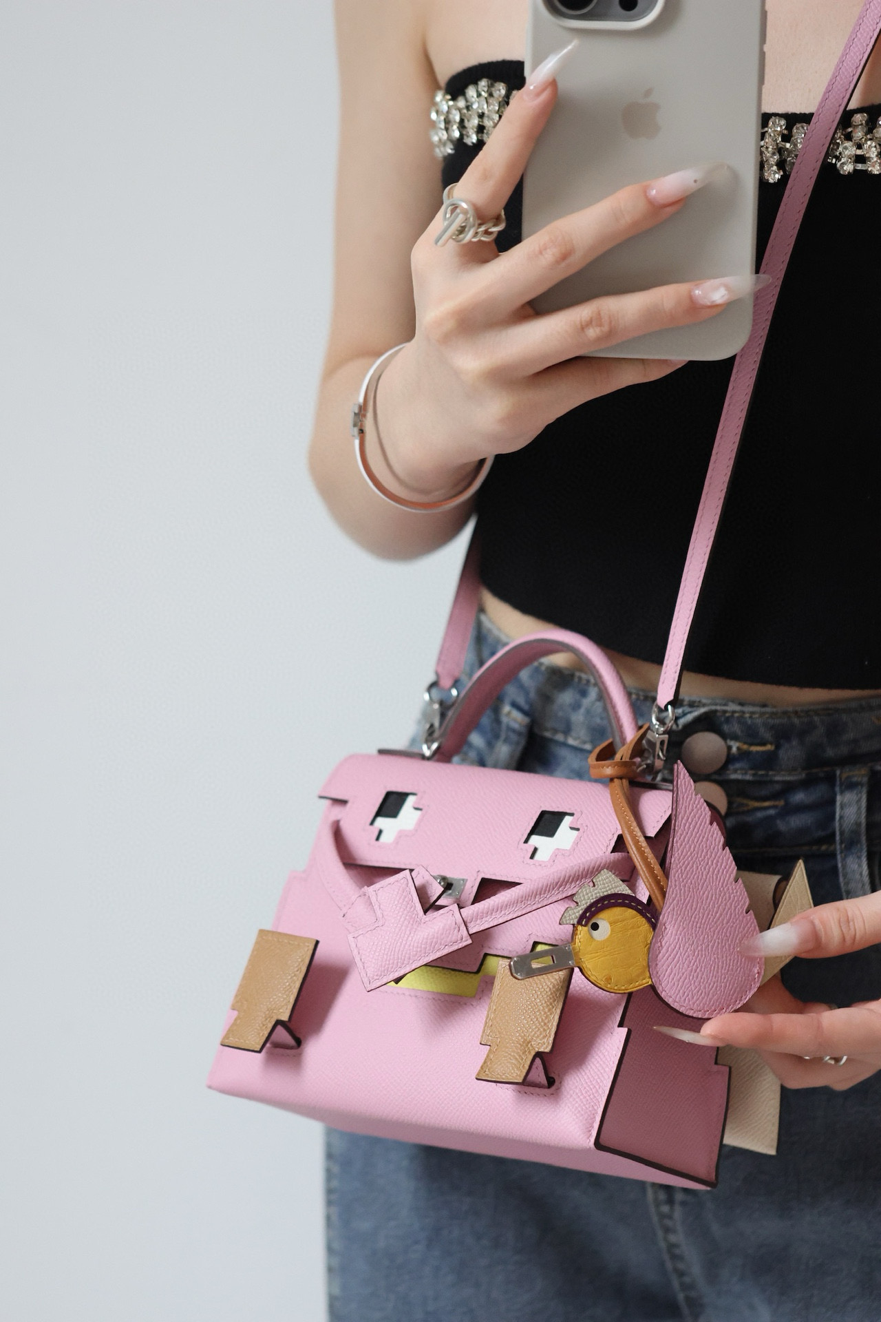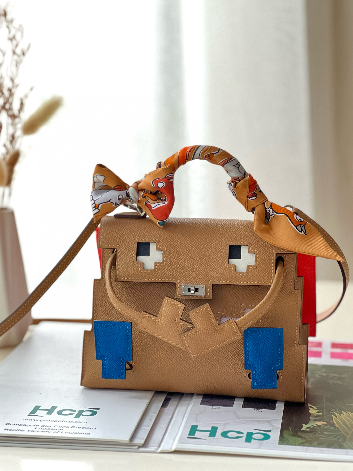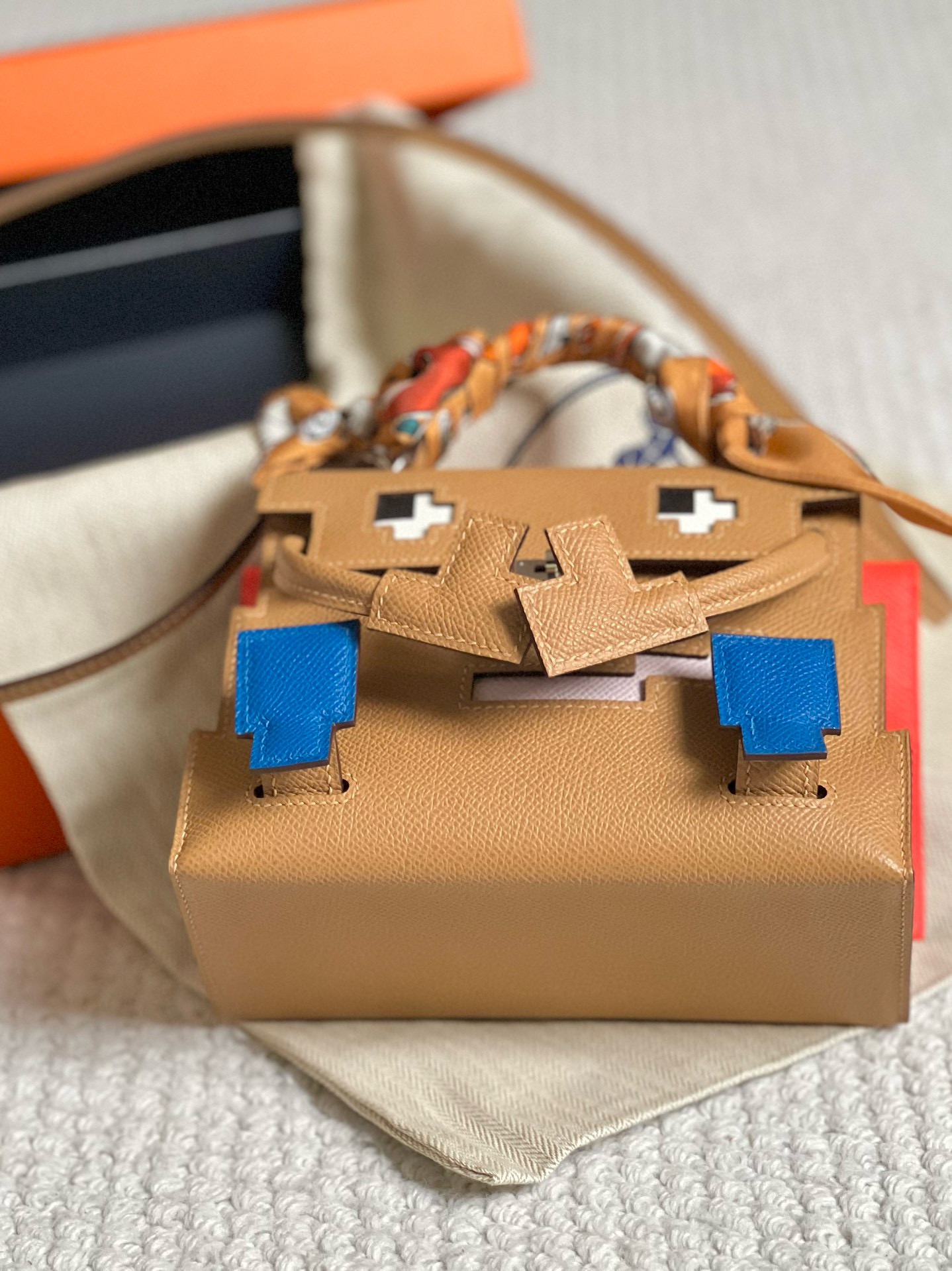 NIGO Hermes Women's Fashion Kelly Doll Mosaic Doll Silver Buckle Epsom Calf Leather Handbag Crossbody Bag #nigo98632