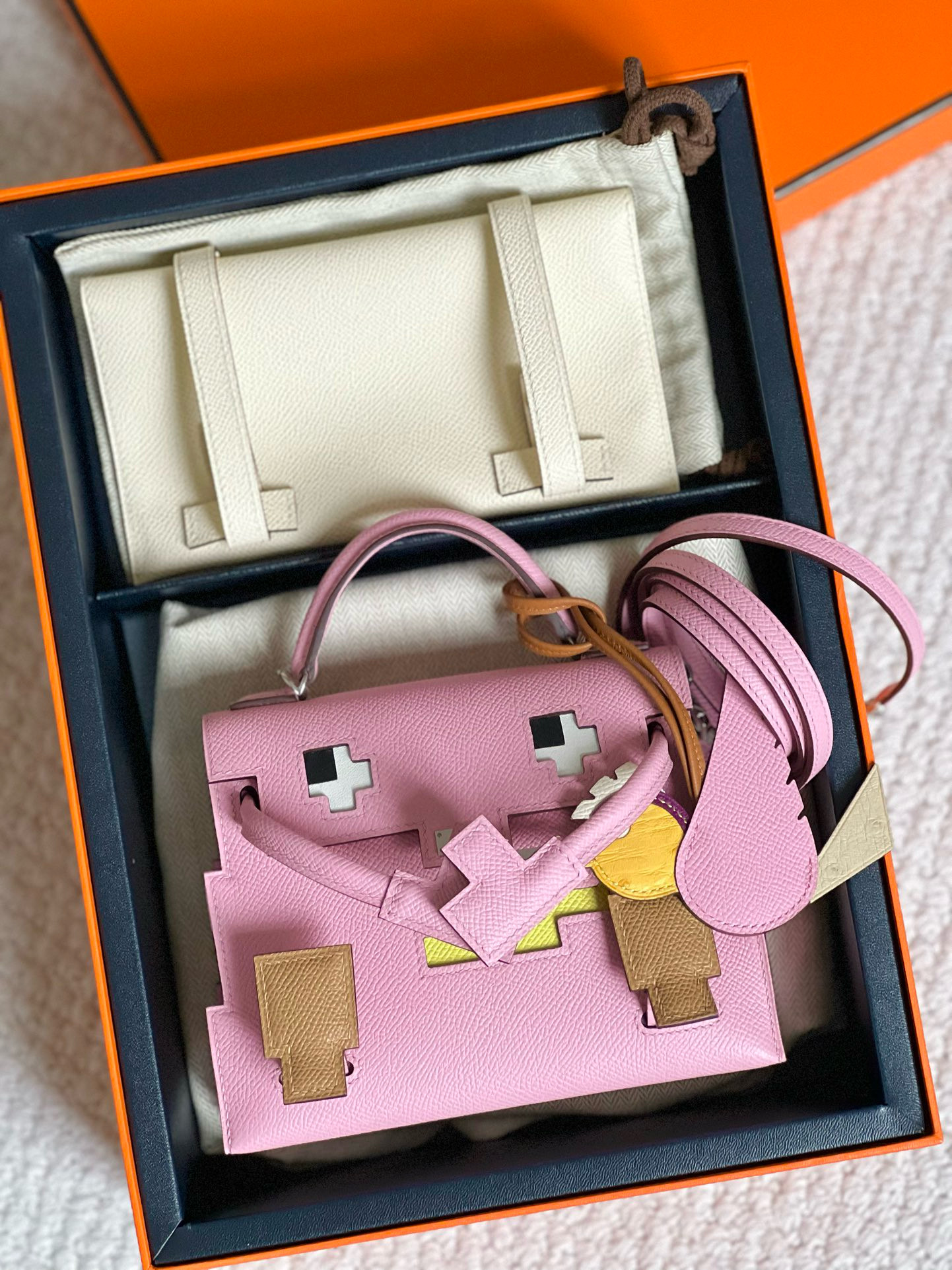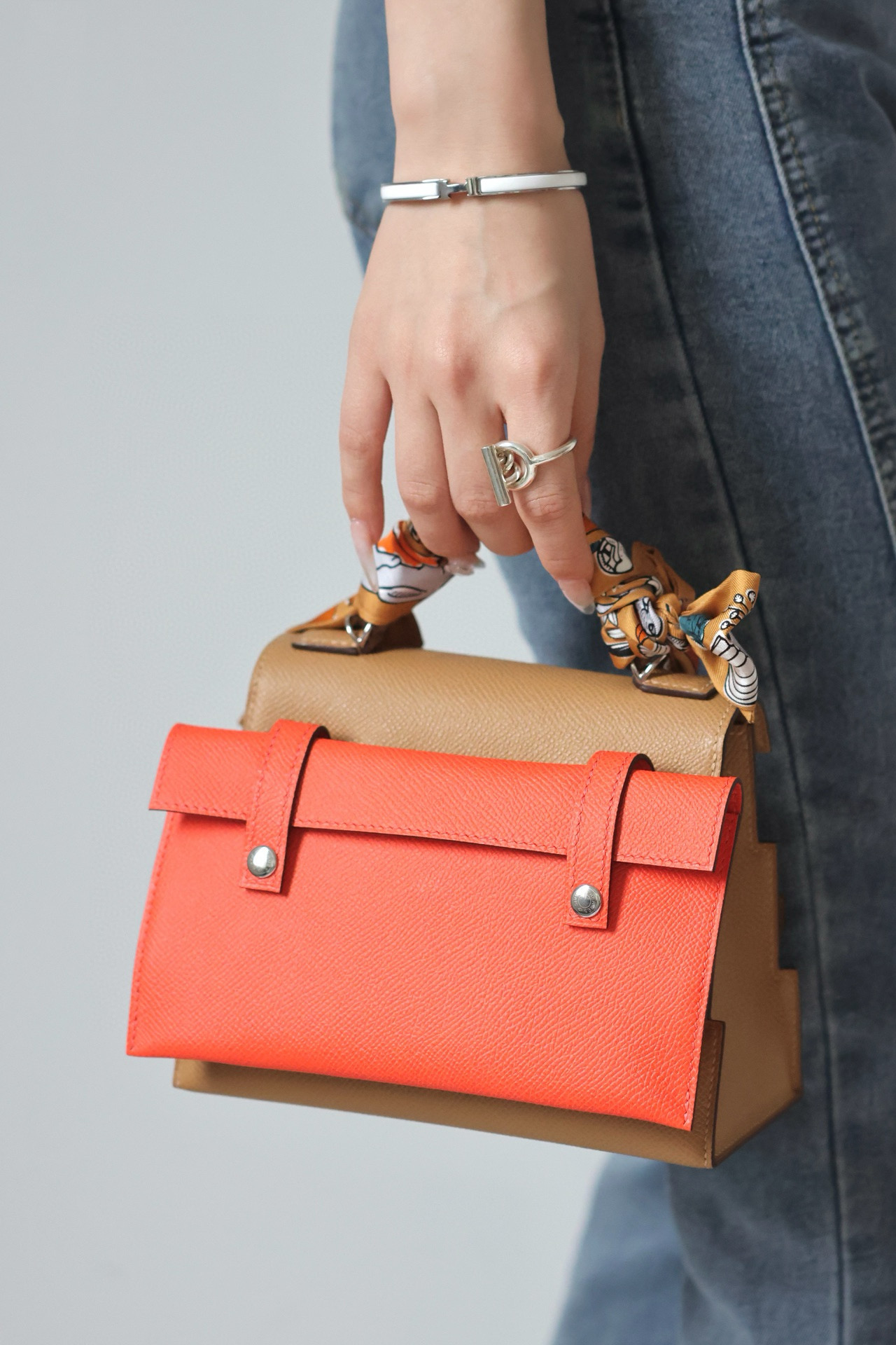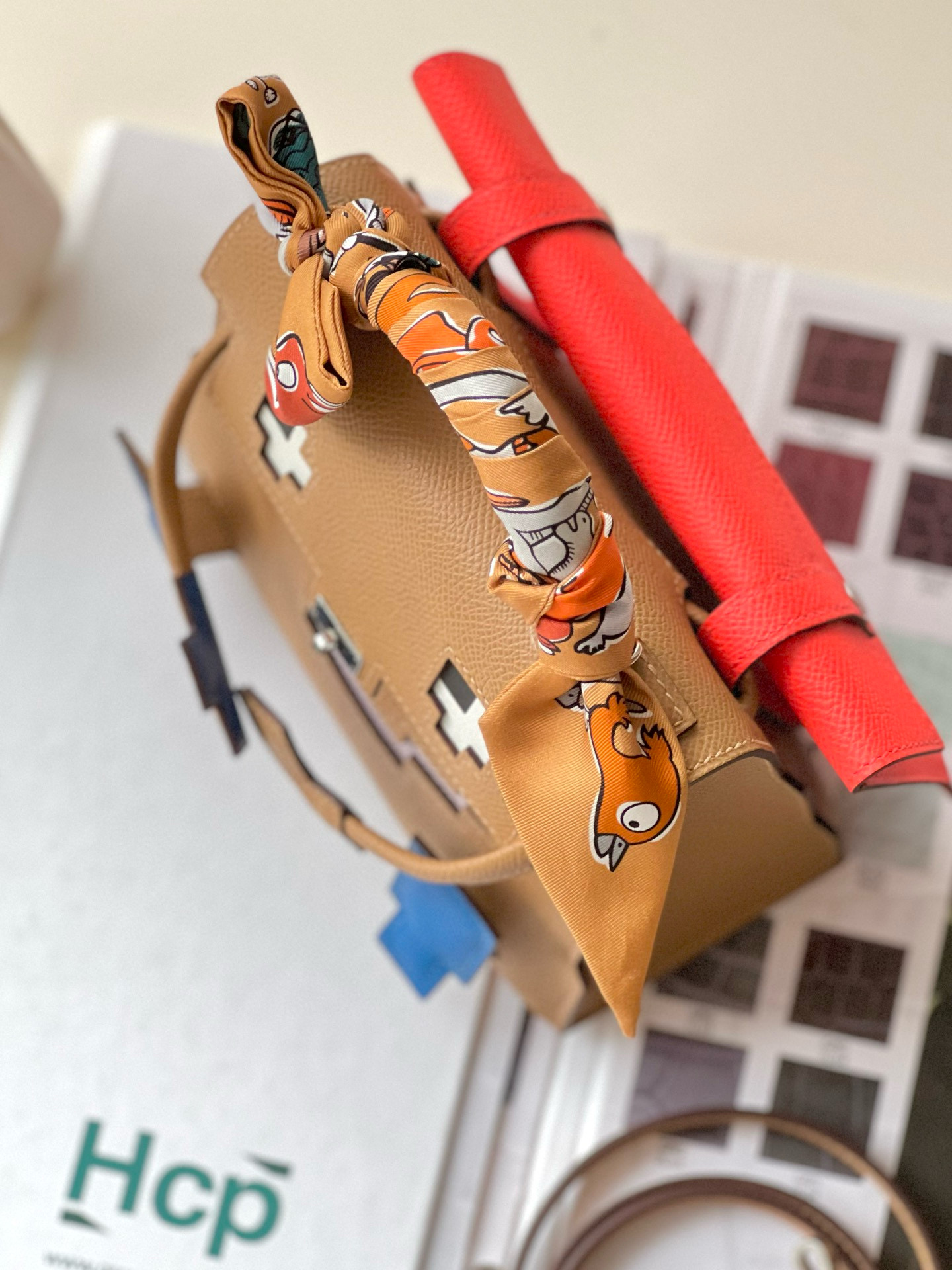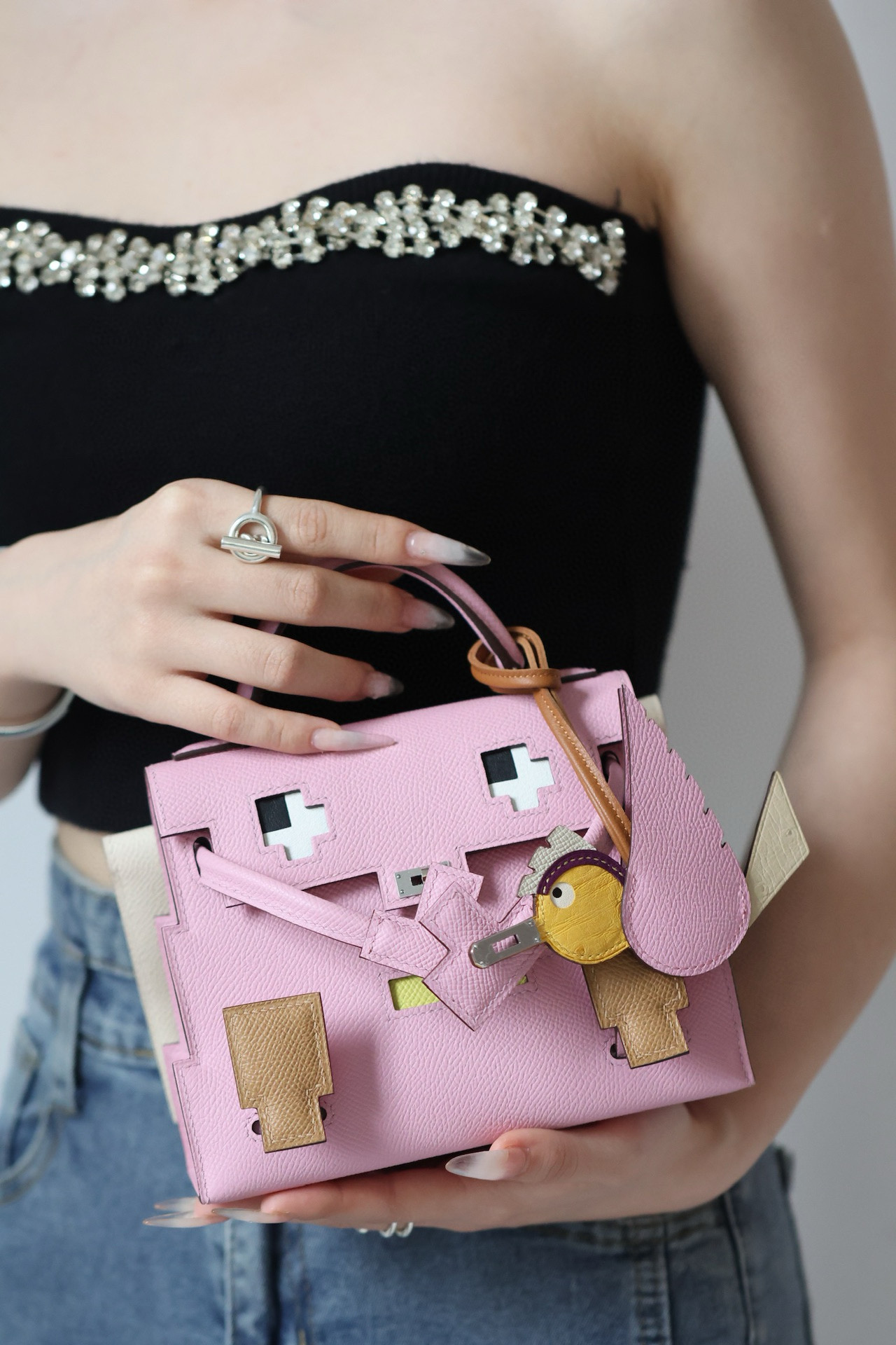 NIGO Hermes Women's Fashion Kelly Doll Mosaic Doll Silver Buckle Epsom Calf Leather Handbag Crossbody Bag #nigo98632