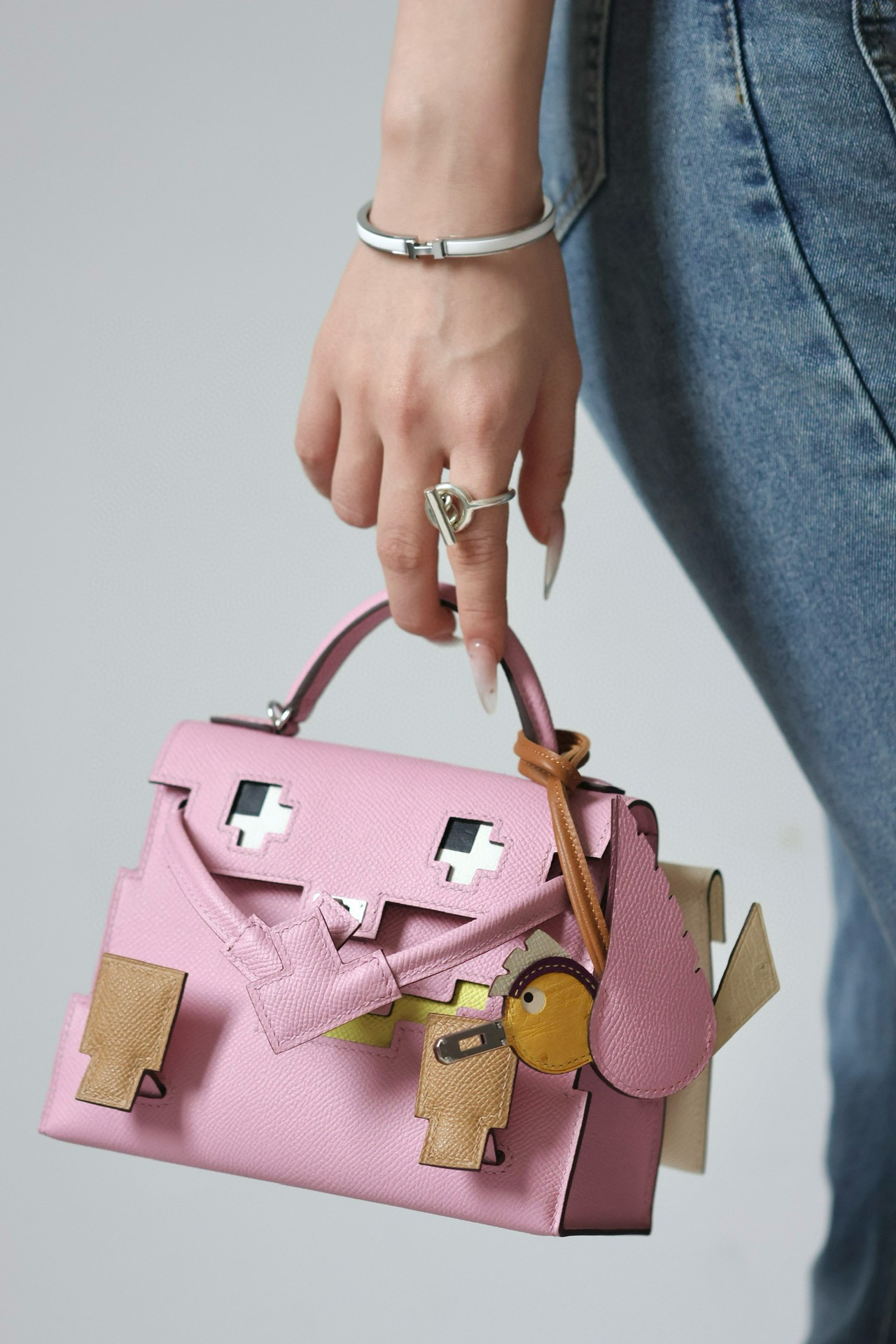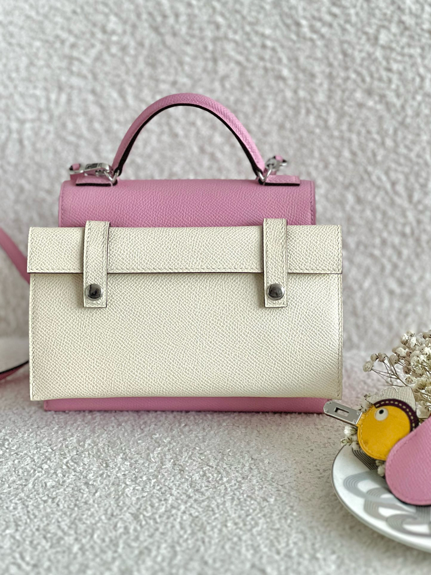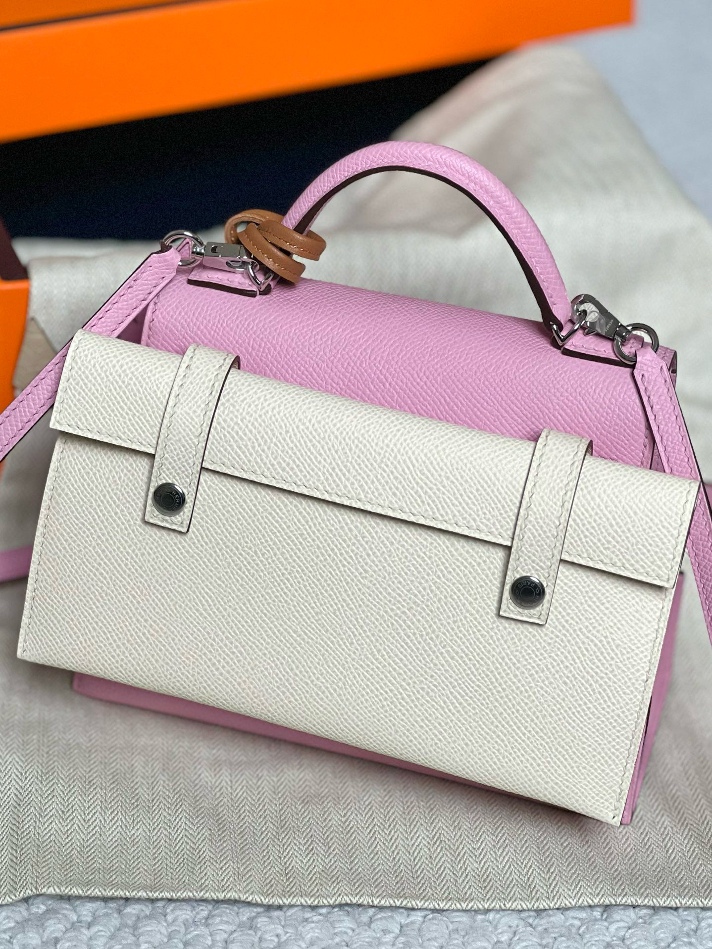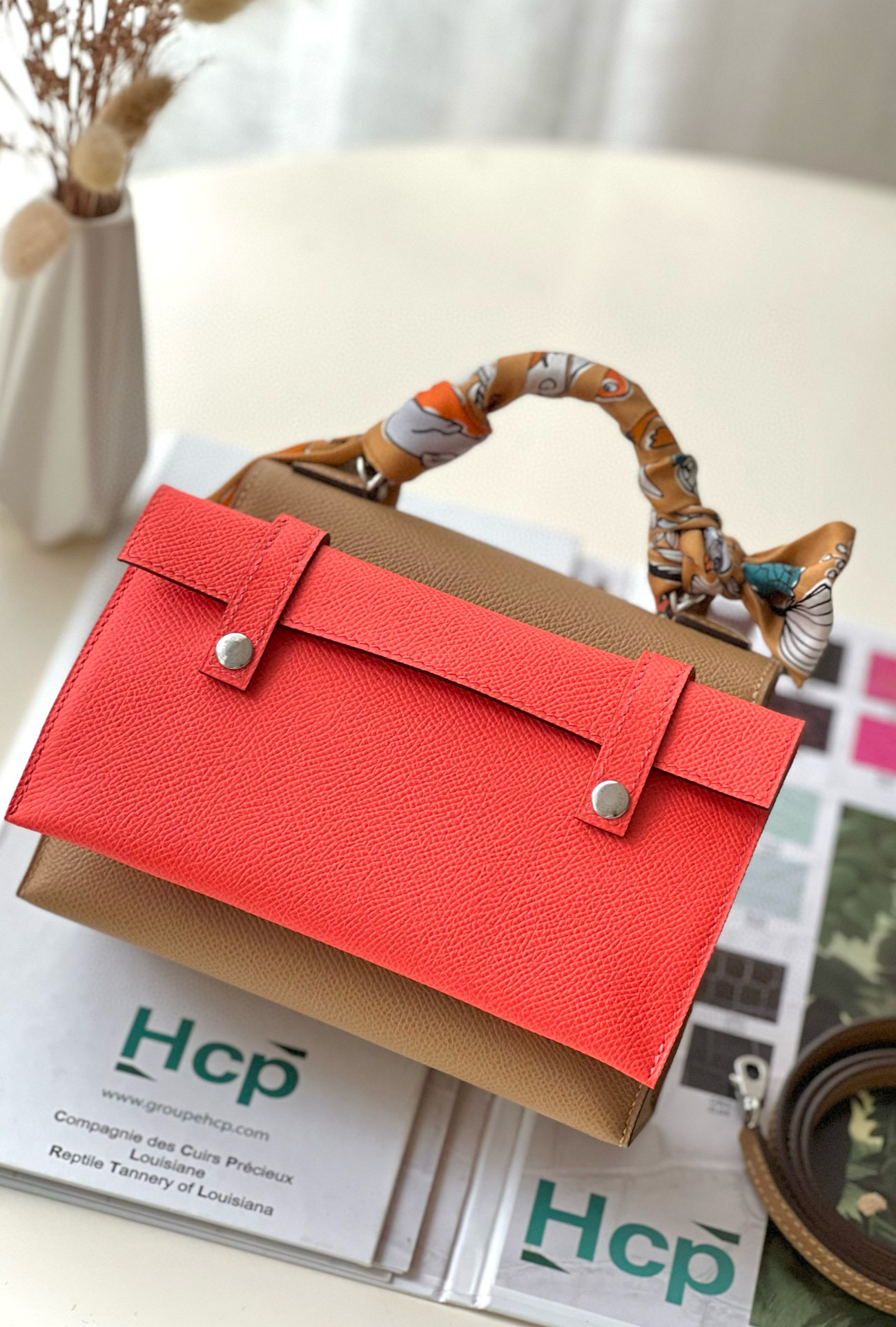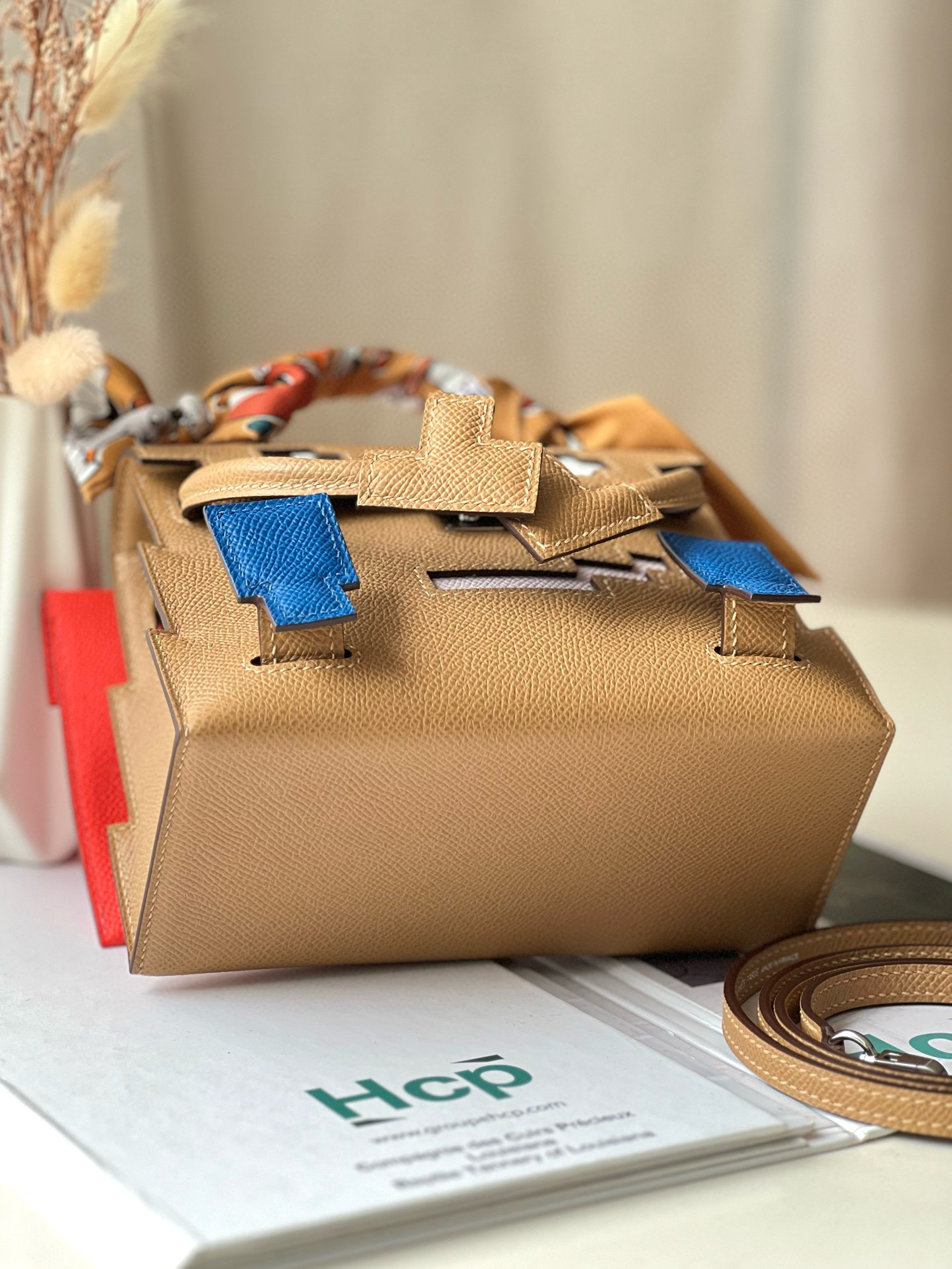 NIGO Hermes Women's Fashion Kelly Doll Mosaic Doll Silver Buckle Epsom Calf Leather Handbag Crossbody Bag #nigo98632