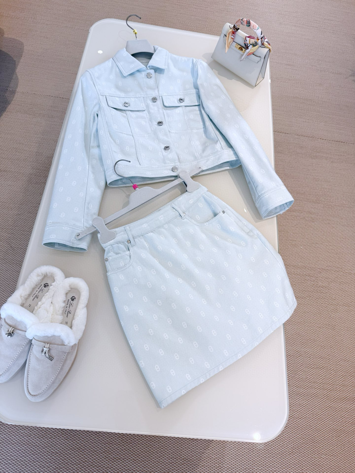 NIGO Hermes Women's Spring/Autumn Fashion Casual Pig Nose Print Logo Long Sleeved Single Breasted Collar Jacket Print Mini Skirt Suit Set #nigo78418
