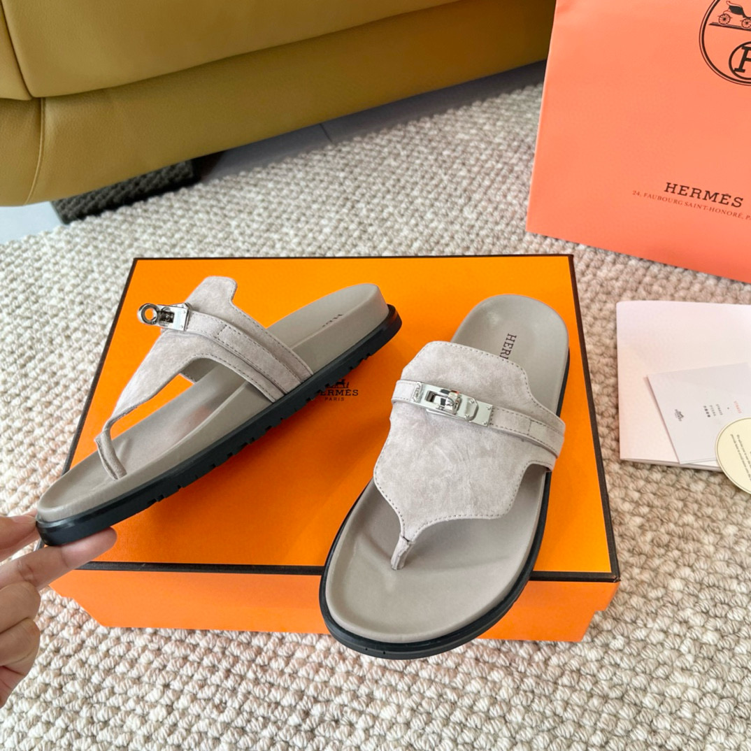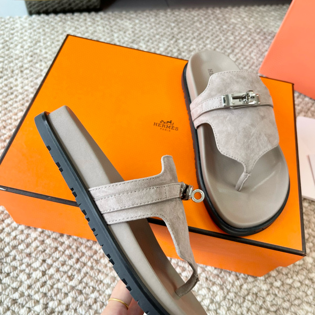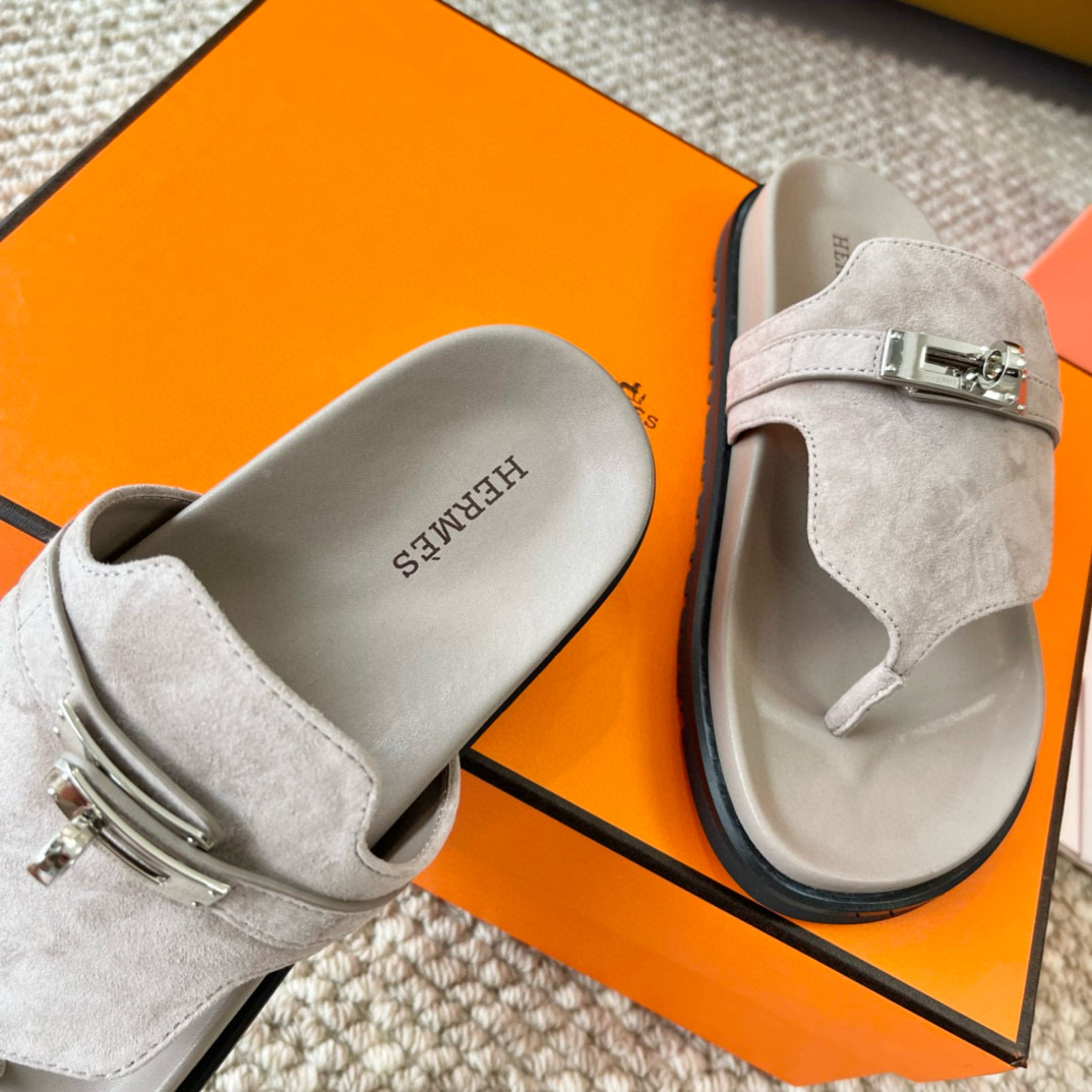 NIGO Hermes Women's Autumn and Winter Pure Color Suede Leather Casual Fashion Sandal Mop Shoes #nigo77294