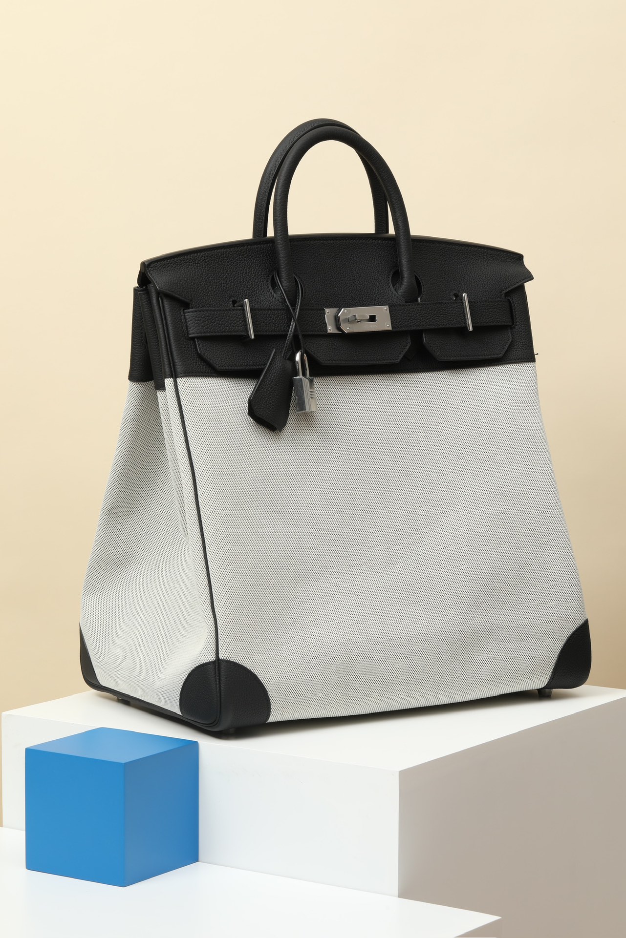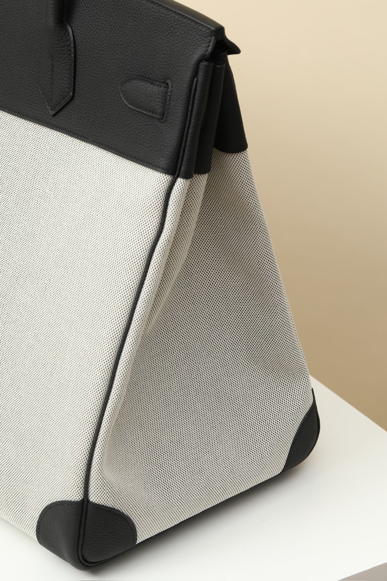 NIGO Hermes HacHaut A Courroies 40 HACG40 Women's Silver Buckle Canvas And Cowhide Colour Blocked Handbag Bag Bags #nigo77113