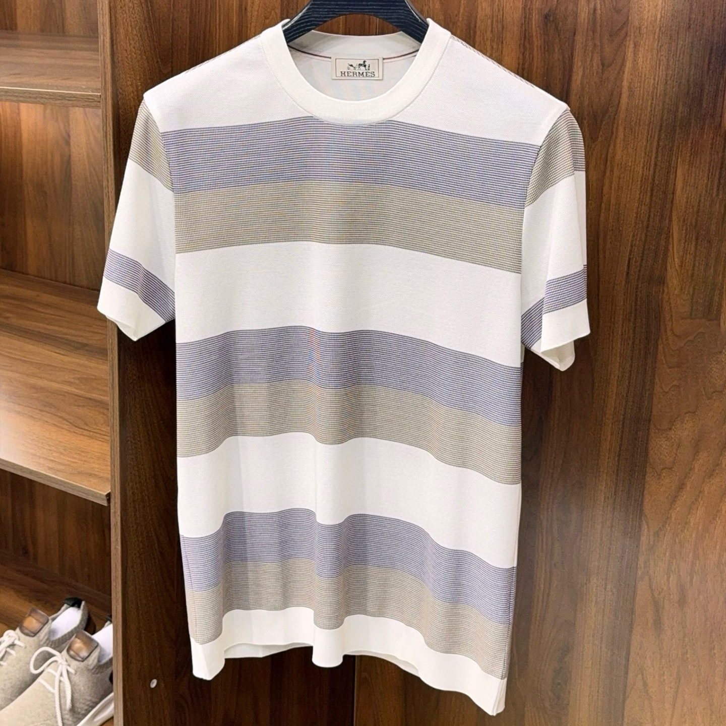 NIGO Hermes Men's Summer Colorblocked Striped Cotton Round Neck Short Sleeve T-Shirt Ngvp #nigo1396