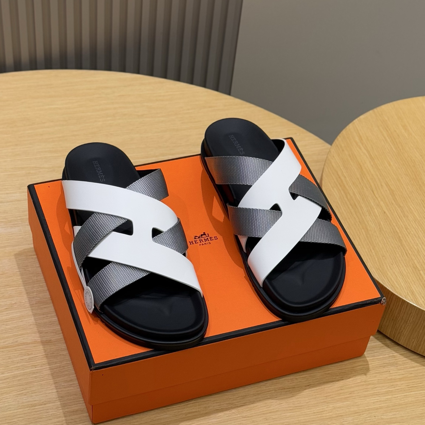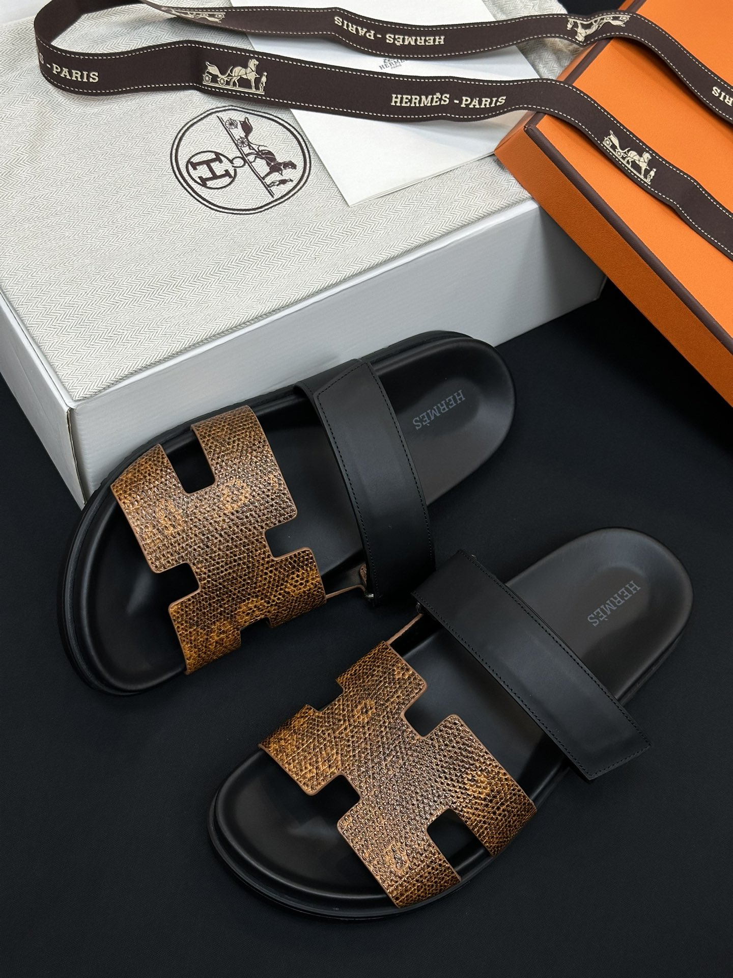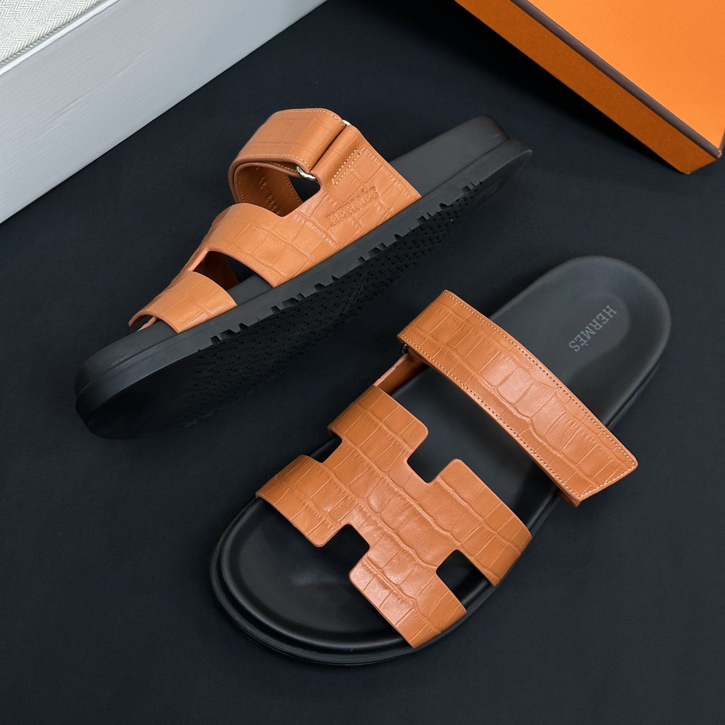 NIGO Hermes Gabriel Men's Summer Fashion Comfortable Logo Sandals Leather Casual Slippers #nigo81144
