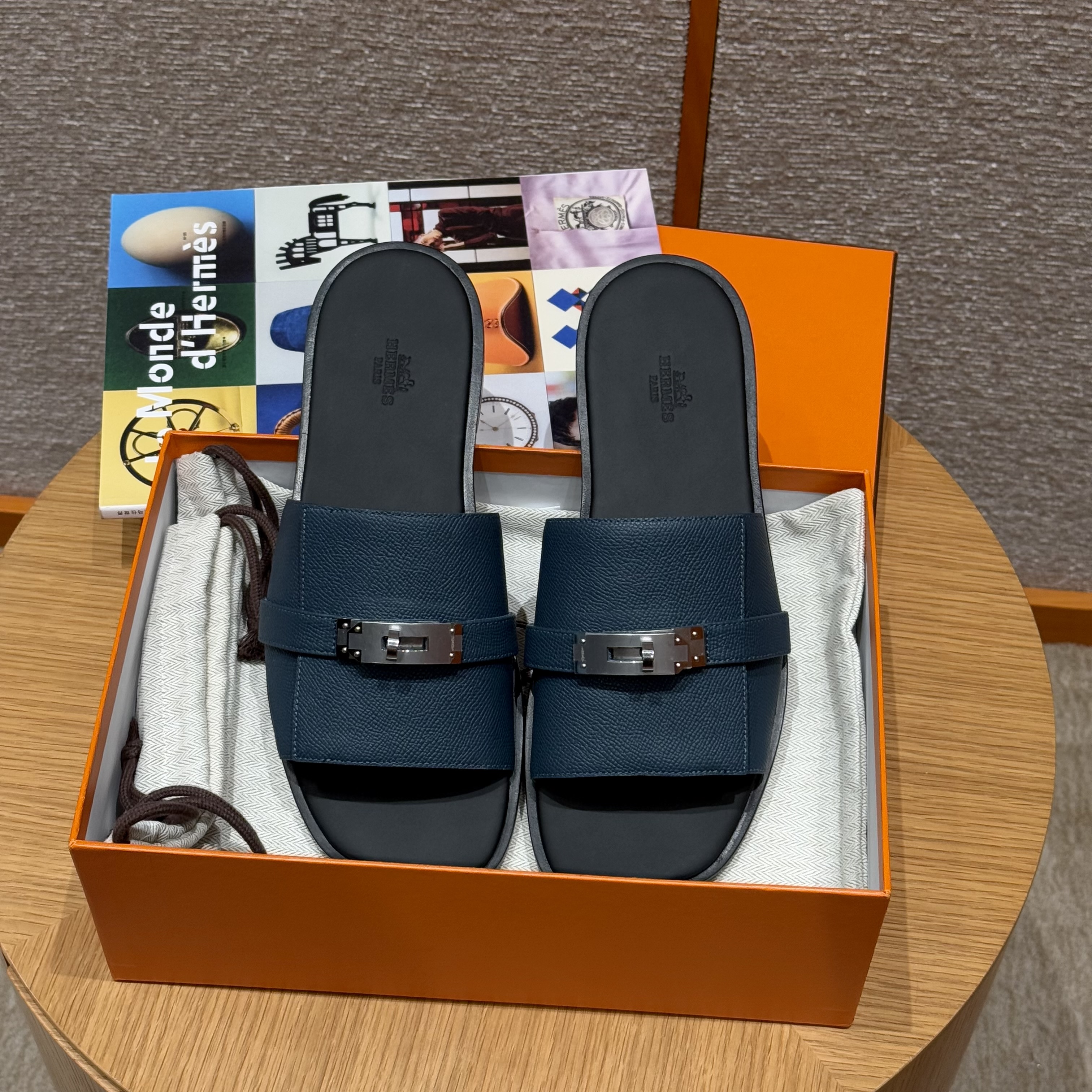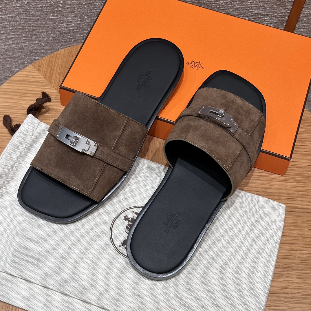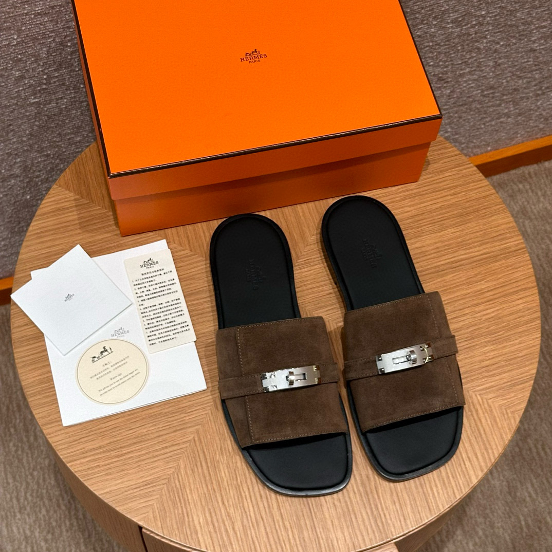 NIGO Hermes Gabriel Men's Summer Fashion Comfortable Logo Sandals Leather Casual Slippers #nigo81144