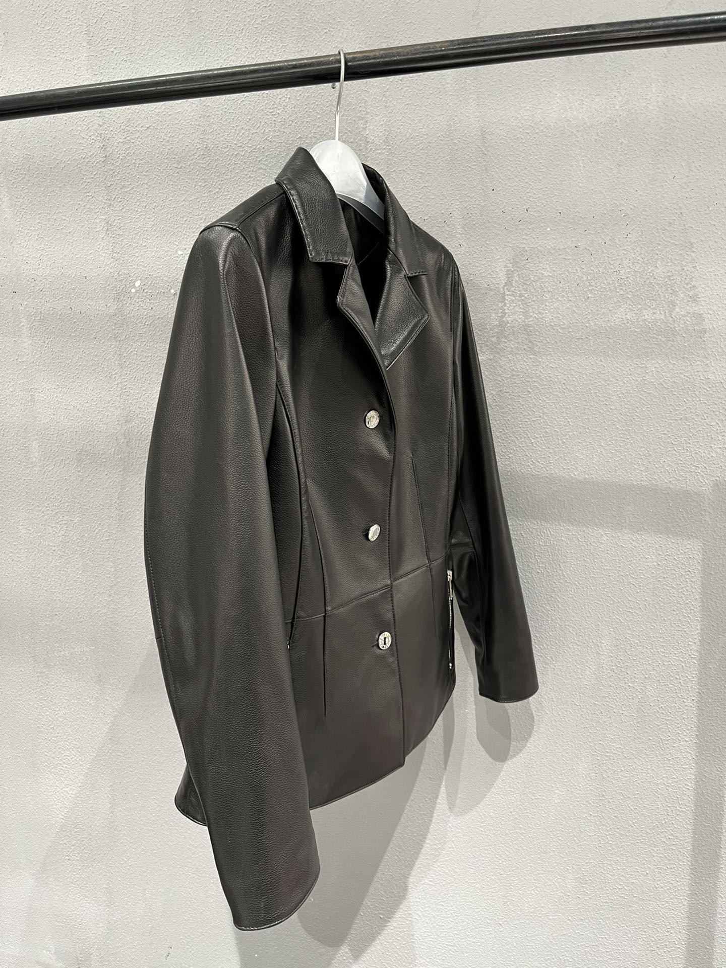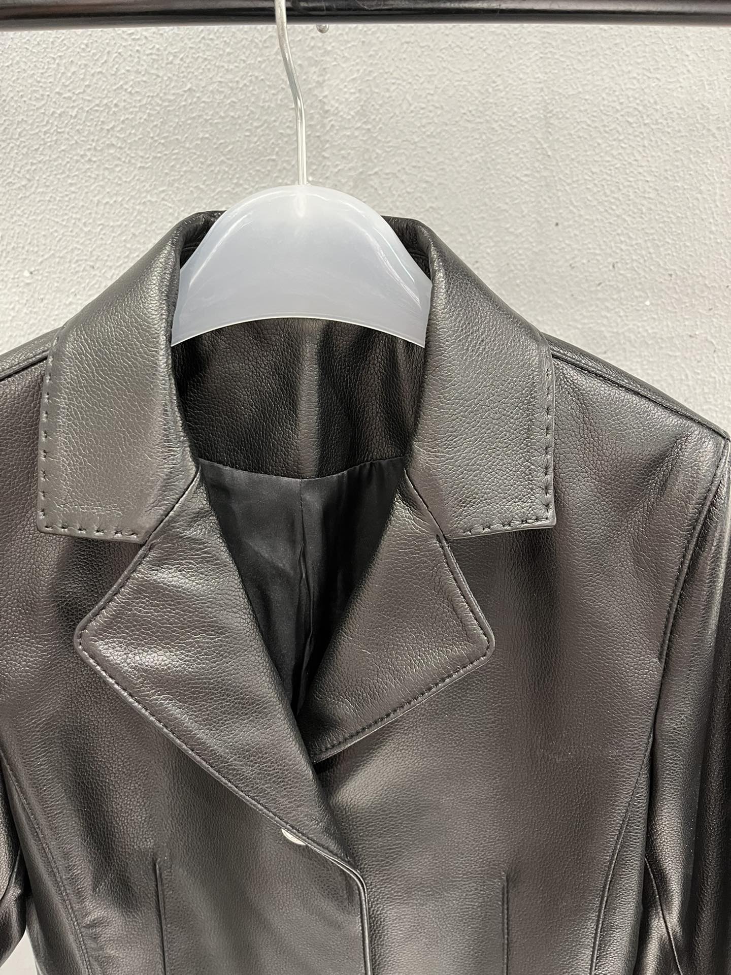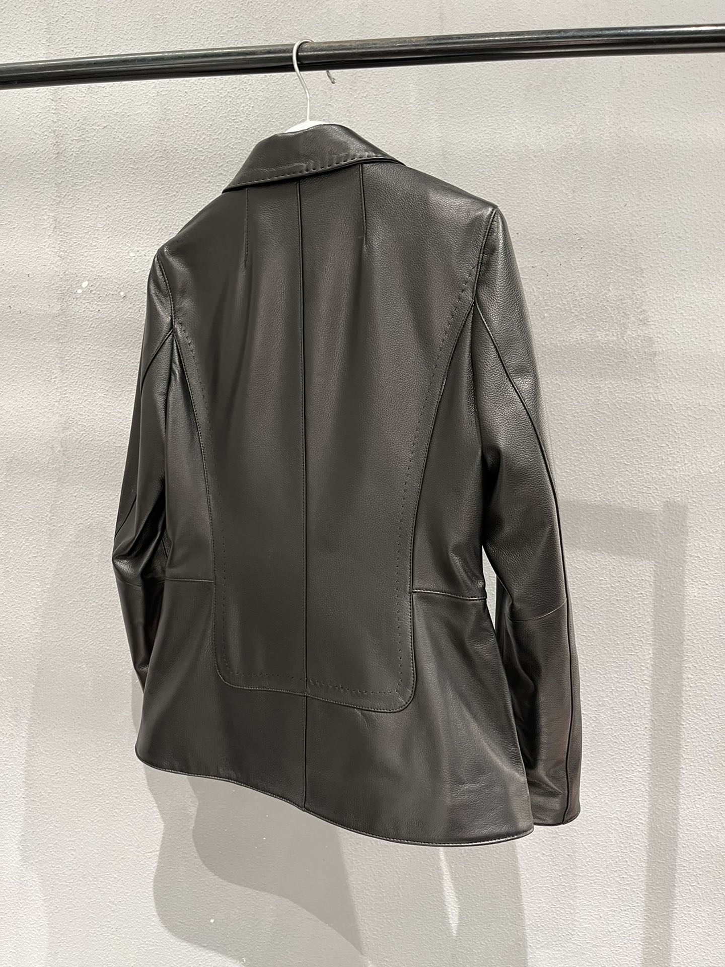 NIGO Hermes Women's Spring And Autumn Solid Color Lychee Grain Sheepskin V-neck Single Breasted Slim Blazer Jacket #nigo75637