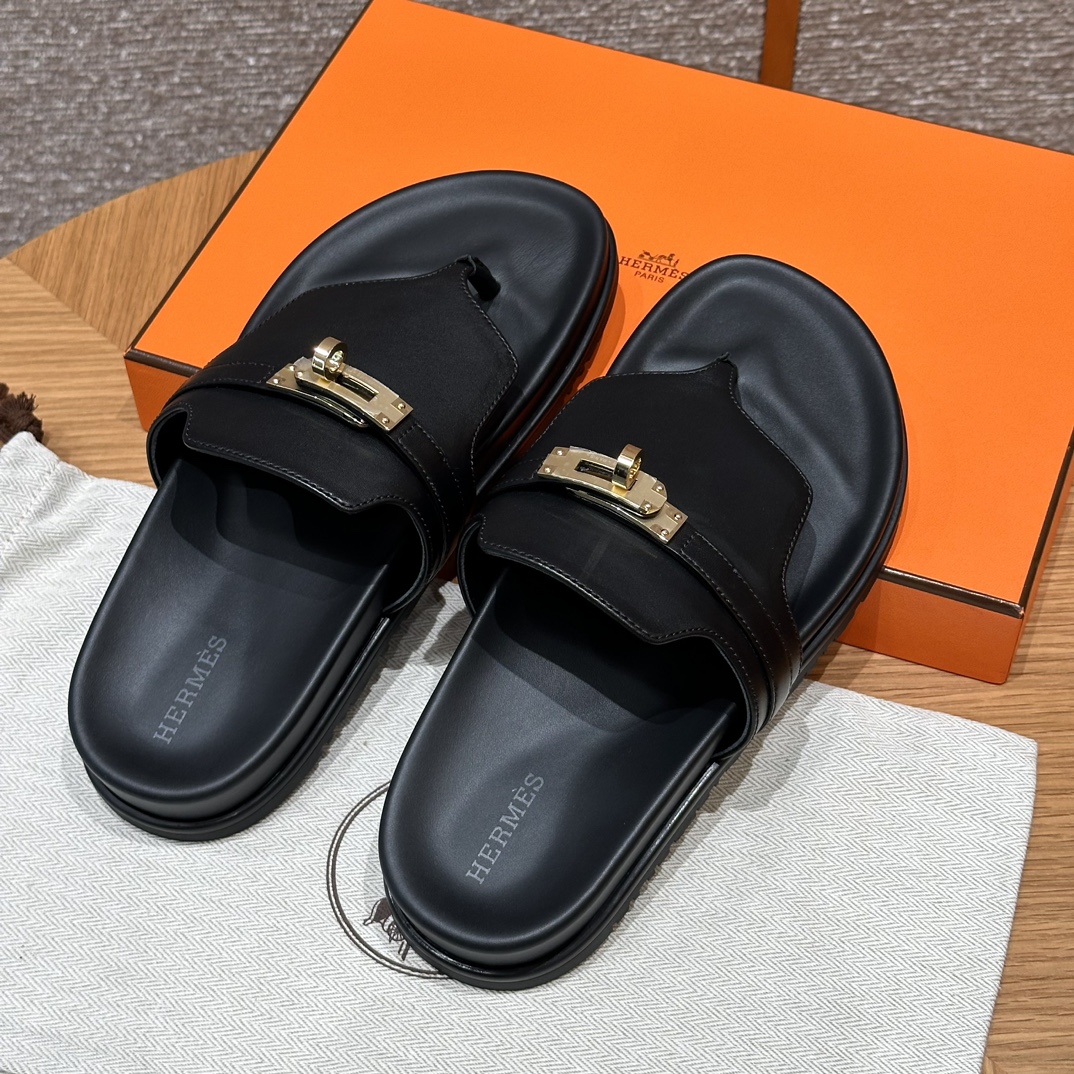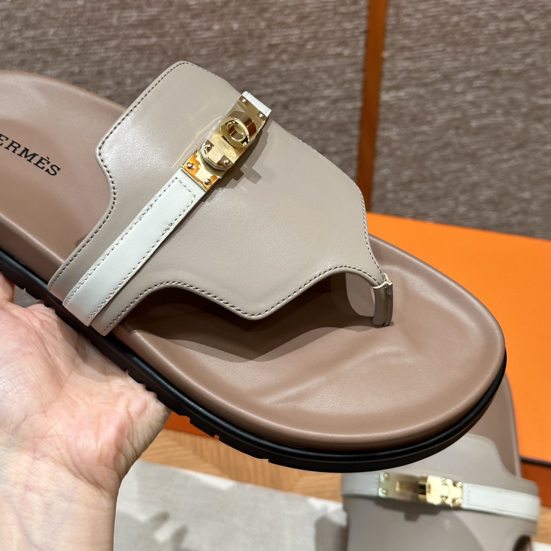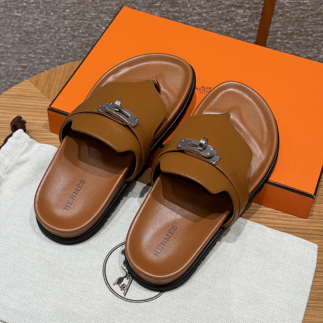 NIGO Hermes Men's and Women's Summer Solid Color Leather Clip-On Slippers Sandals Shoes #nigo75678