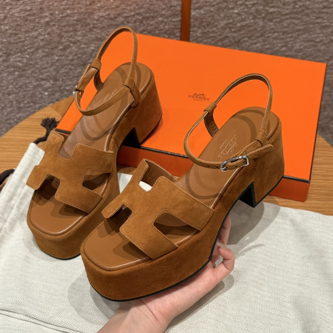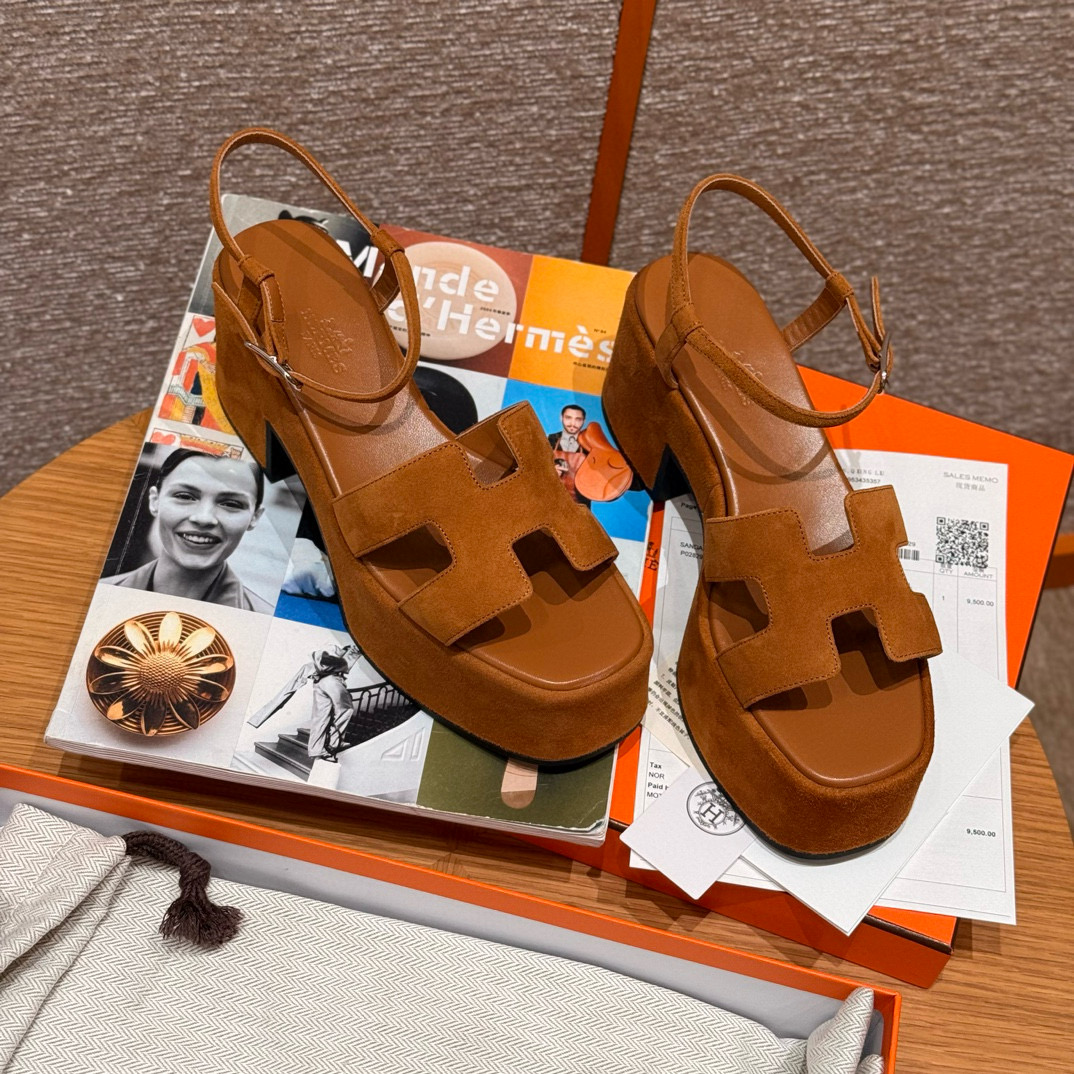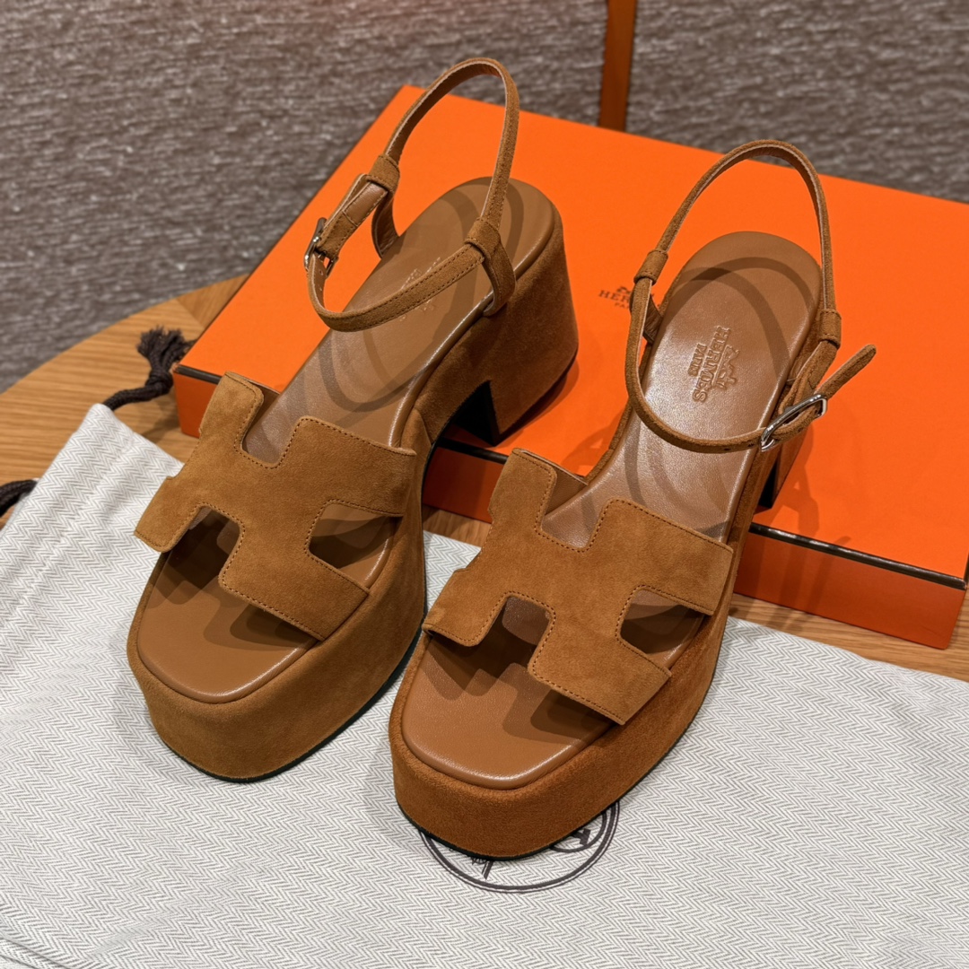 NIGO Hermes Women's Summer Solid Color Suede One Strap Chunky Heel High Heeled Sandals Shoes #nigo75311
