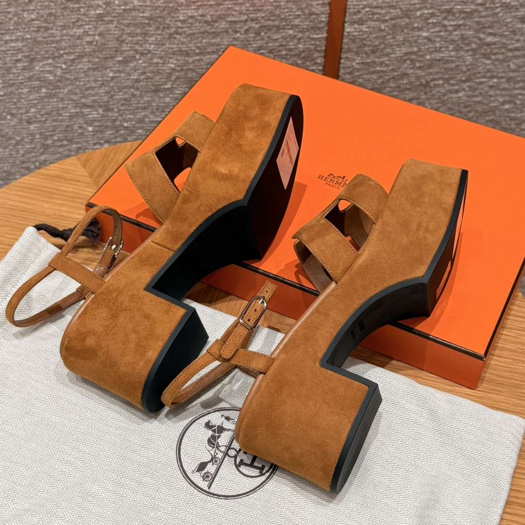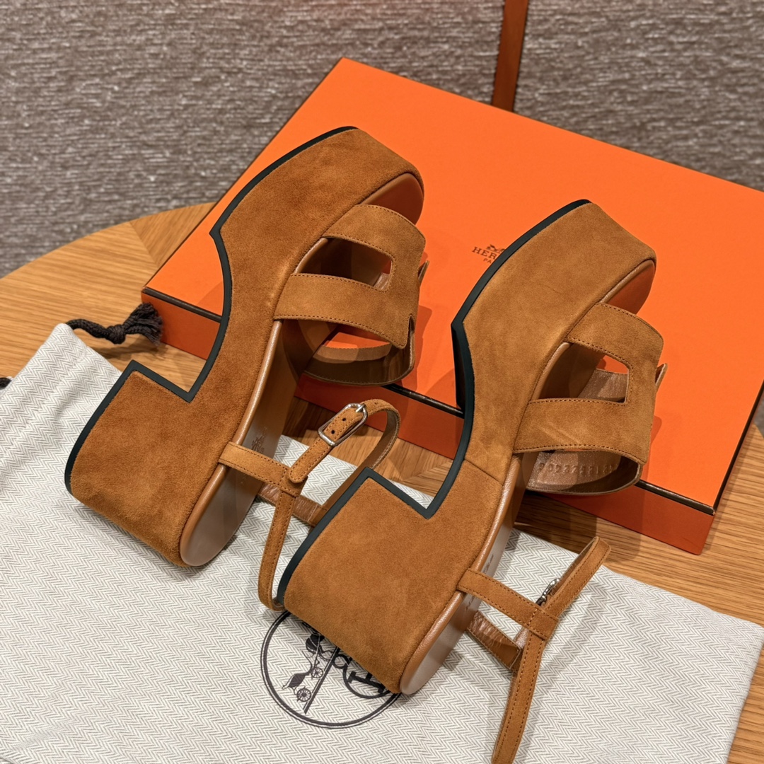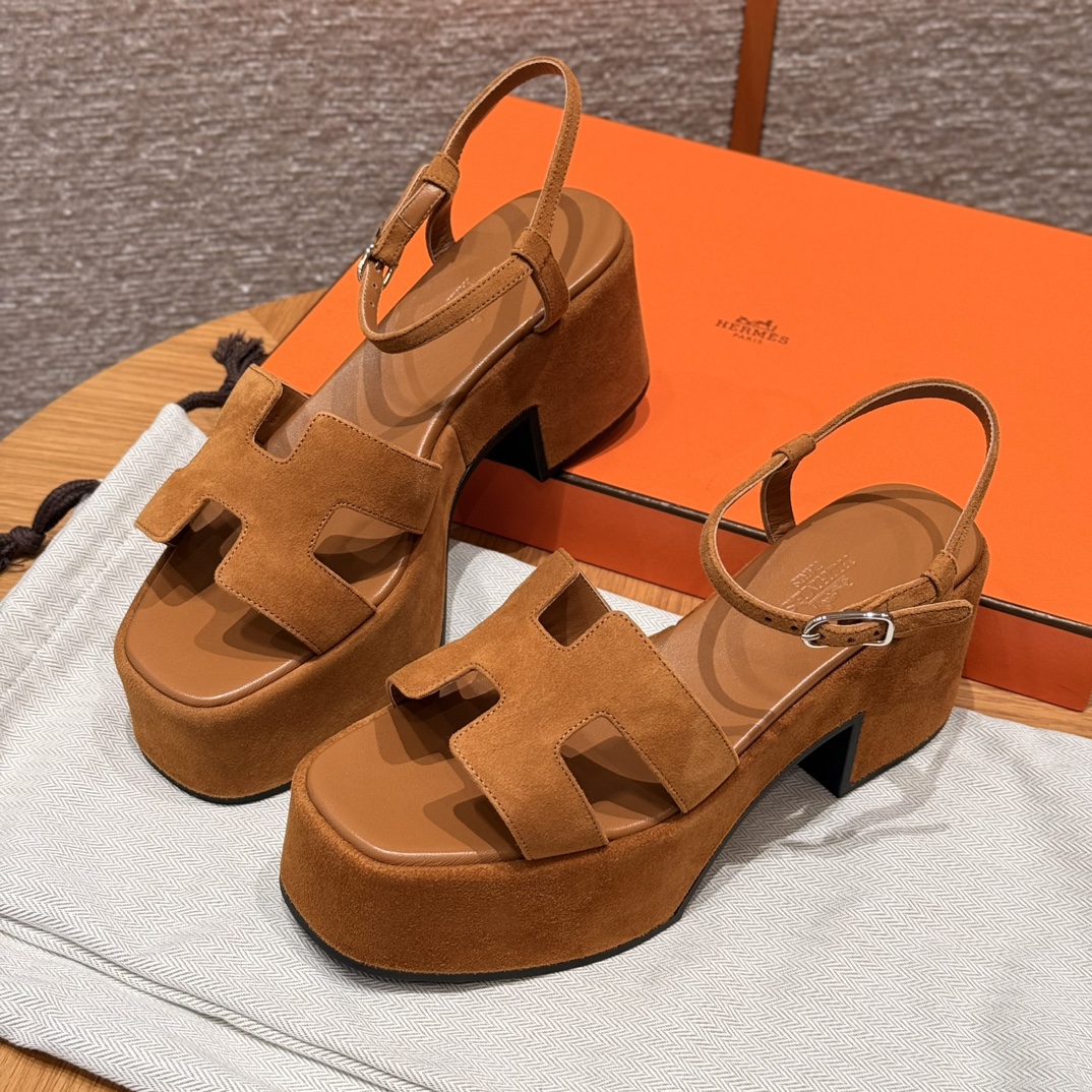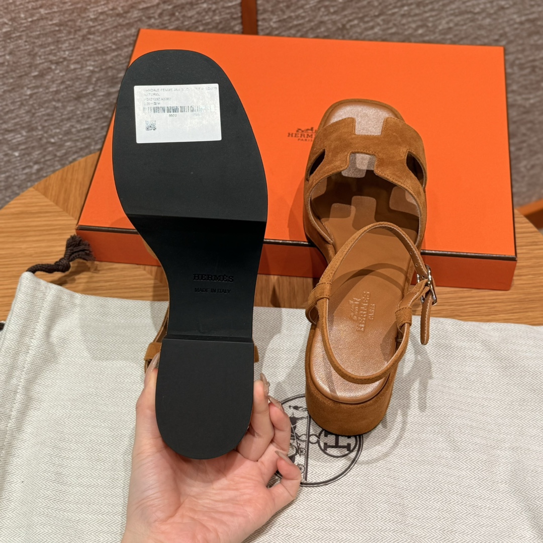NIGO Hermes Women's Summer Solid Color Suede One Strap Chunky Heel High Heeled Sandals Shoes #nigo75311