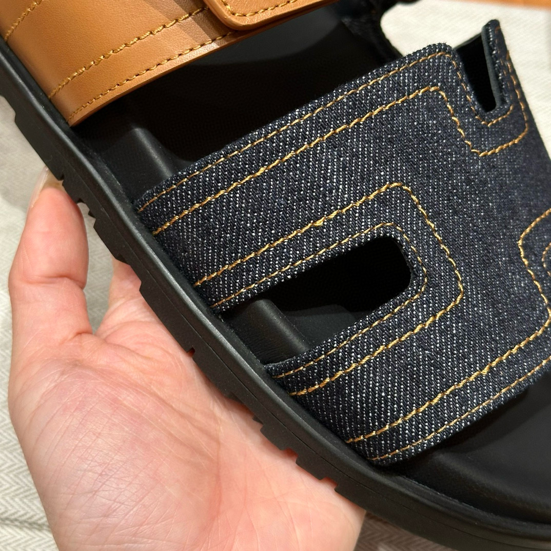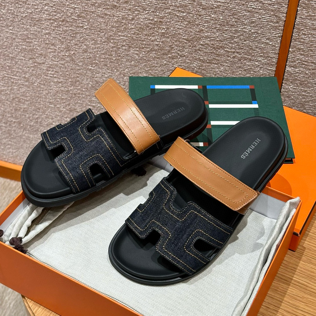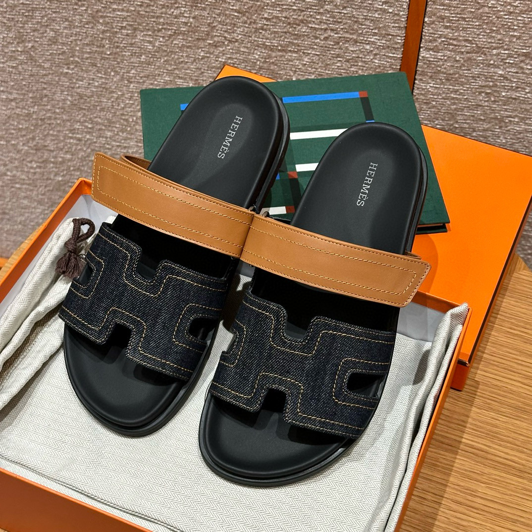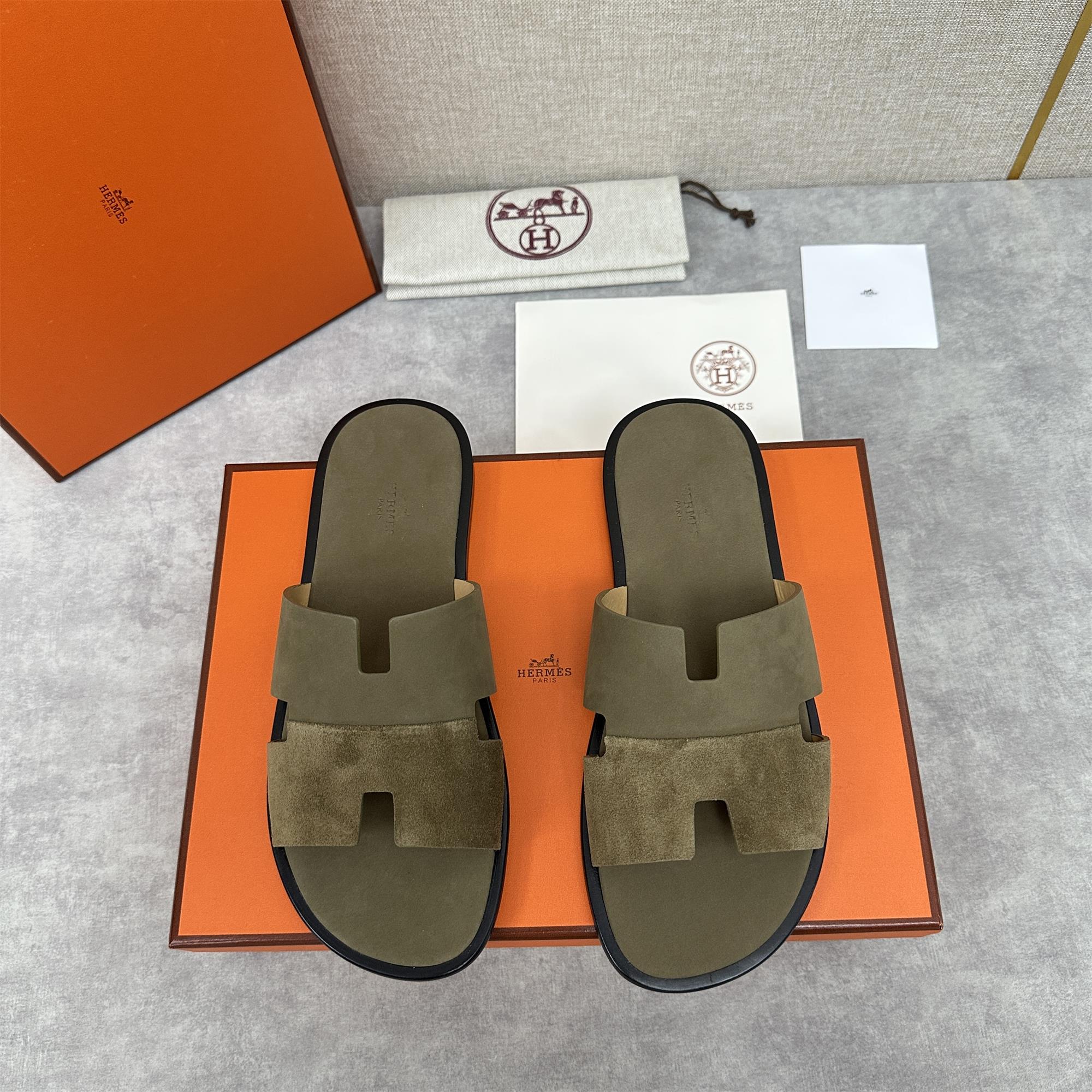 NIGO Hermes Men's Summer Solid Color Suede Round Toe H Leather Slippers Sandals Shoes #nigo75391