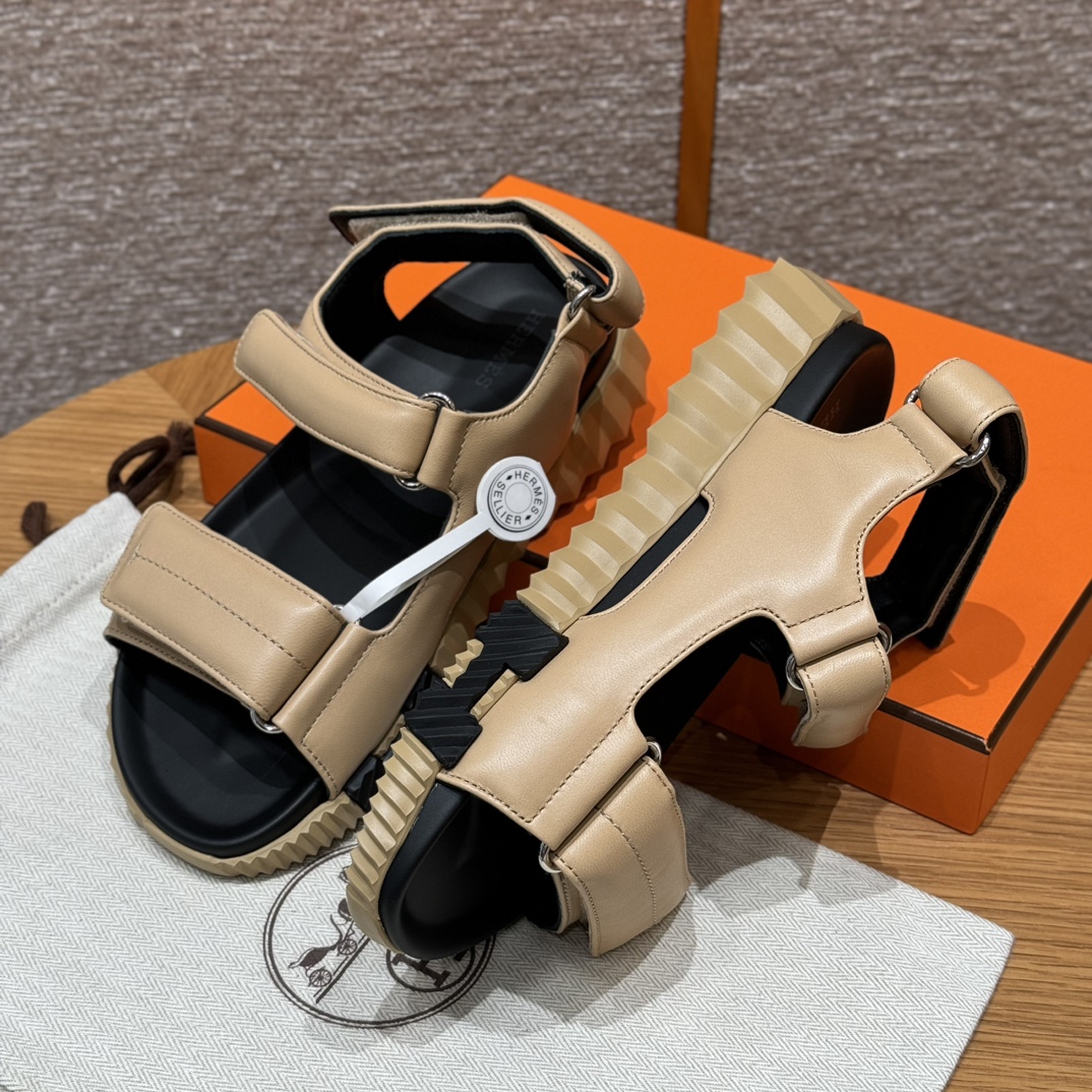 NIGO Hermes Junior Women's Summer Solid Color Leather Round Toe Velcro Sandals Shoes #nigo75614