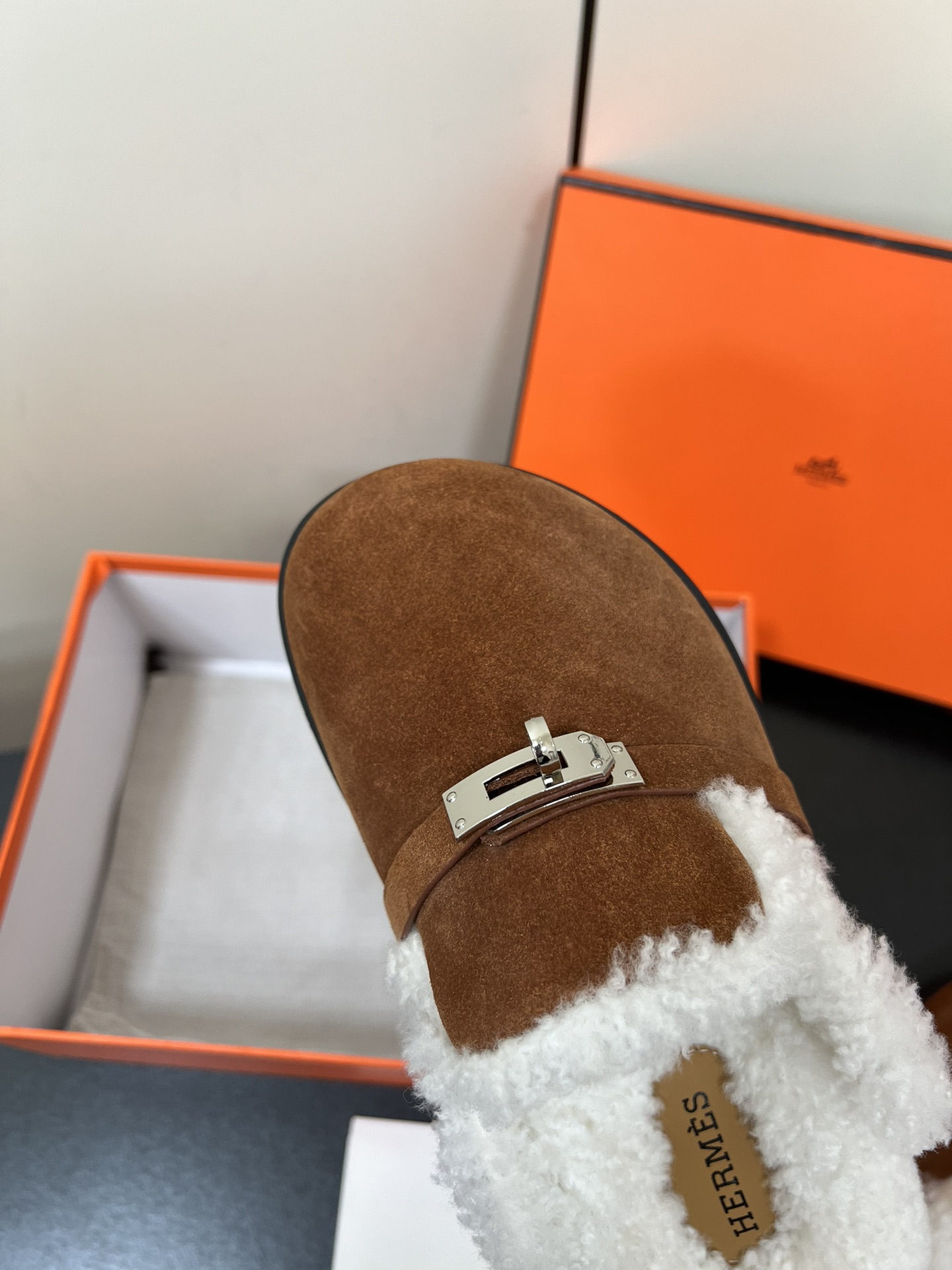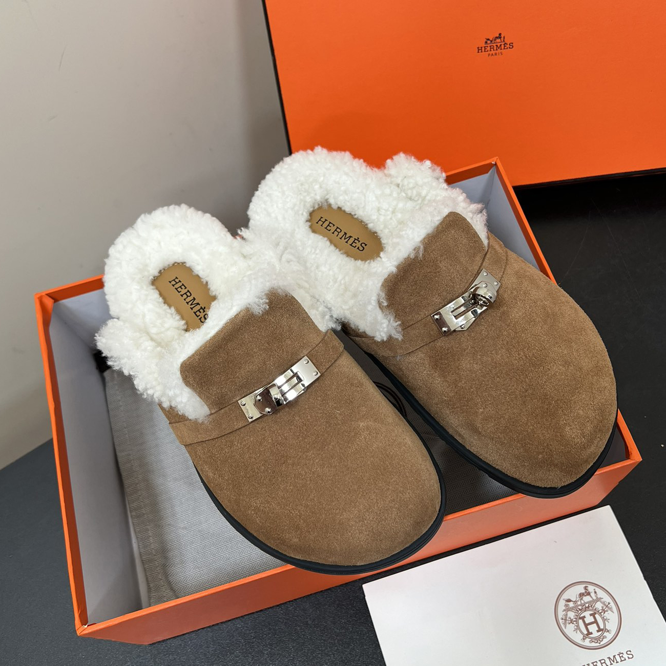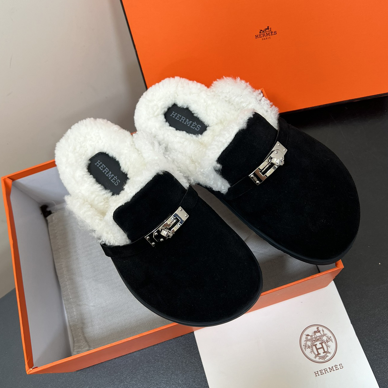 NIGO Hermes Women's Fall/Winter Solid Color Suede Leather Casual Wool Sole Fashion Birkenstocks Shoes #nigo74725