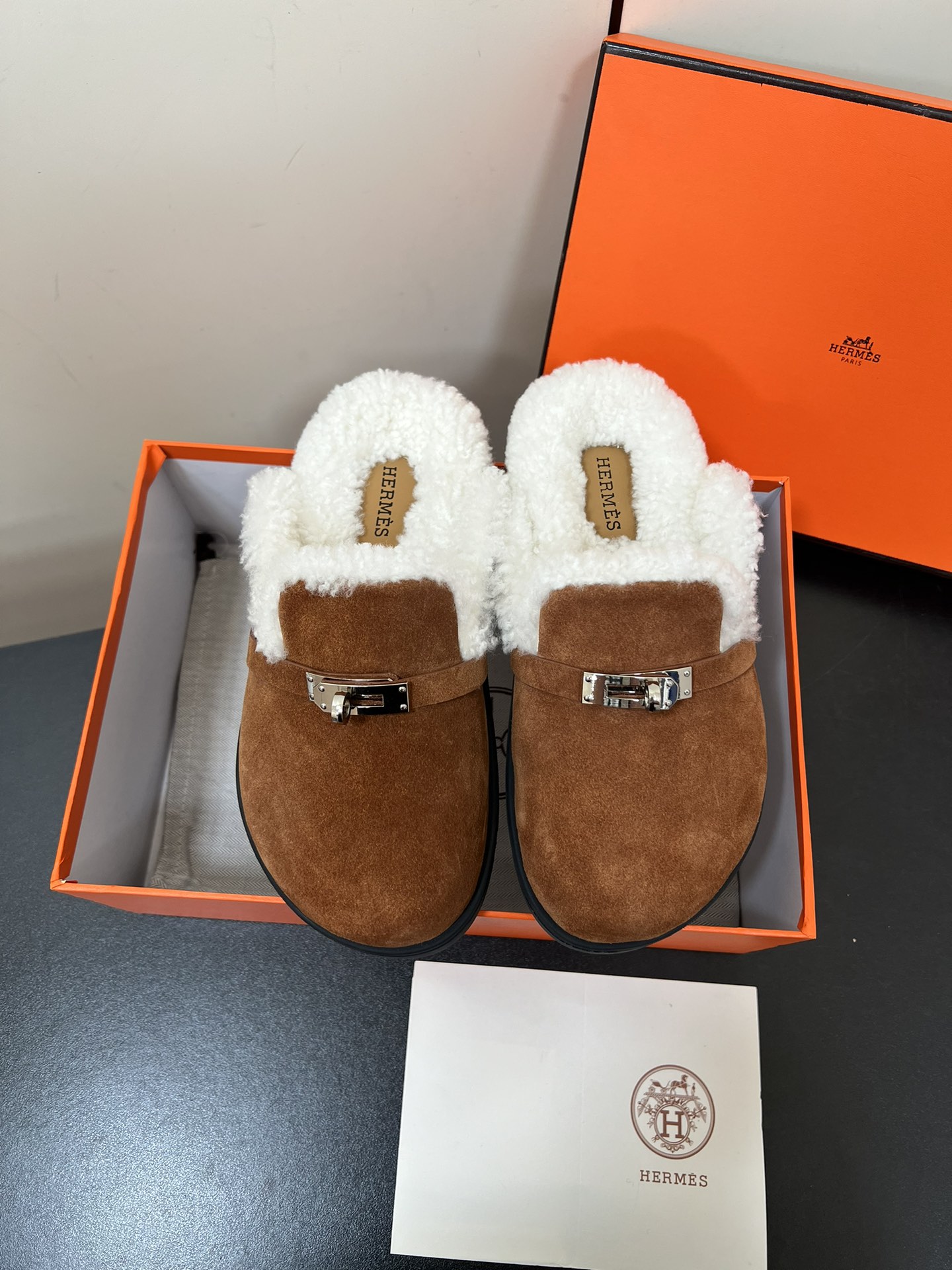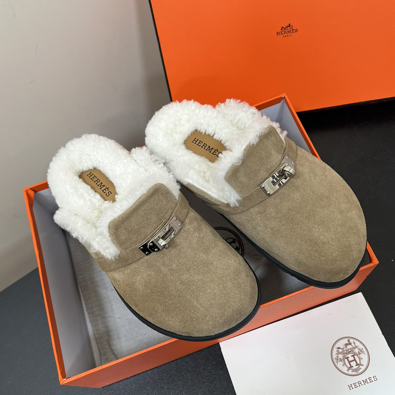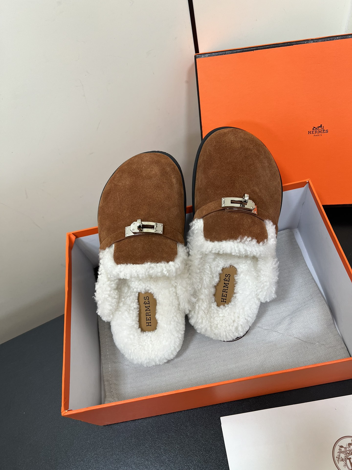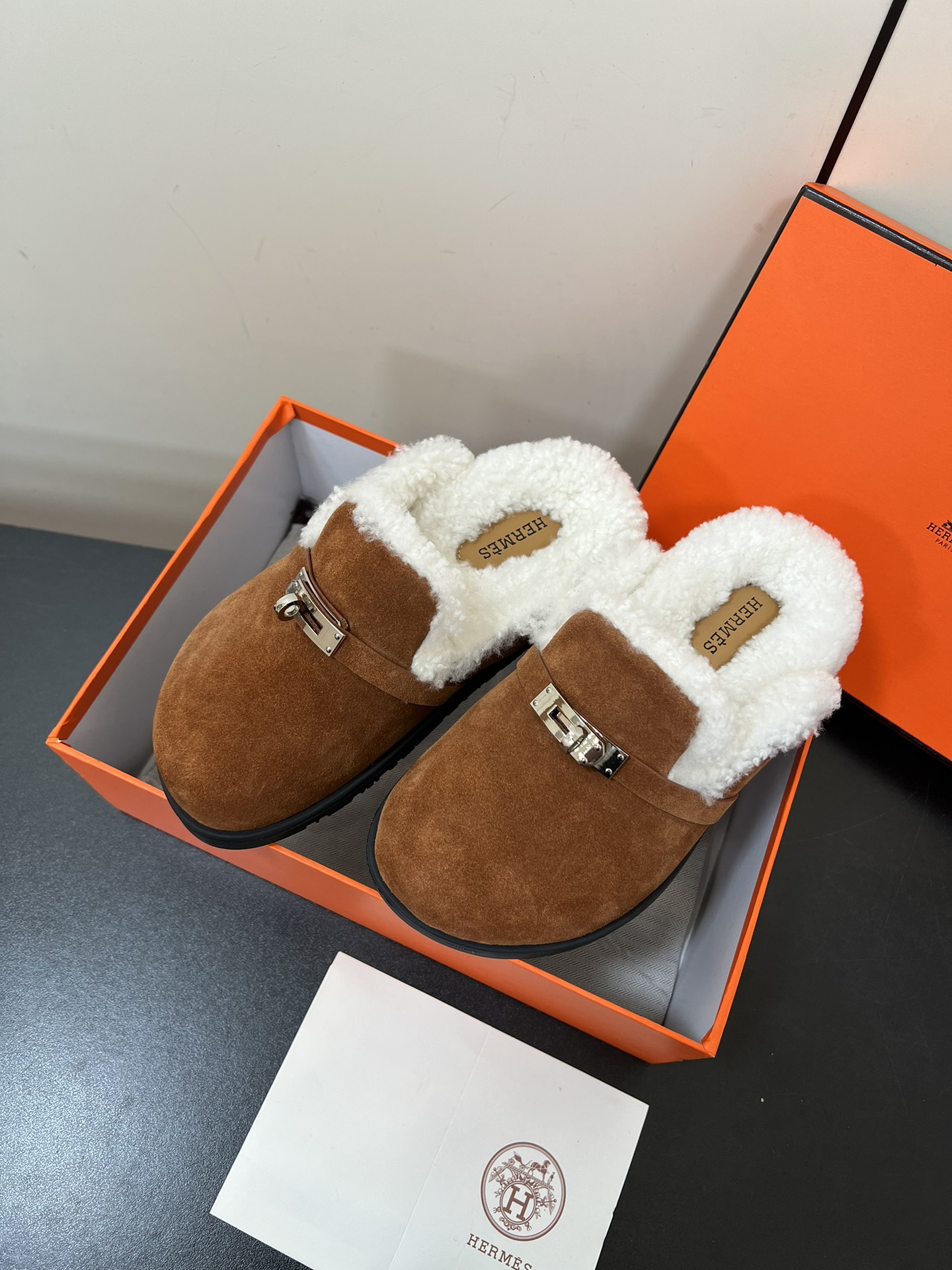NIGO Hermes Women's Fall/Winter Solid Color Suede Leather Casual Wool Sole Fashion Birkenstocks Shoes #nigo74725