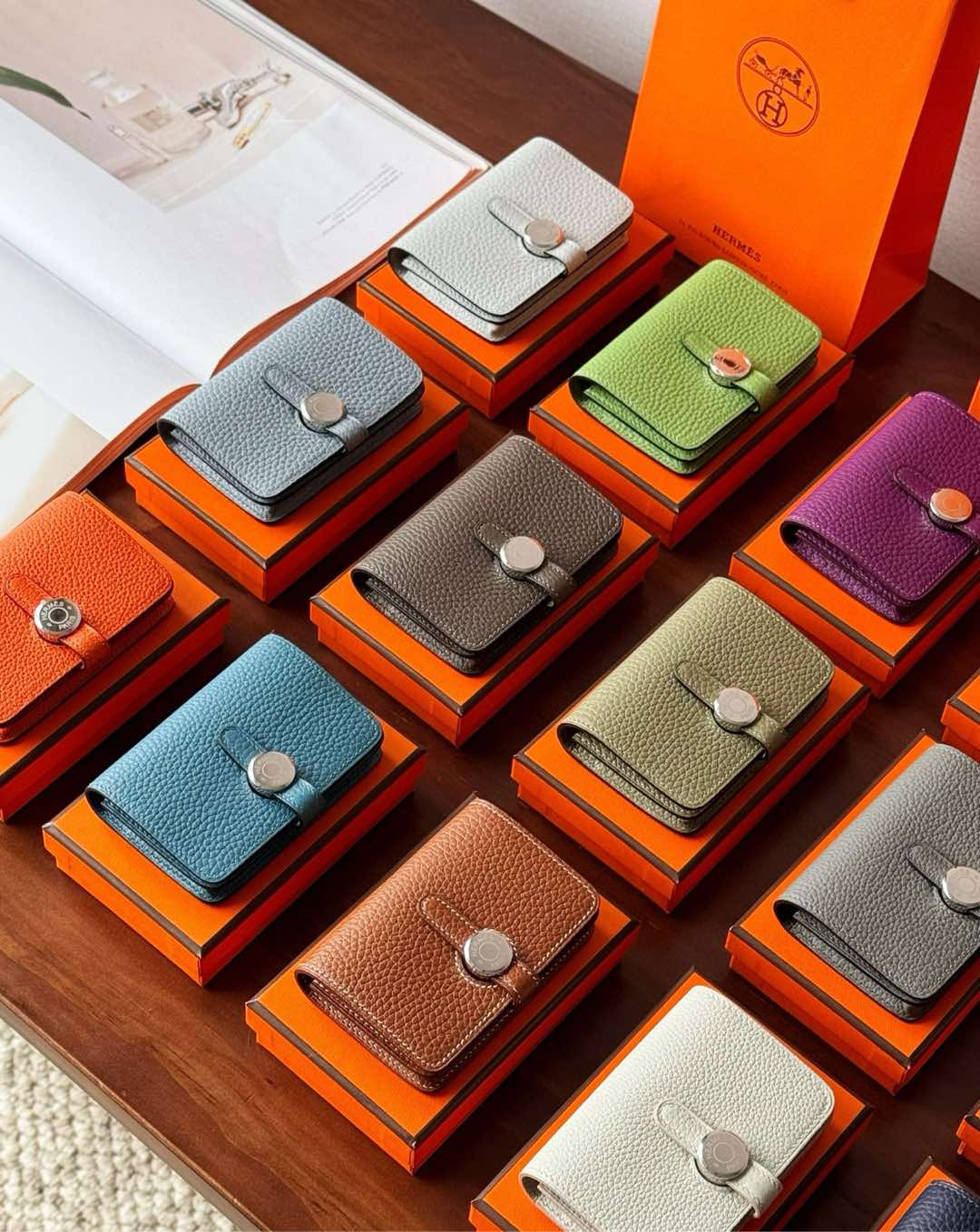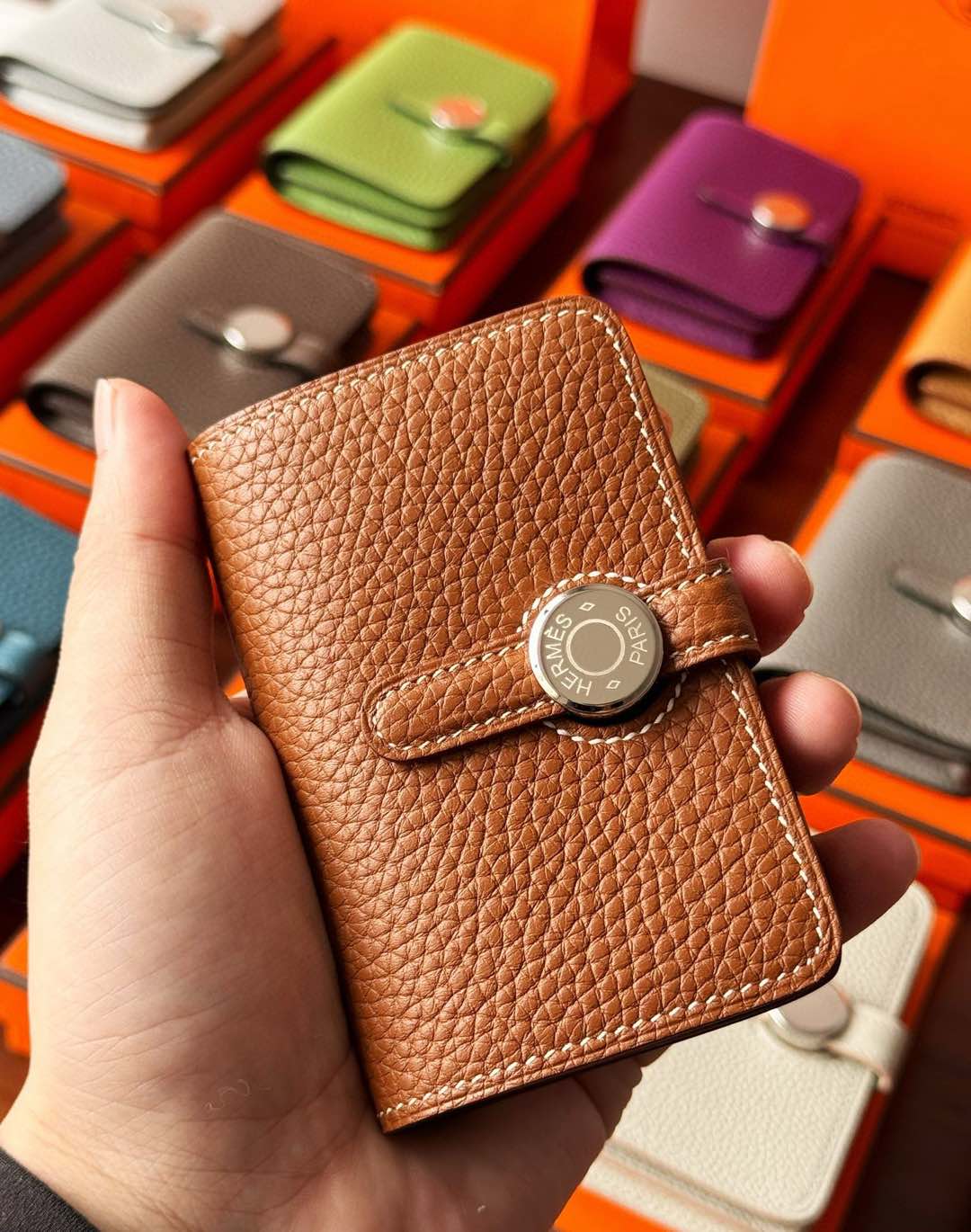 NIGO Hermes Dogon Women's Silver Buckle Togo Cowhide Solid Color Card Case Wallet Bag Bags #nigo74813
