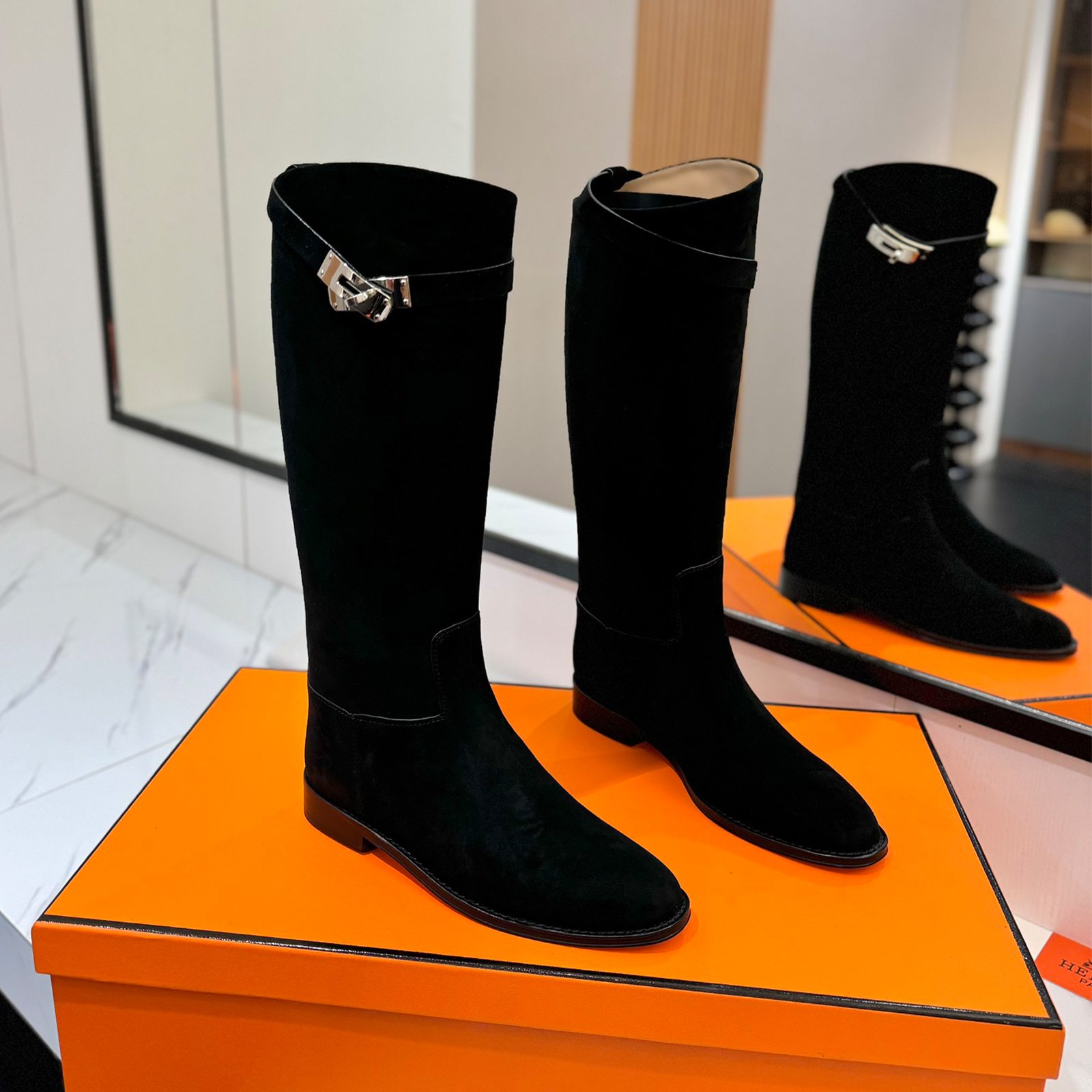 NIGO Hermes Women's Knight Boots Simple Temperament Elegant Autumn And Winter Tall Chunky Heel Leather Boots Shoes #nigo75268
