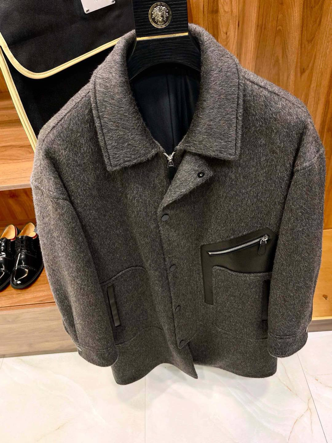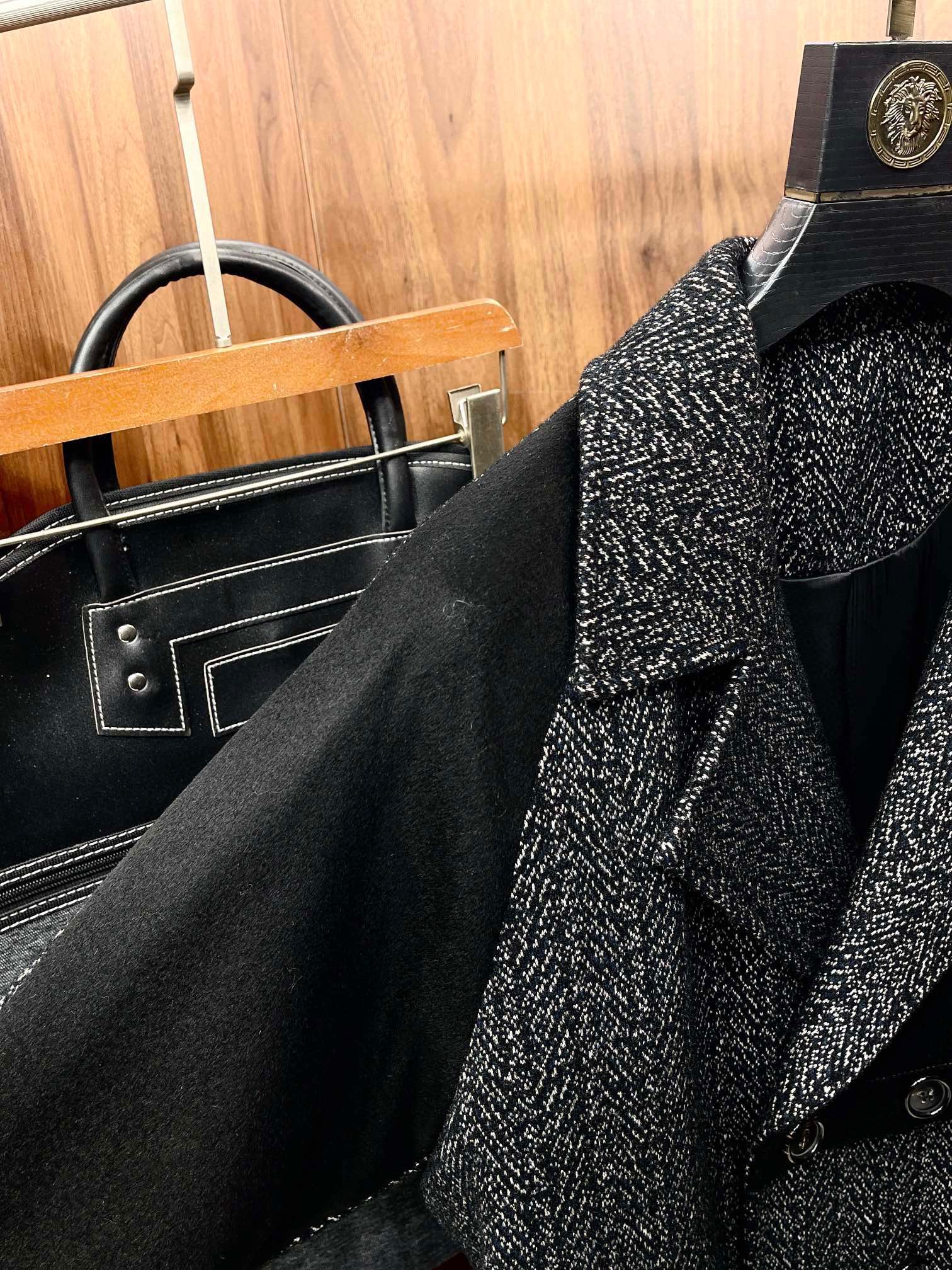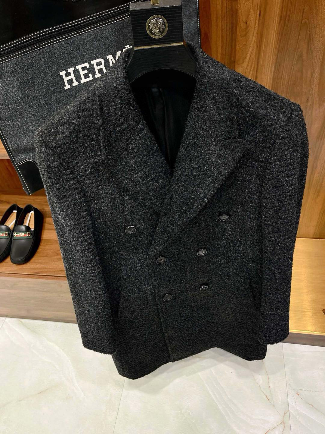 NIGO Hermes Men's Fall And Winter Water Wave Texture Casual Double-Breasted Medium-Length Wool Blend Coat Ngvp #nigo9882
