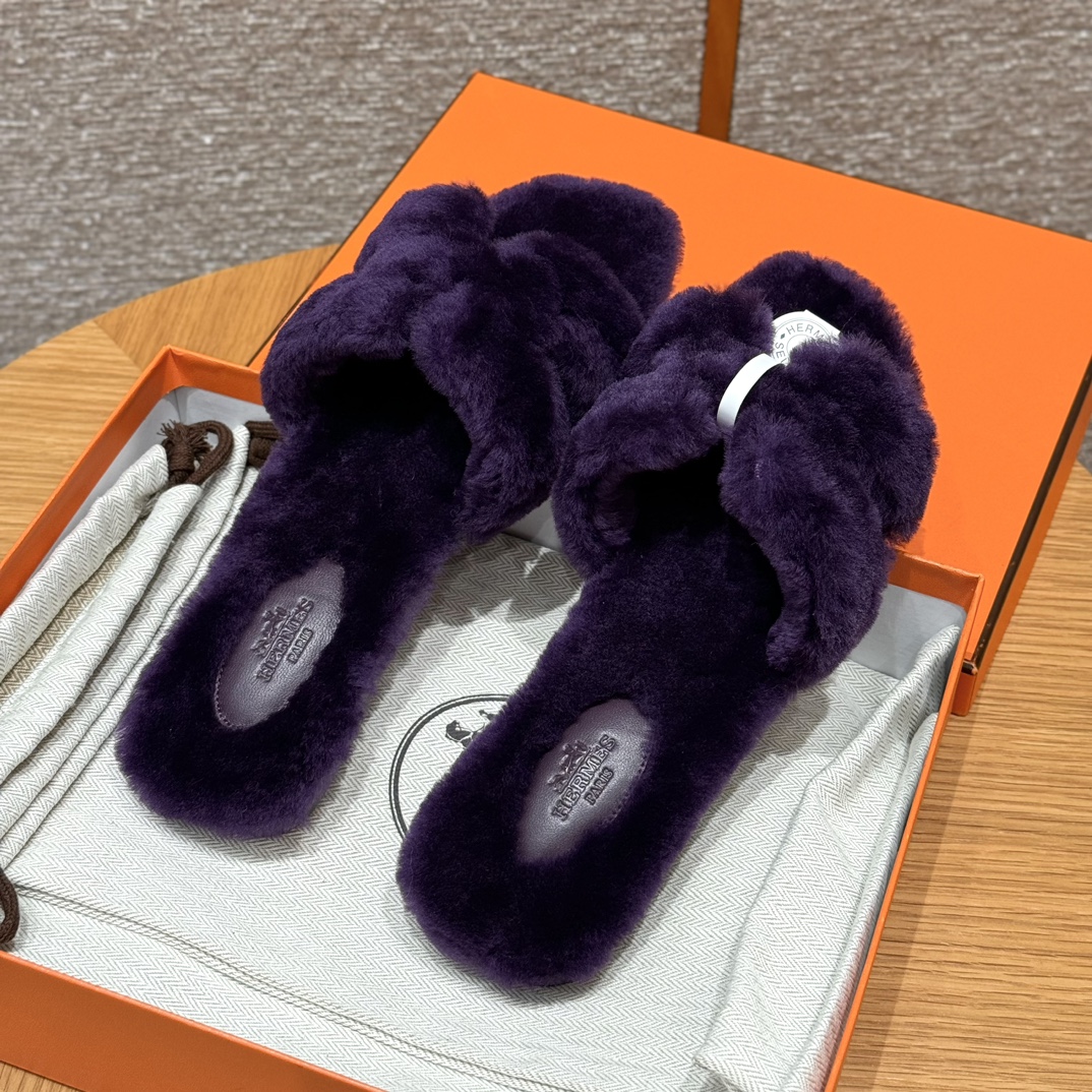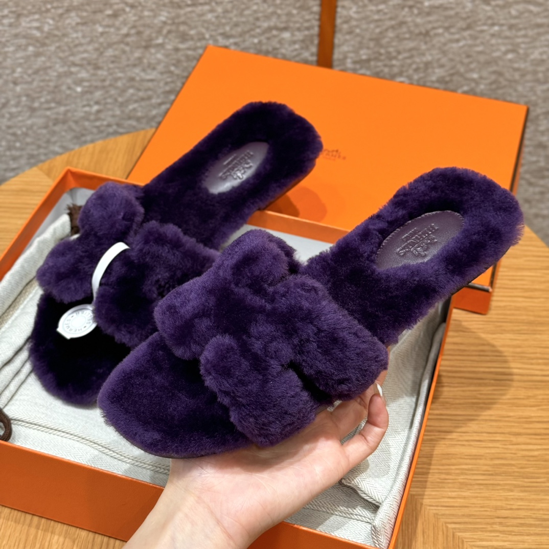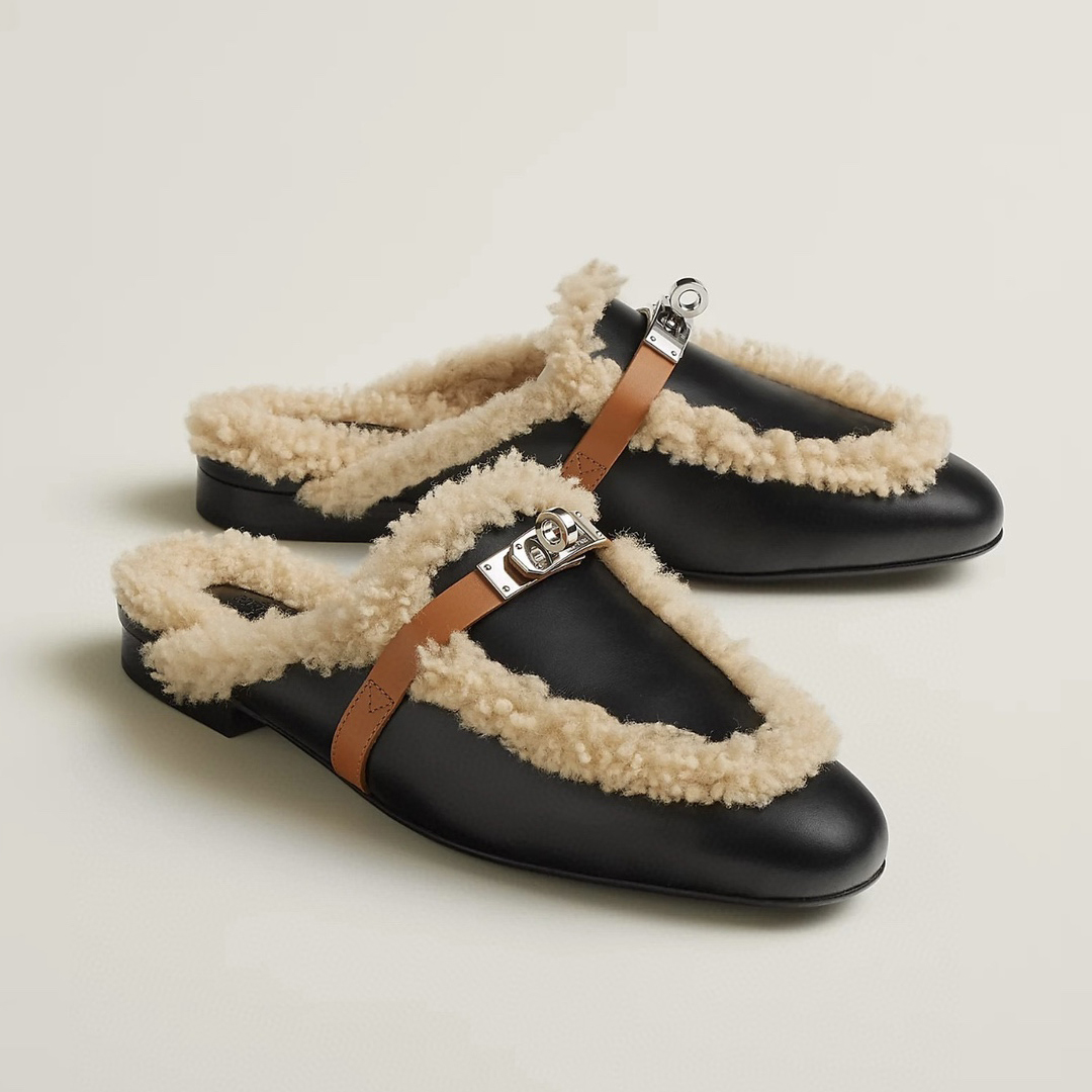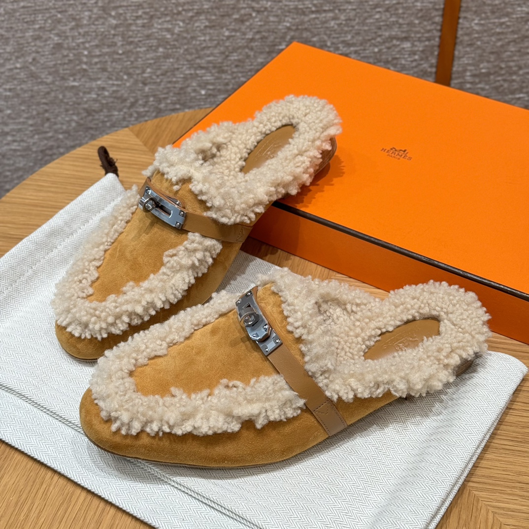 NIGO Hermes Women's Solid Color Suede Round Toe Flat Mule Shoes Slippers #nigo74233