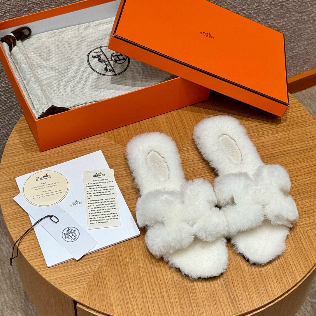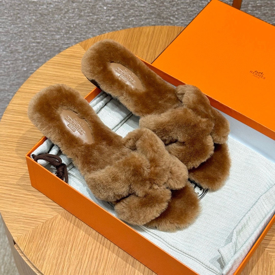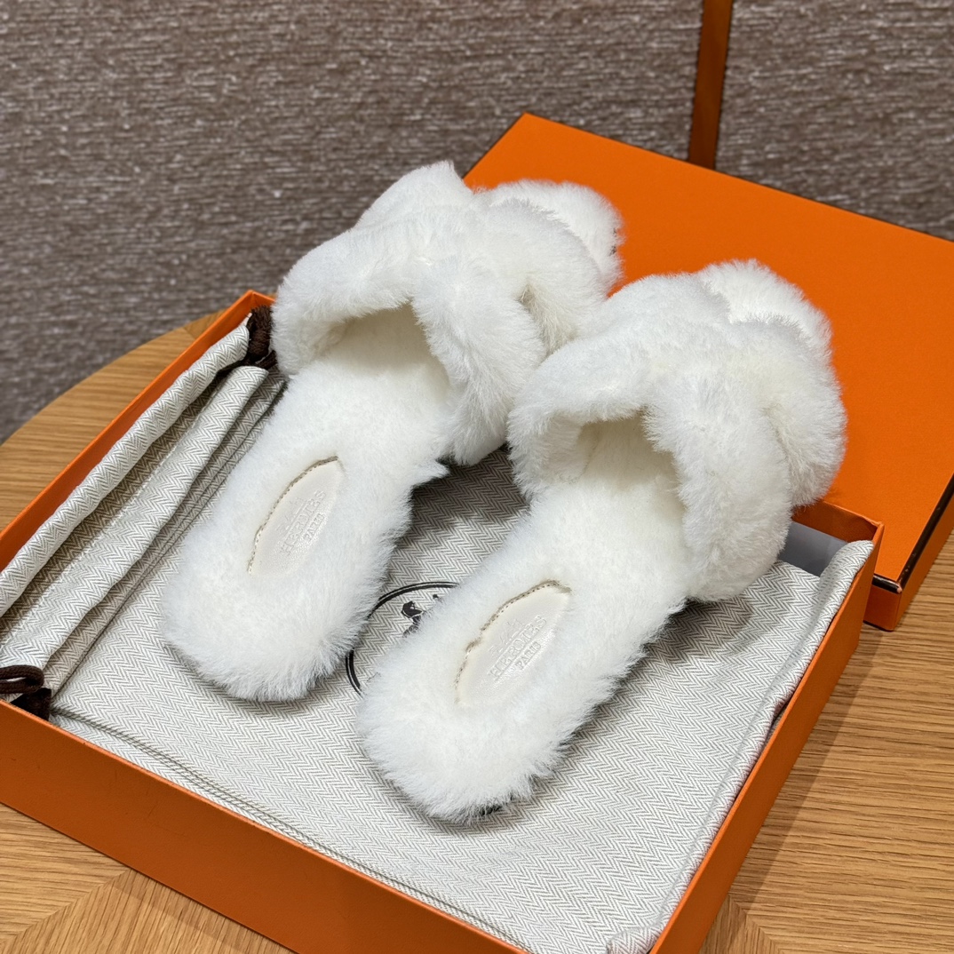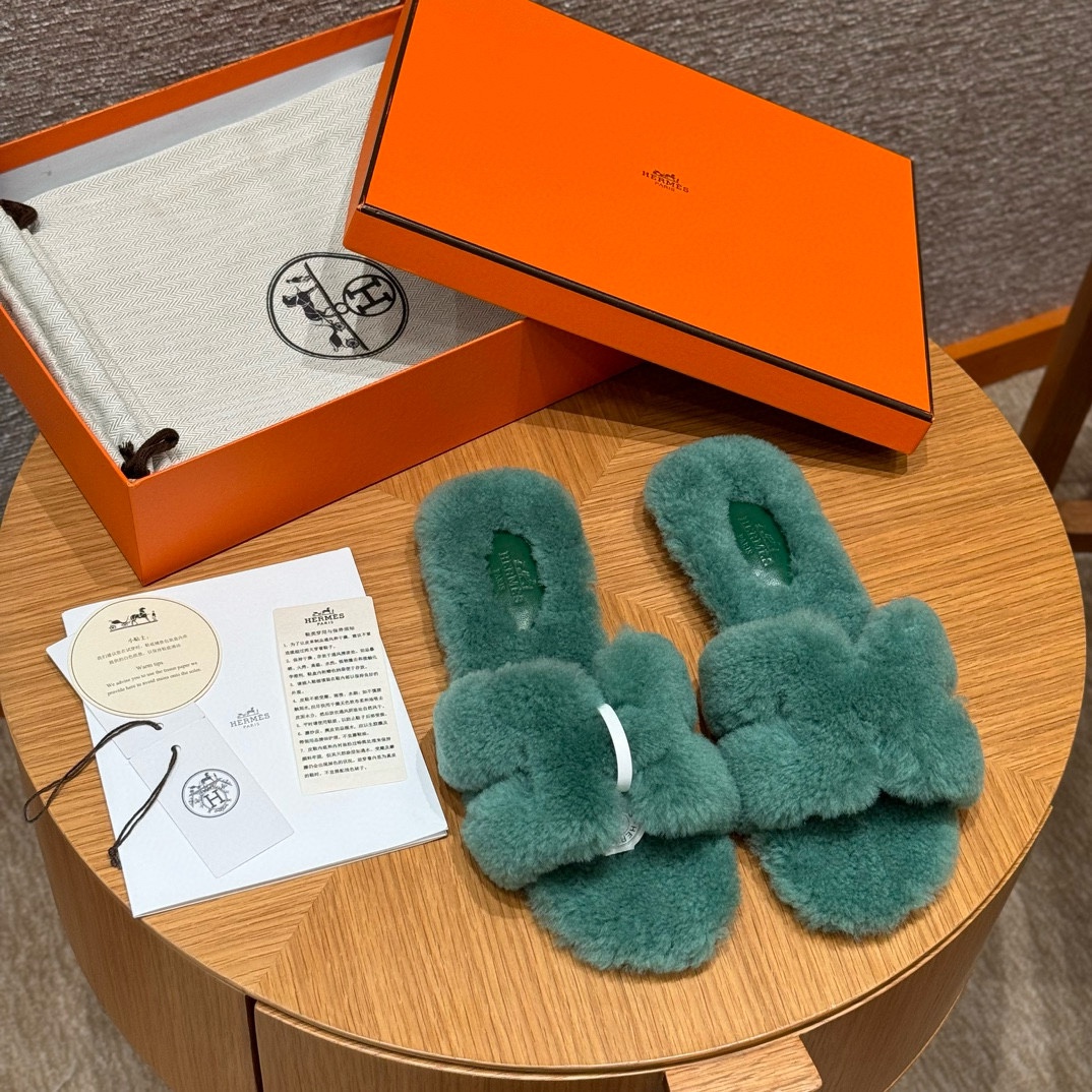 NIGO Hermes Women's Solid Color Suede Round Toe Flat Mule Shoes Slippers #nigo74233
