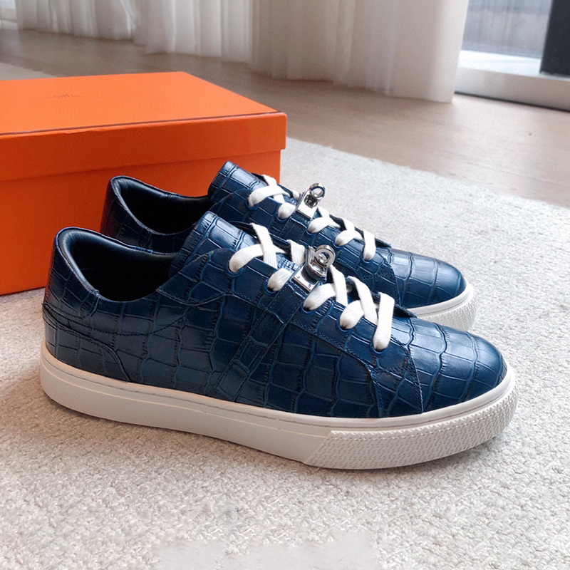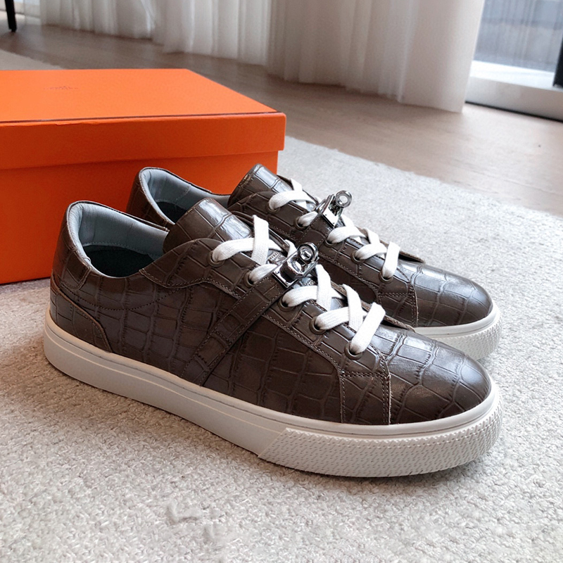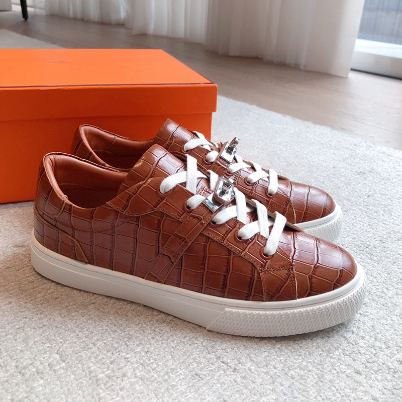 NIGO Hermes Men's And Women's Fashion Day Sneakers Solid Color Leather Low Top Lace Up Casual Shoes #nigo71699