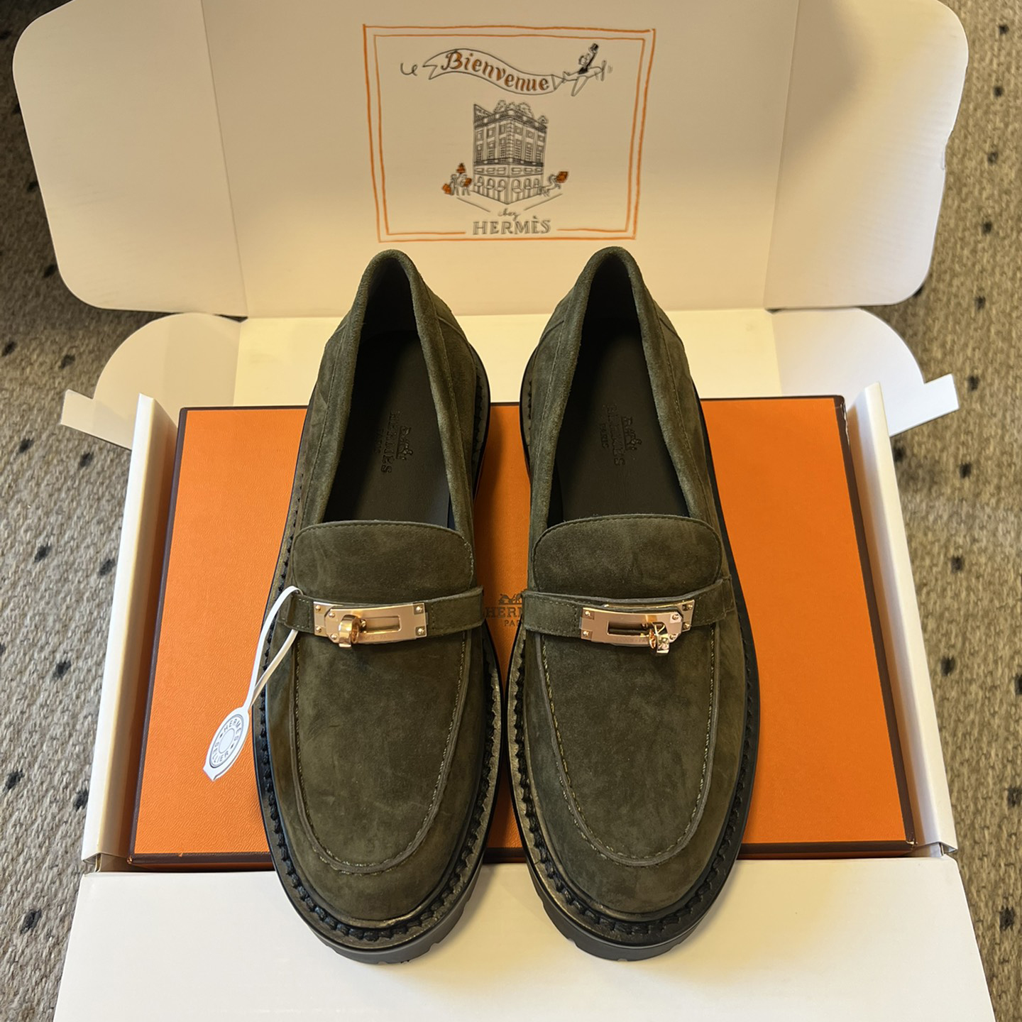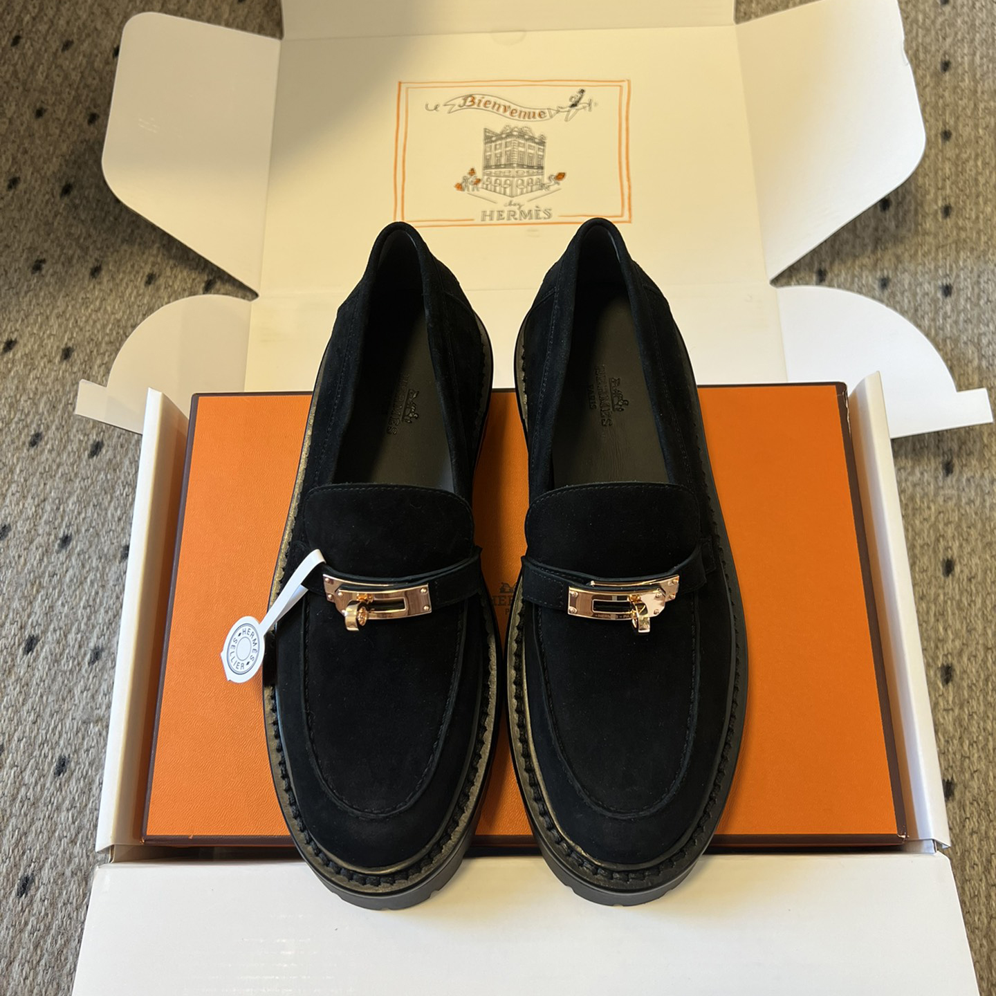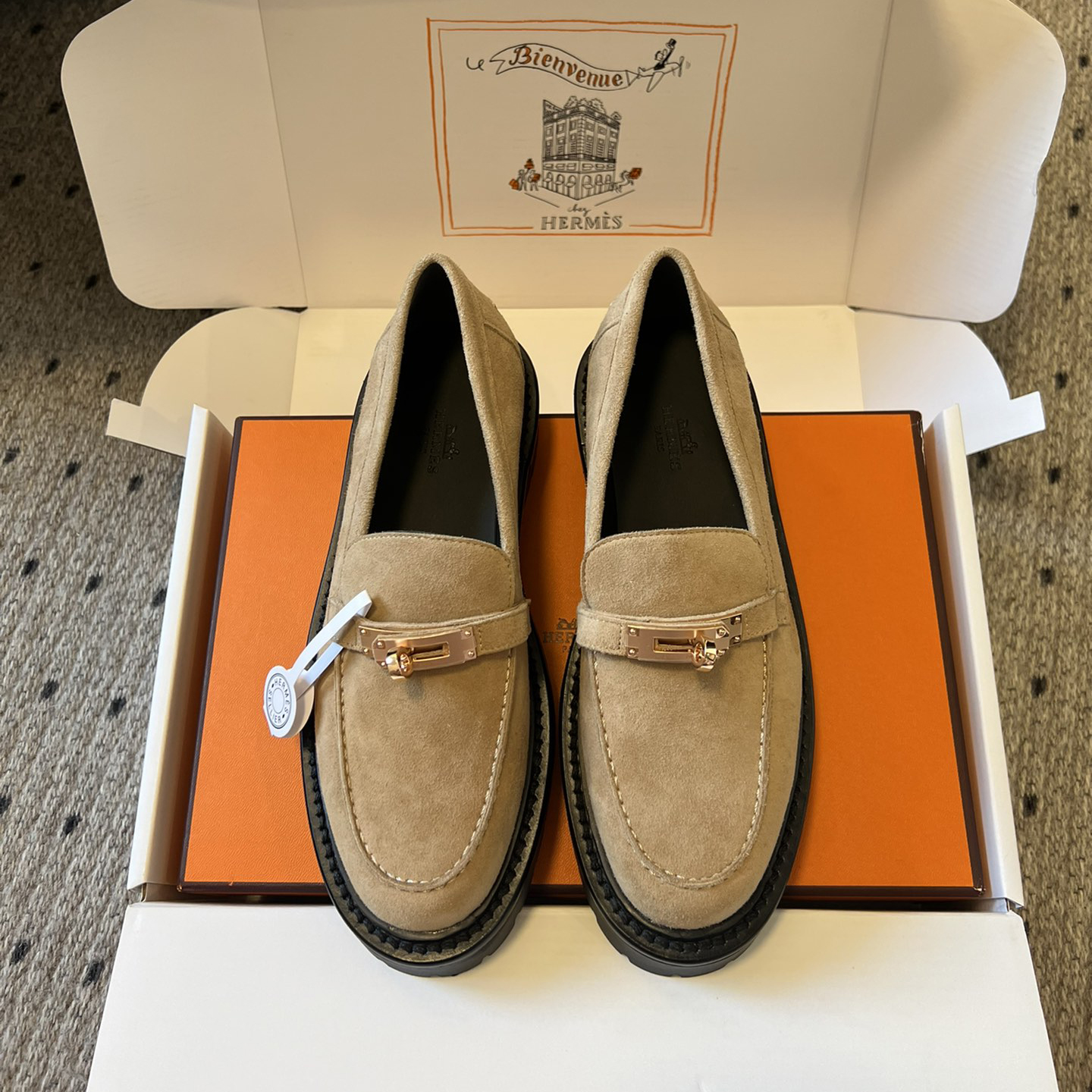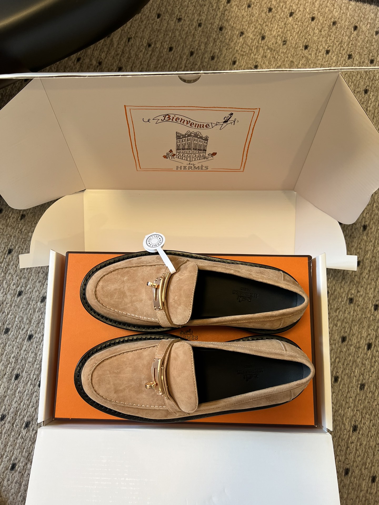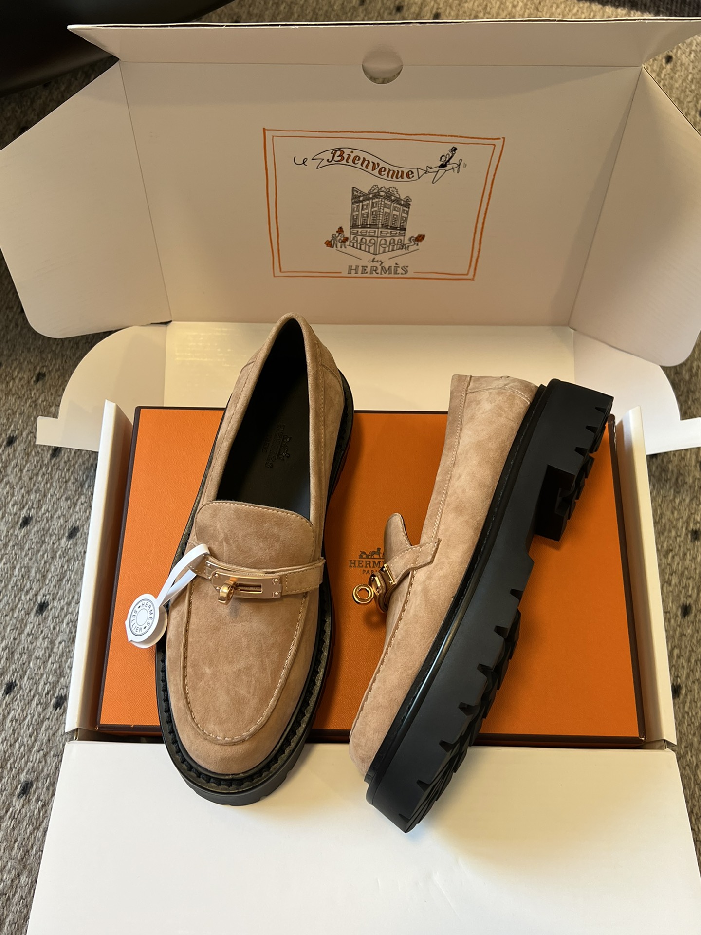 NIGO Hermes Women's Solid Color Suede Leather Round Head Over Toe Thick Bottom Loafers Shoes #nigo74136