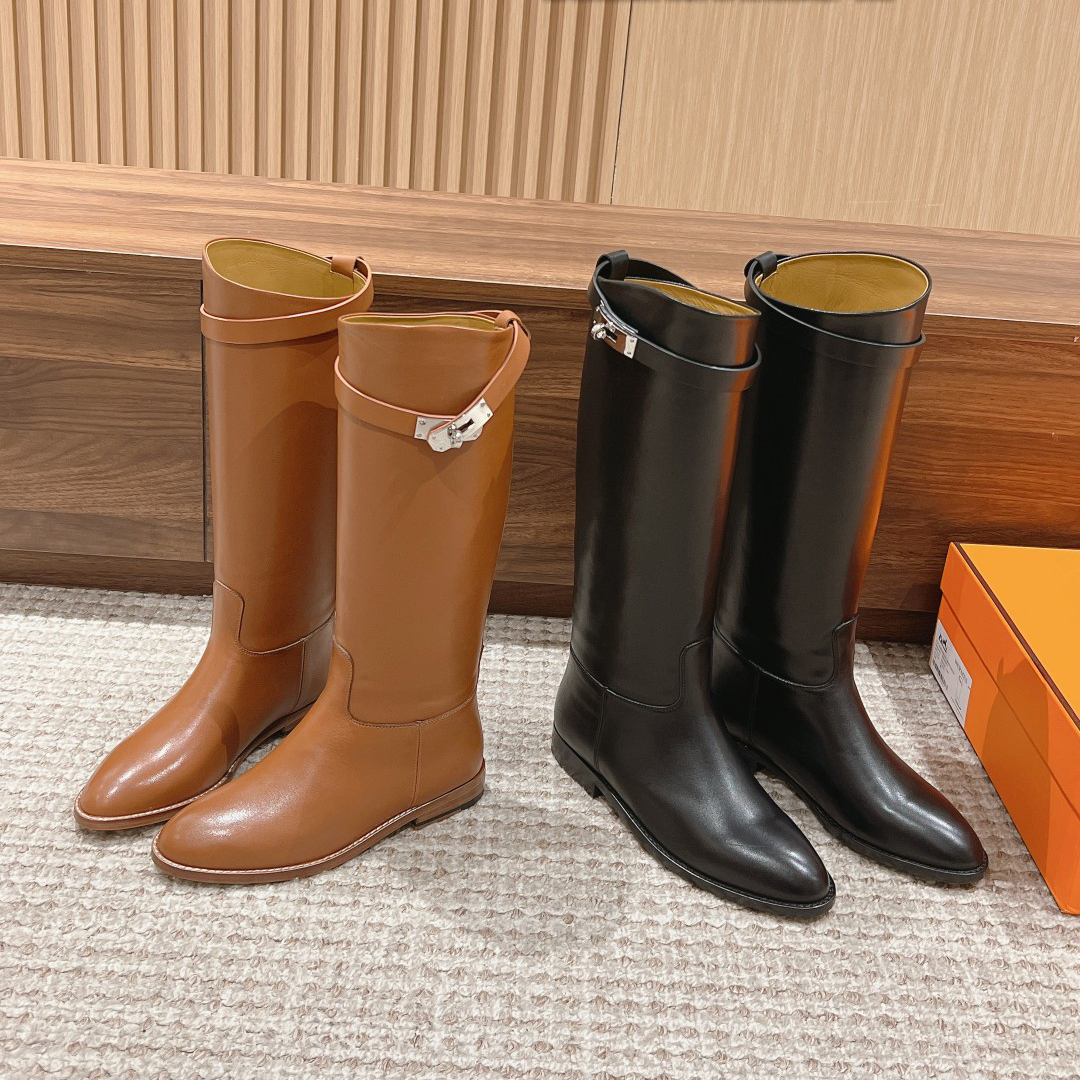 NIGO Hermes Women's Autumn and Winter Solid Color Simple Casual Leather Thigh High Boots Shoes #nigo72892