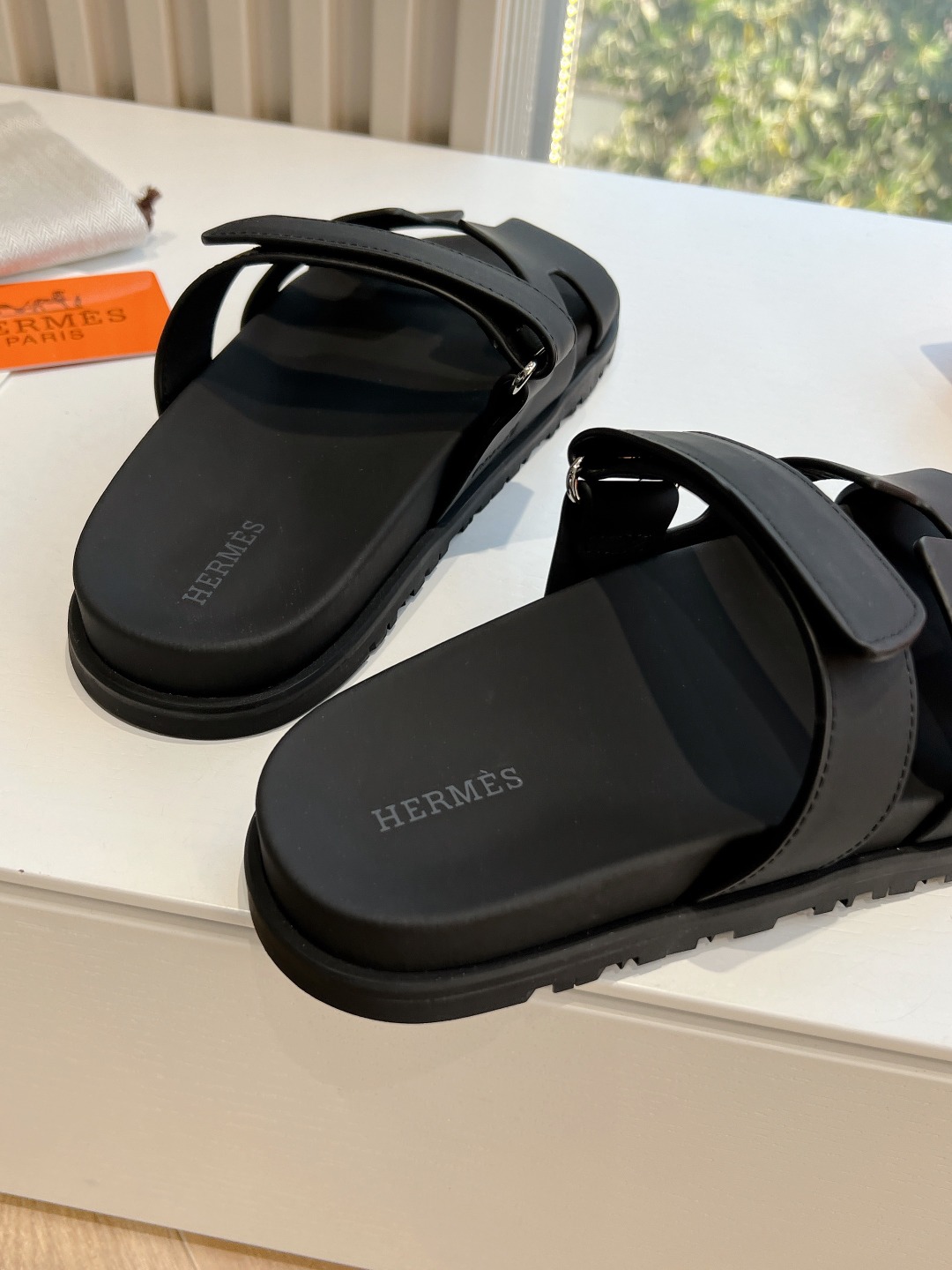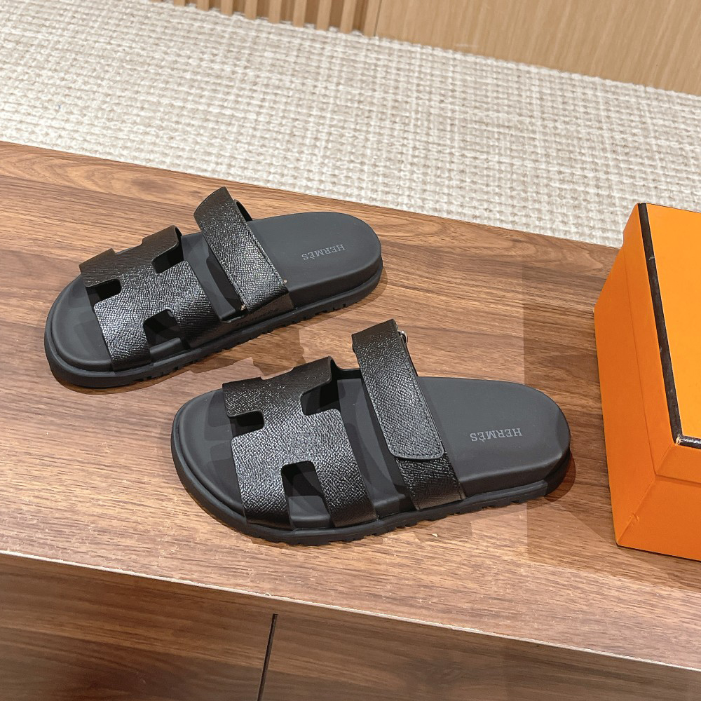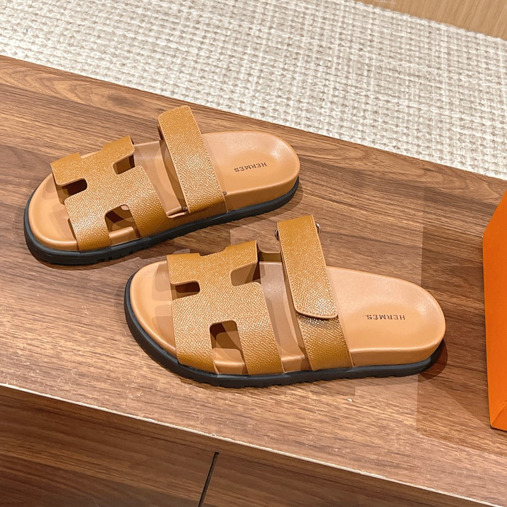 NIGO Hermes Chypre Men's Solid Color Leather Velcro Flat Fashion Sandals Shoes #nigo72433