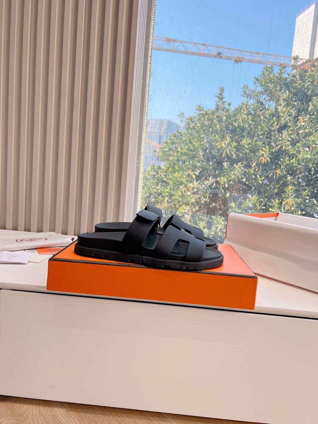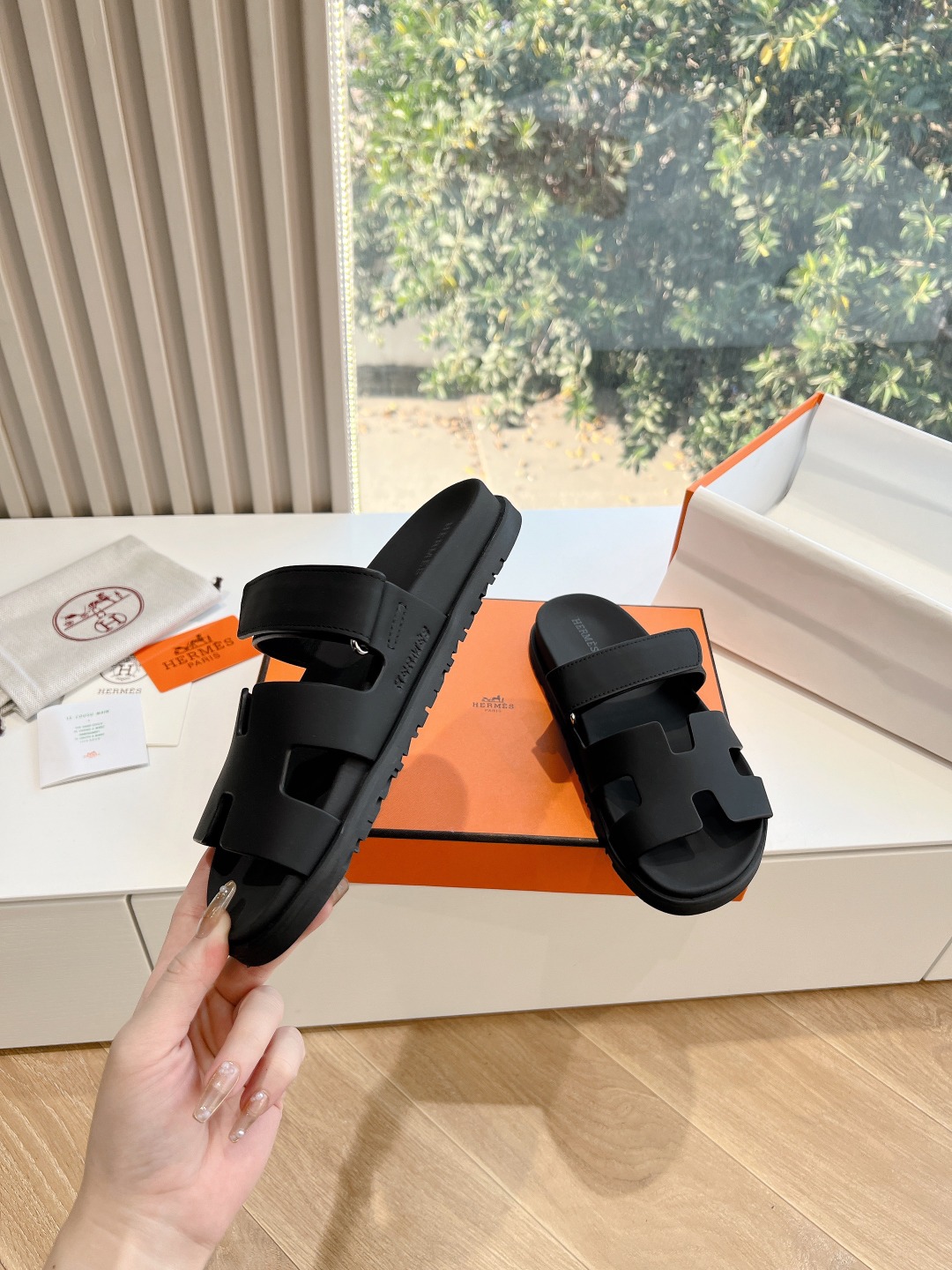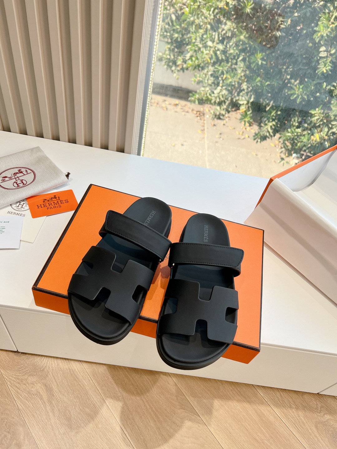 NIGO Hermes Chypre Men's Solid Color Leather Velcro Flat Fashion Sandals Shoes #nigo72433