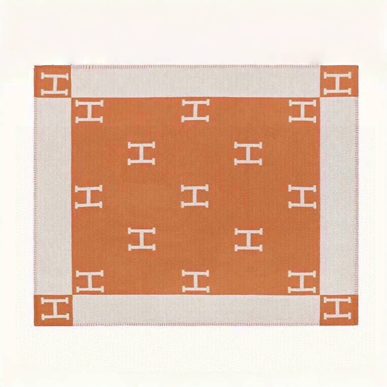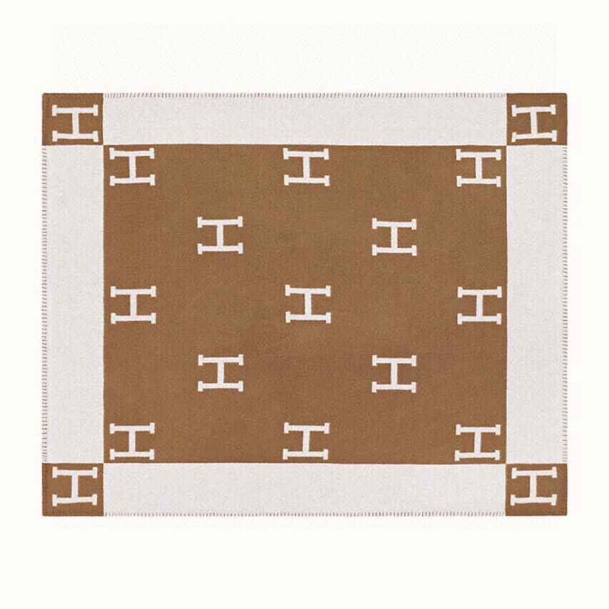 NIGO Hermes Color Blocking Plaid Logo Cozy Fashion Wool Blanket Simple Elegant Light Blanket #nigo71387