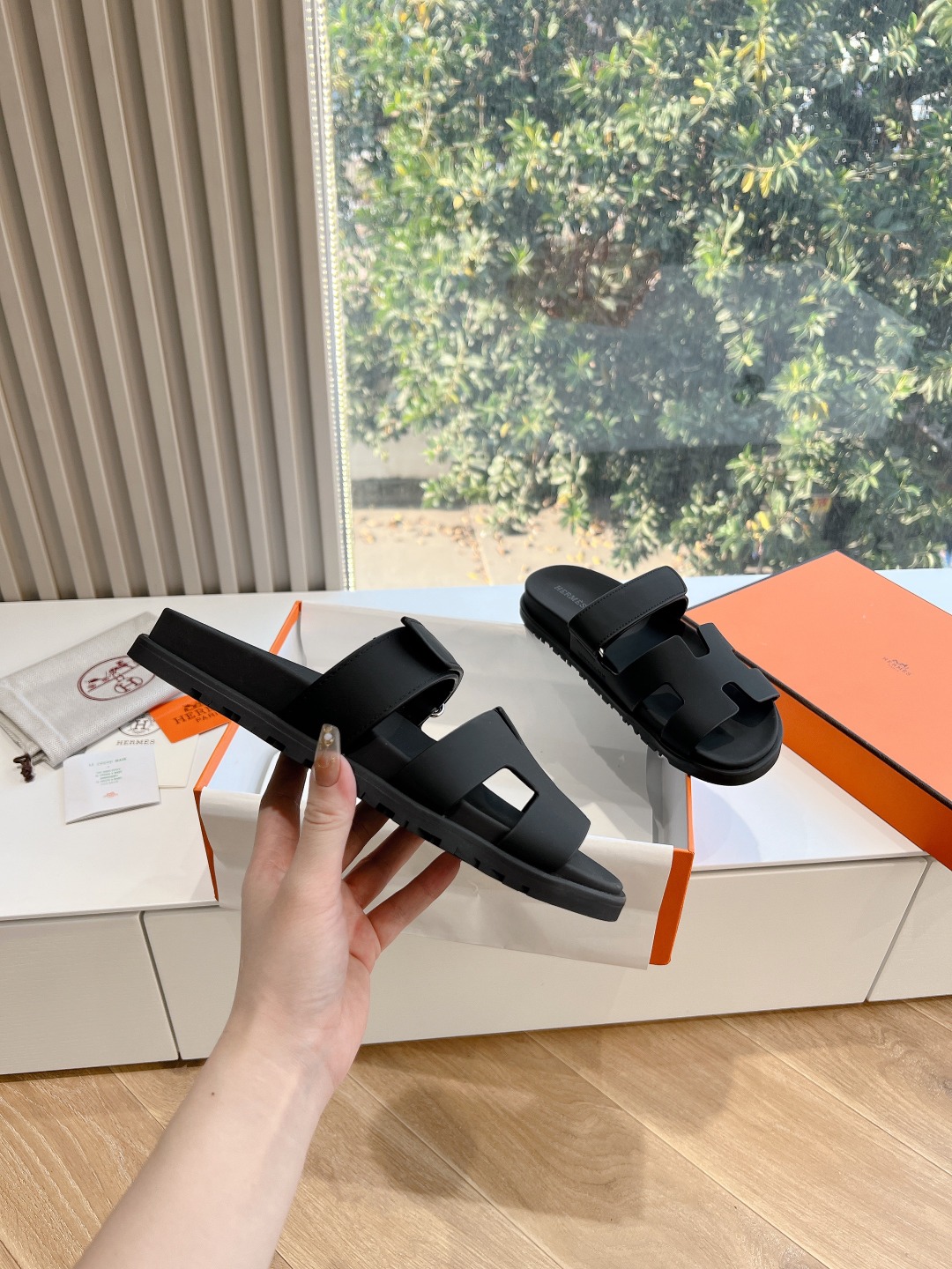 NIGO Hermes Men's Women's Fashion Casual Comfortable Letter Logo Slippers Black Deerskin Sandals Shoes #nigo71389