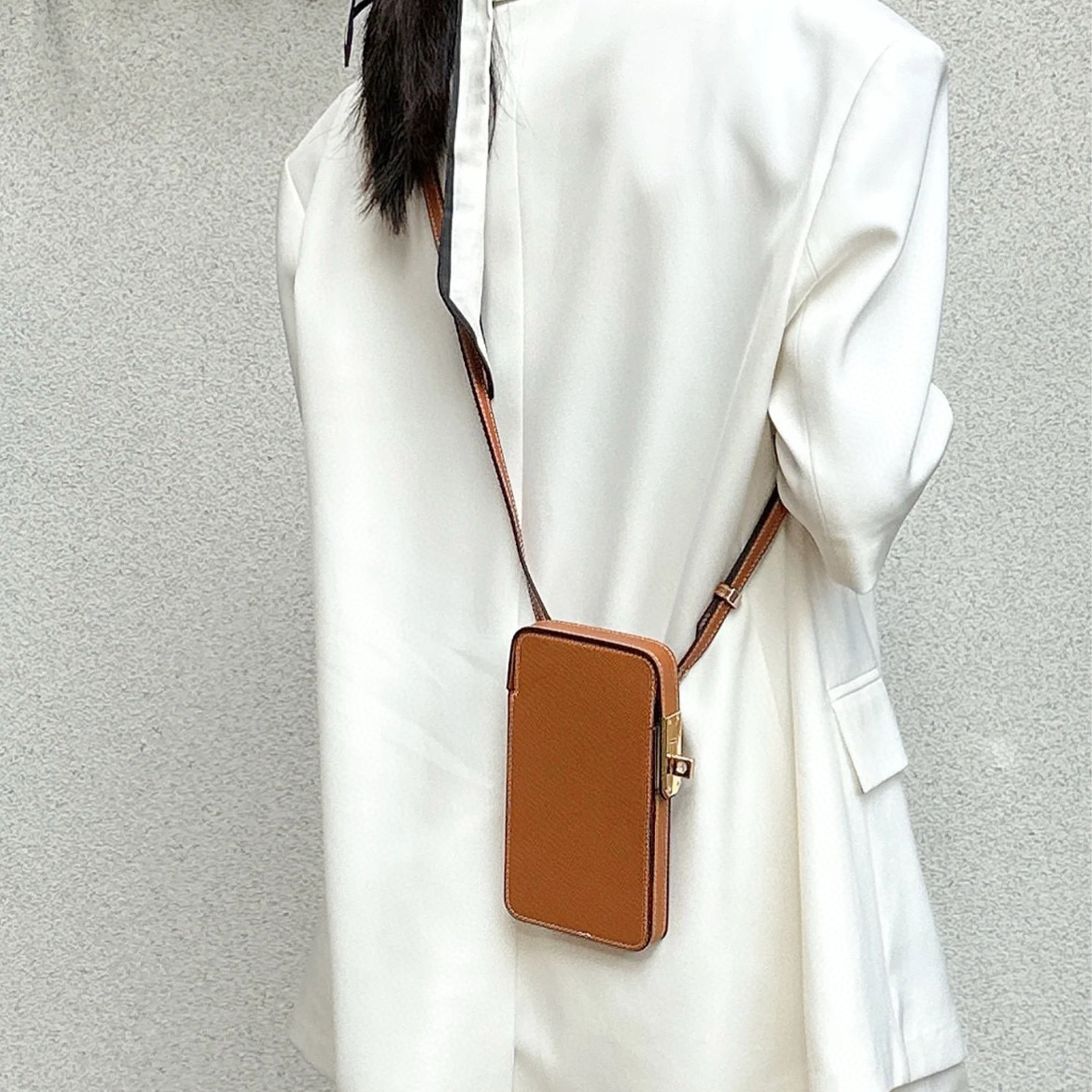 NIGO Hermes Women's Fashion Hac a Box Silver Buckle Wrangled Calfskin Phone Protection Case Casual Phone Bag Ngvp #nigo8379