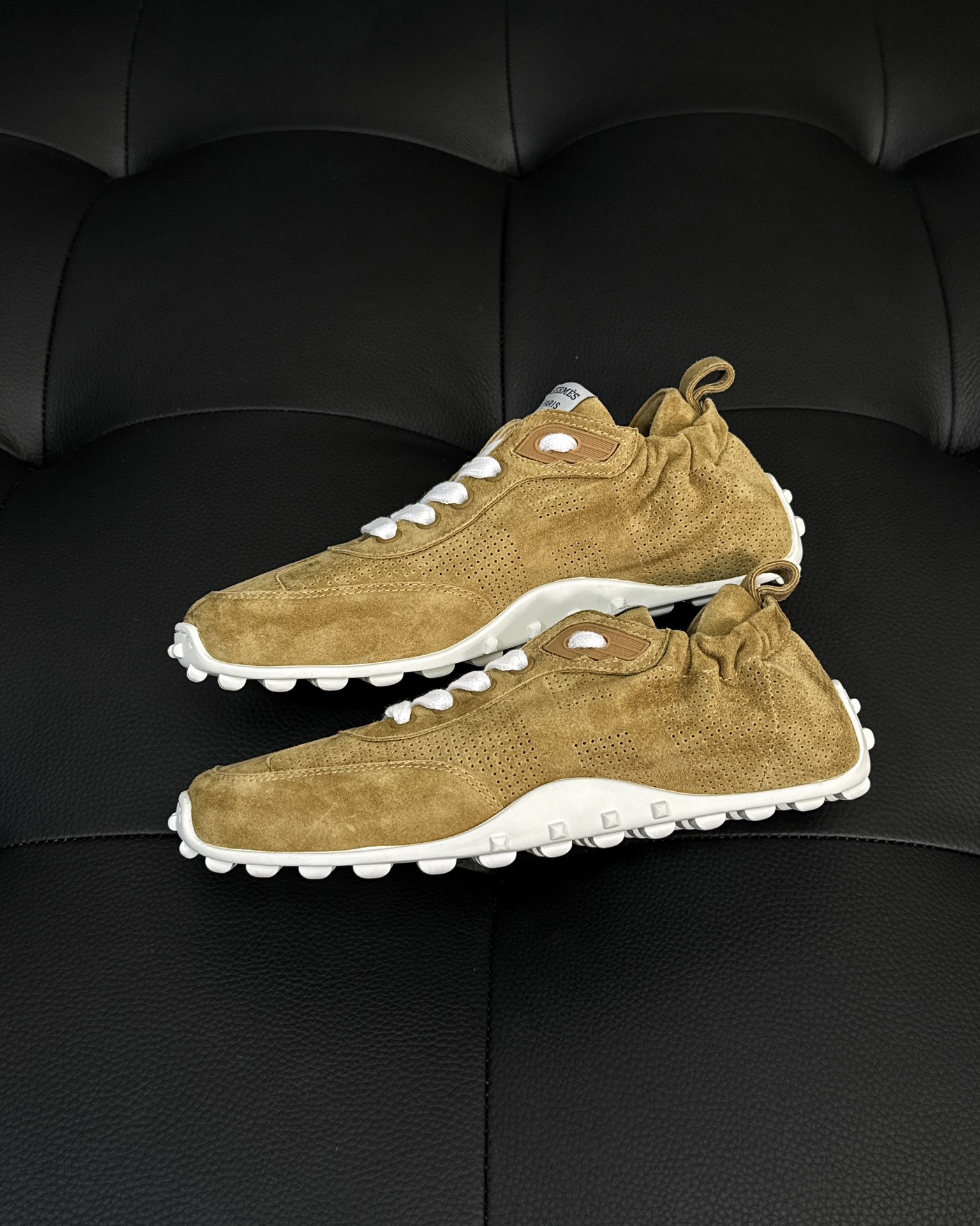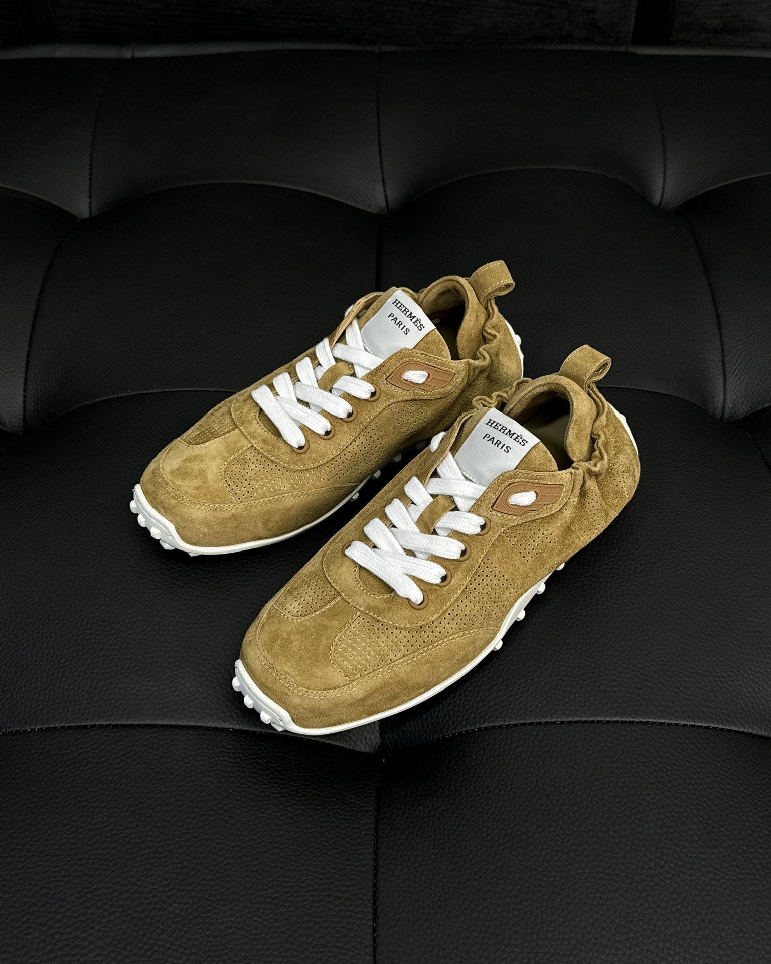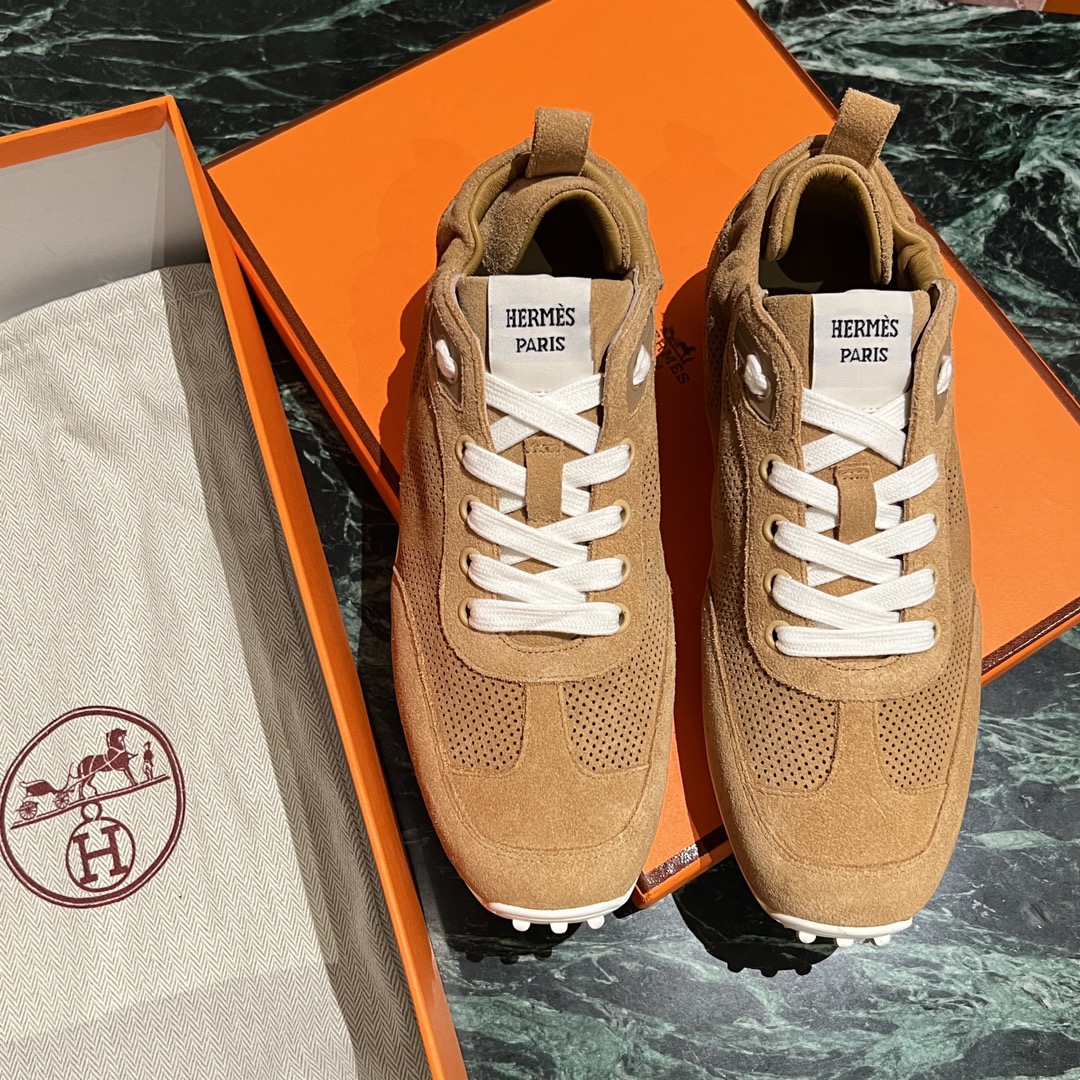 NIGO Hermes Men's And Women's Solid Color Grained Calf Leather Round Toe Low Top Lace Up Sneakers Shoes #nigo72118