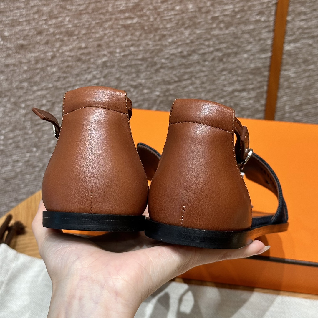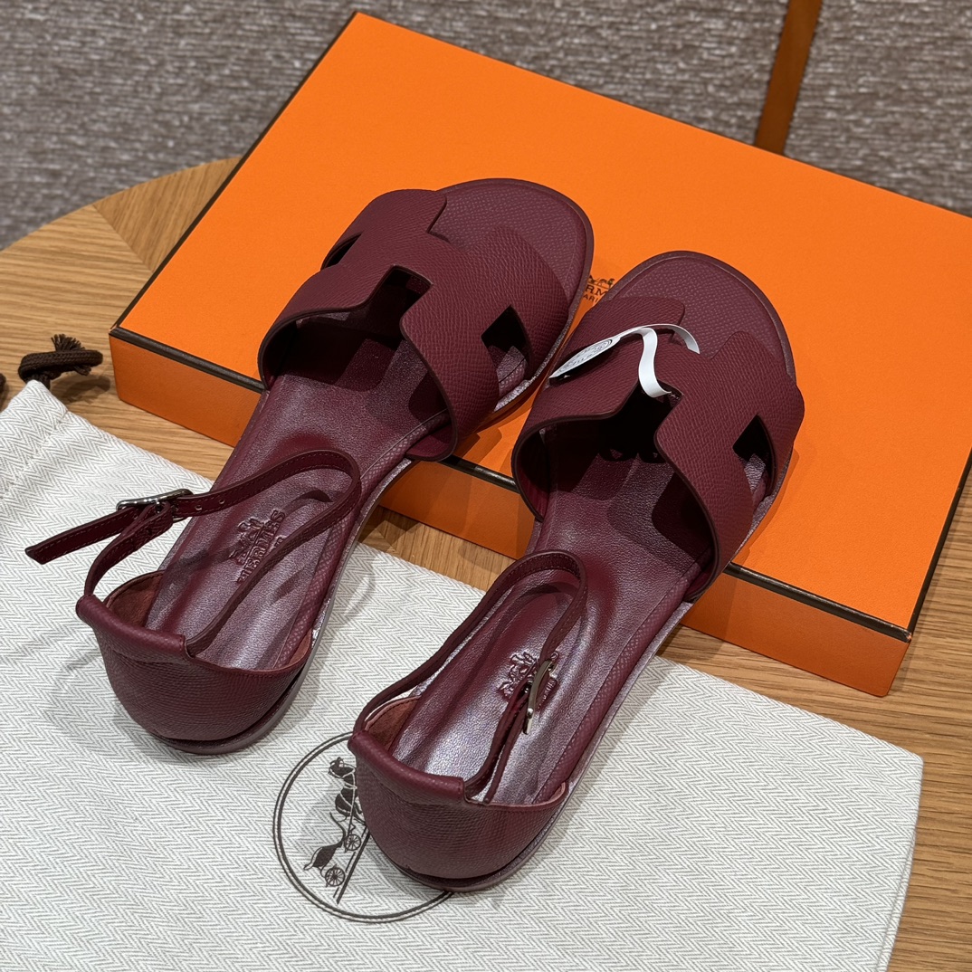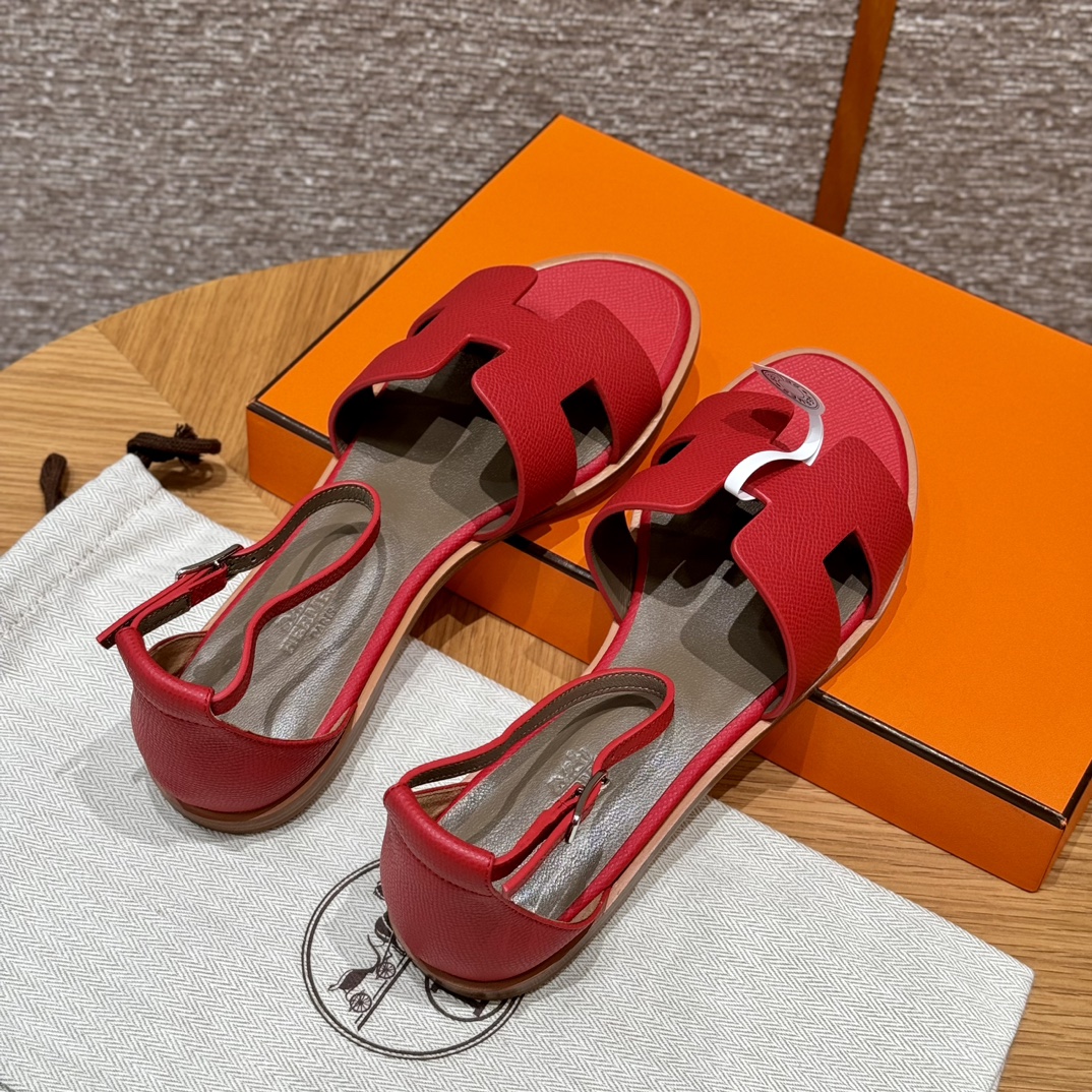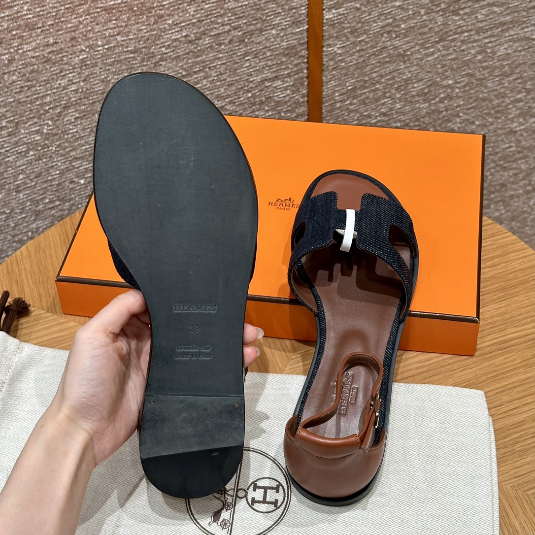 NIGO Hermes Santorini Women's Summer Solid Color Leather Flat Sandals Shoes #nigo72258