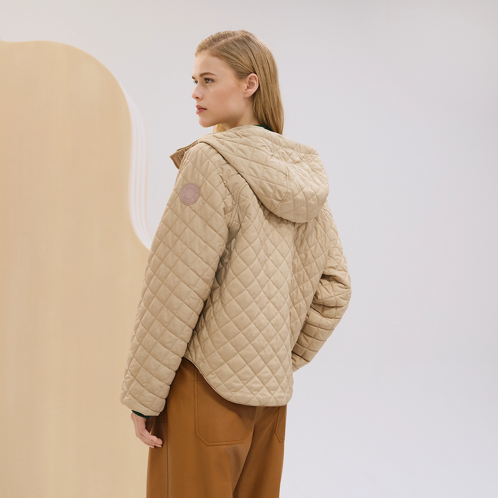 NIGO Hermes Women's Spring And Autumn Checkered Badge Lightweight Solid Color Zipper Hooded Quilted Jacket Ngvp #nigo2299