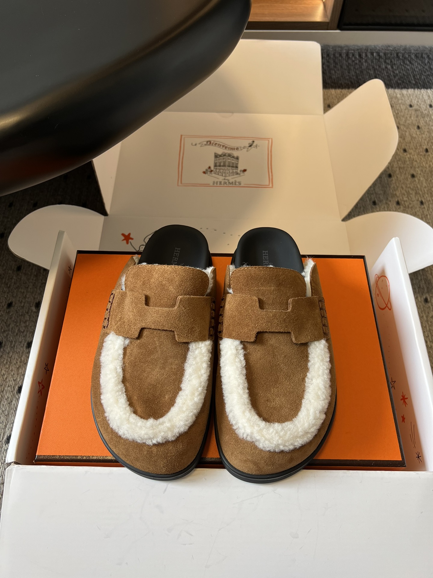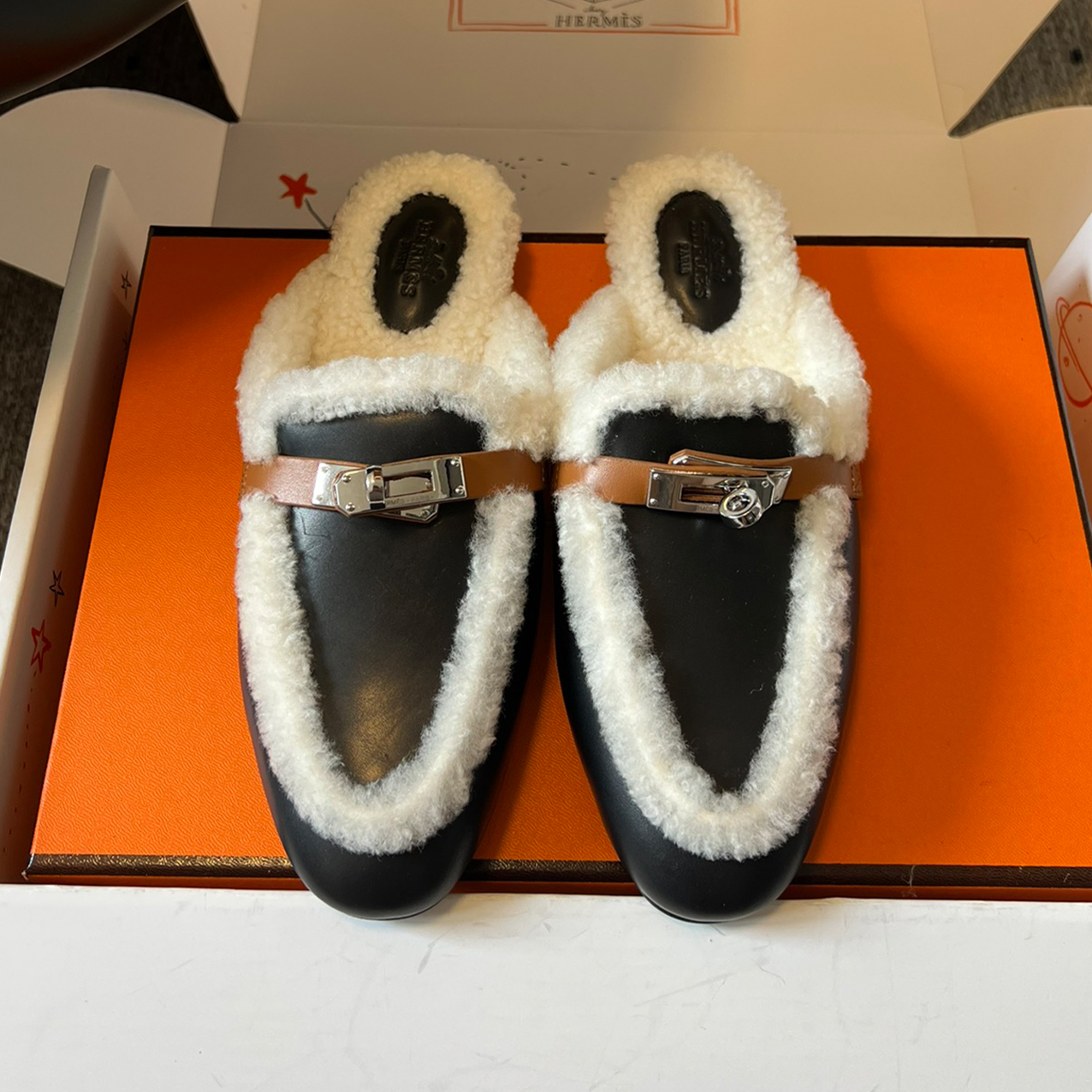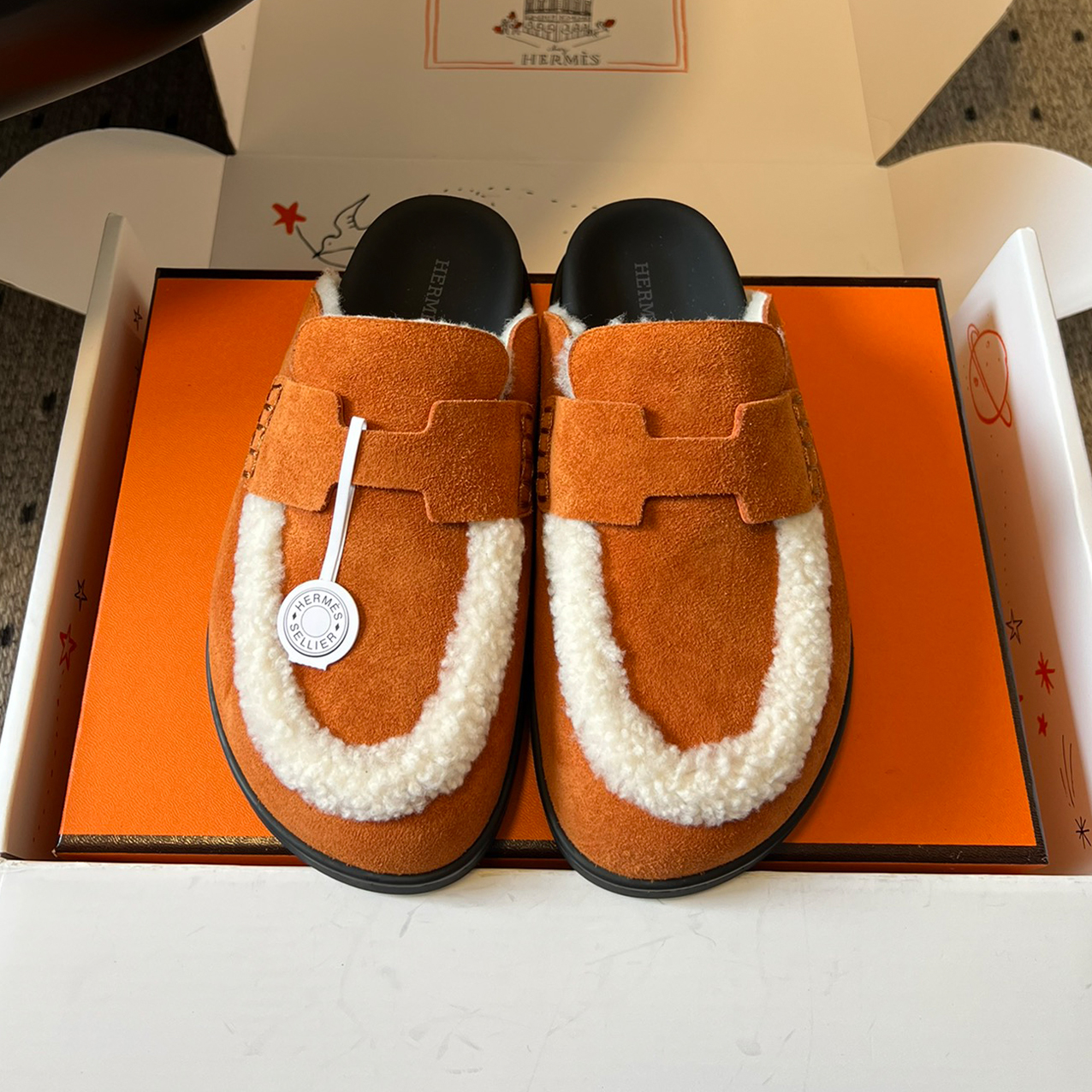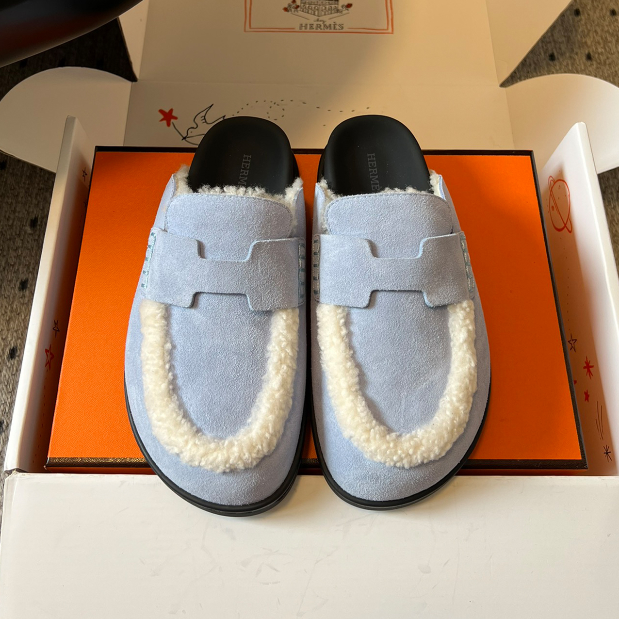 NIGO Hermes Women's Winter Head-Covering Half-Support Shoes Casual Solid Color Oz Flat Mule Slippers #nigo81518