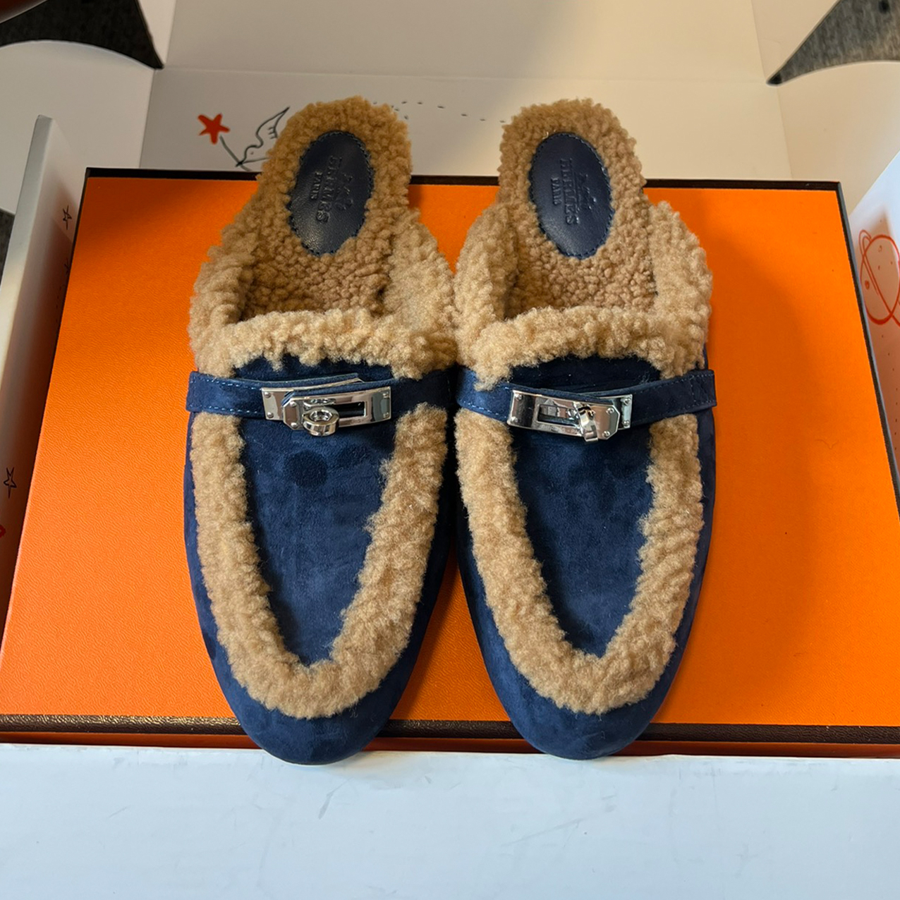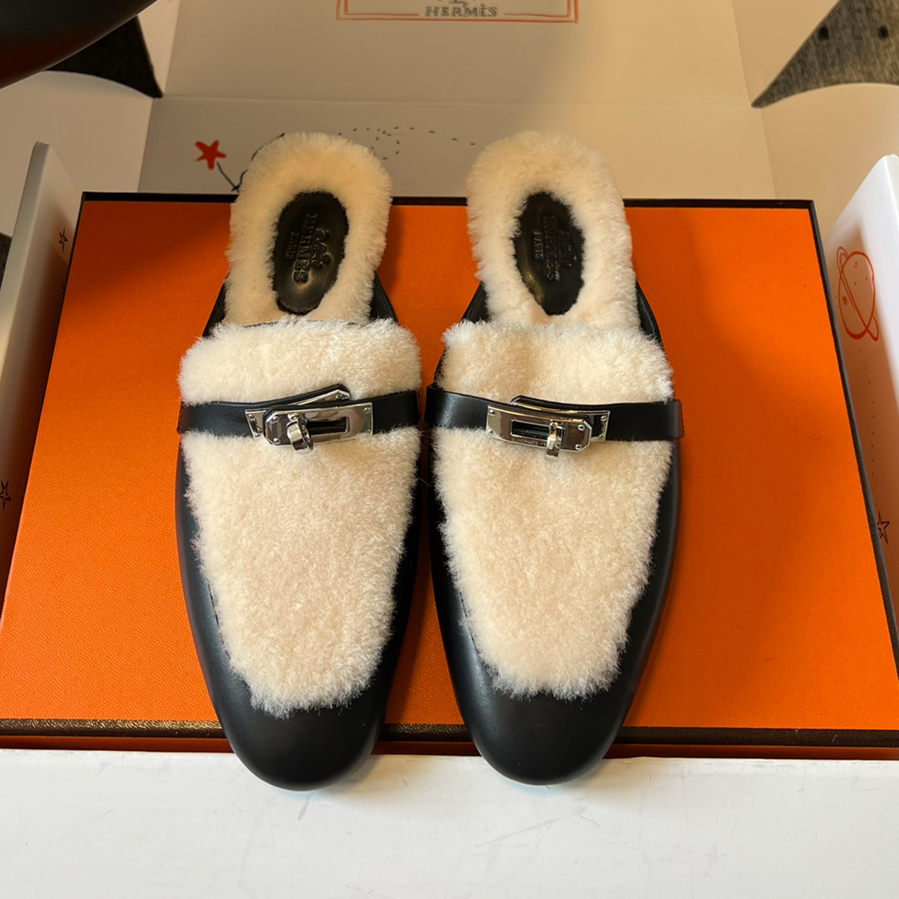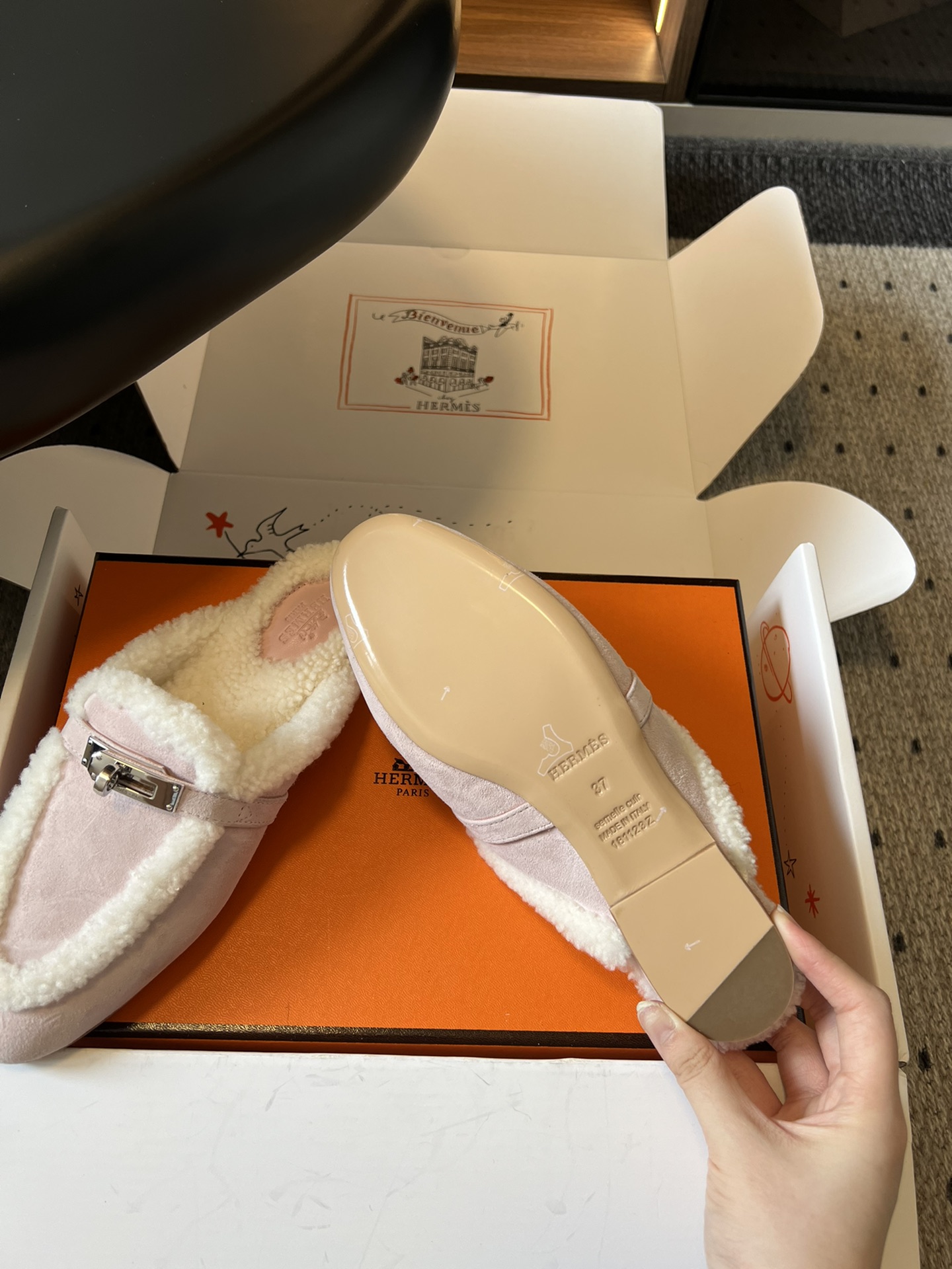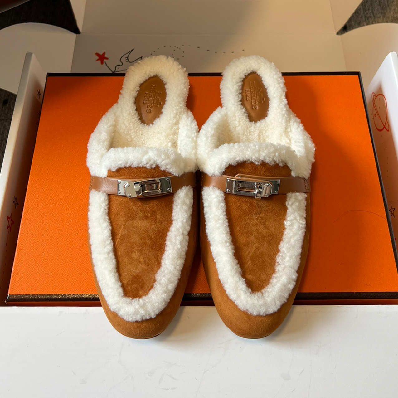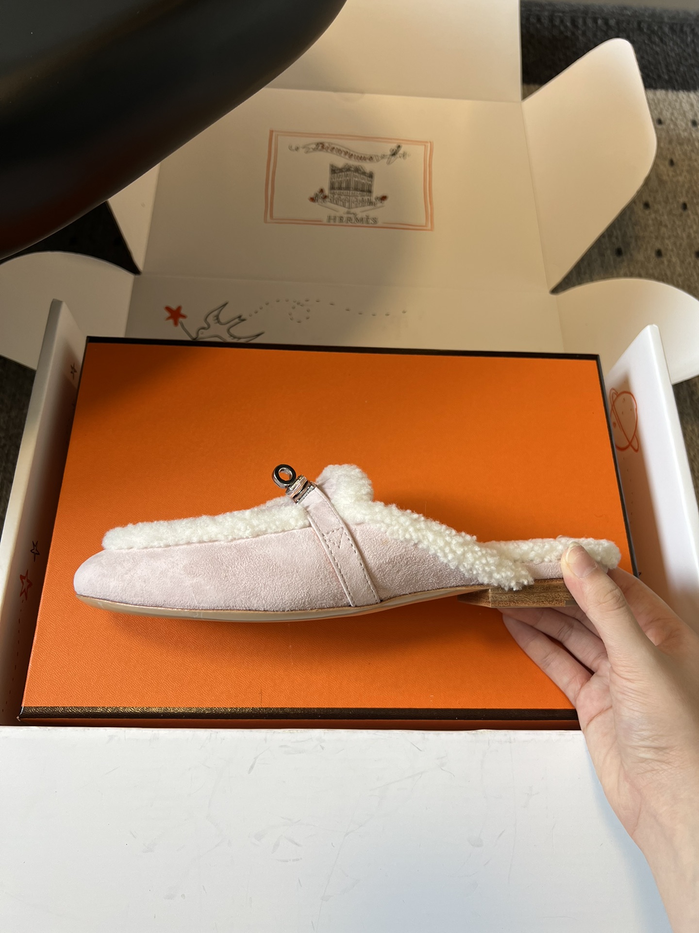 NIGO Hermes Women's Winter Head-Covering Half-Support Shoes Casual Solid Color Oz Flat Mule Slippers #nigo81518