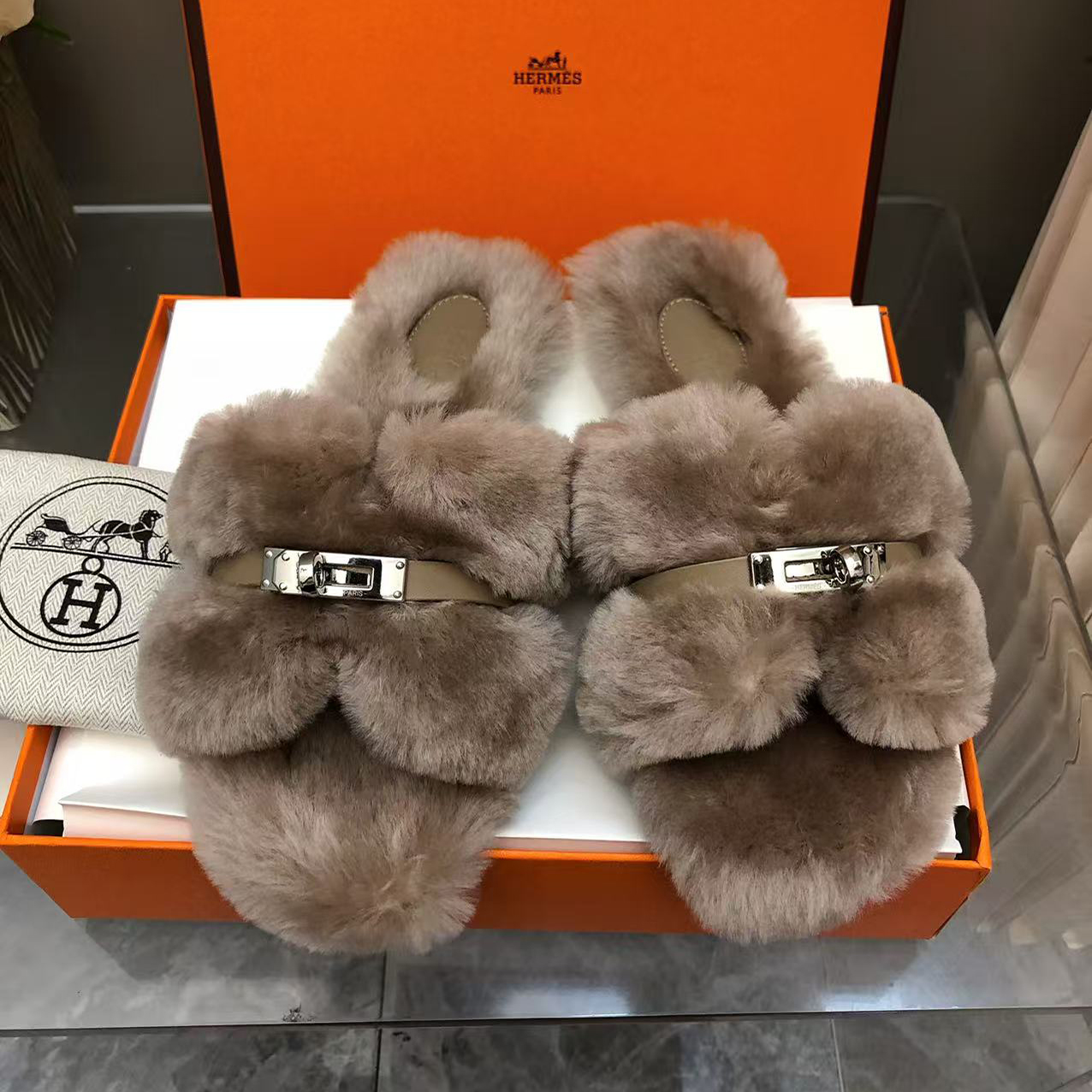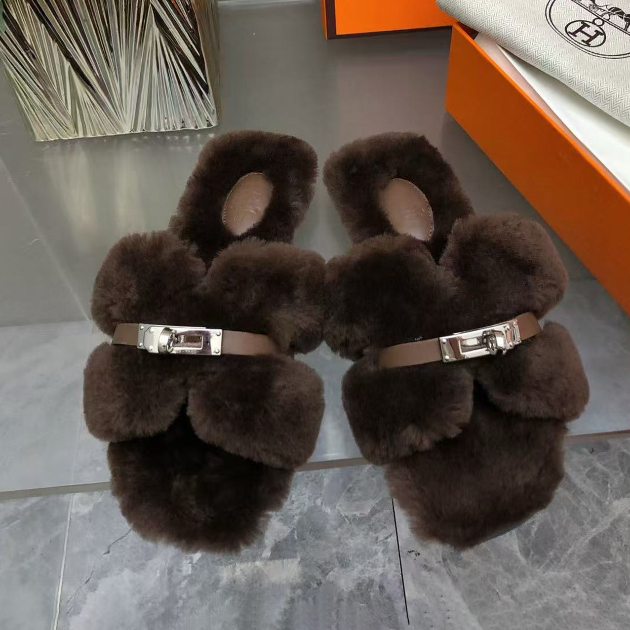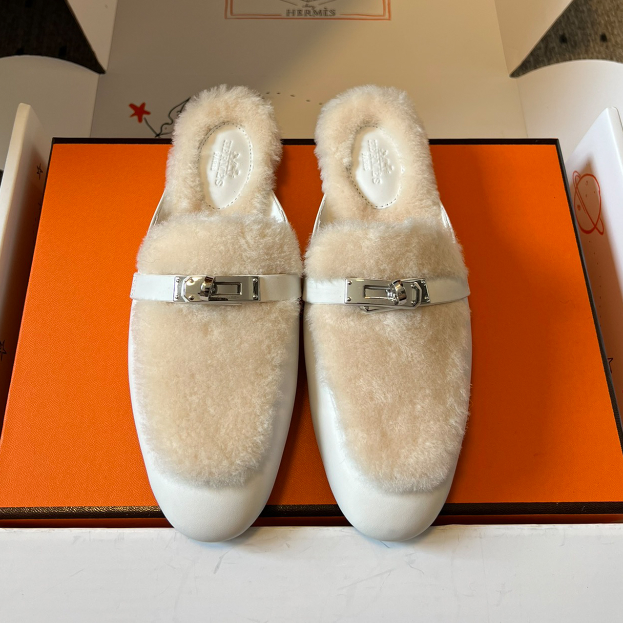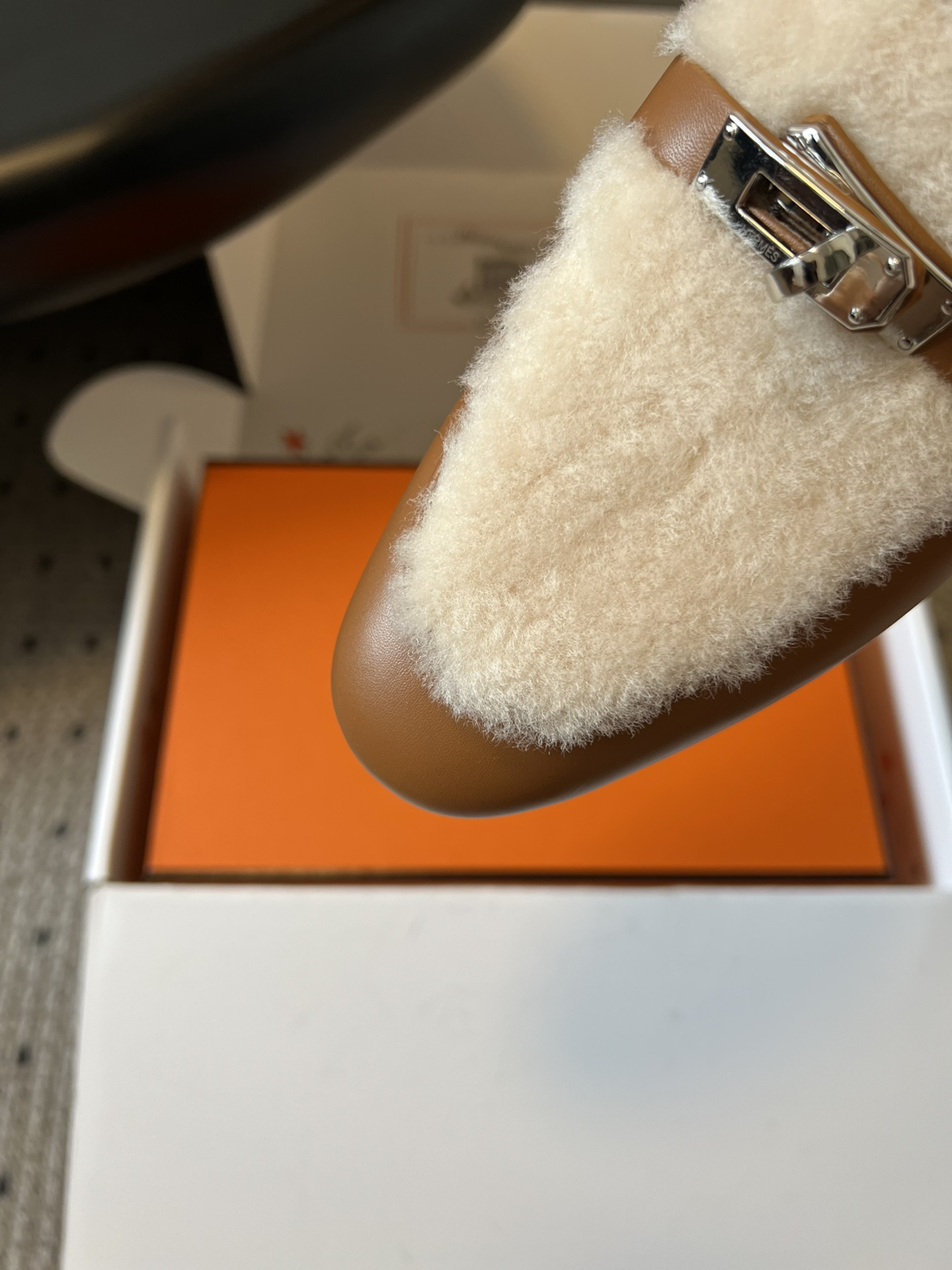 NIGO Hermes Women's Winter Head-Covering Half-Support Shoes Casual Solid Color Oz Flat Mule Slippers #nigo81518