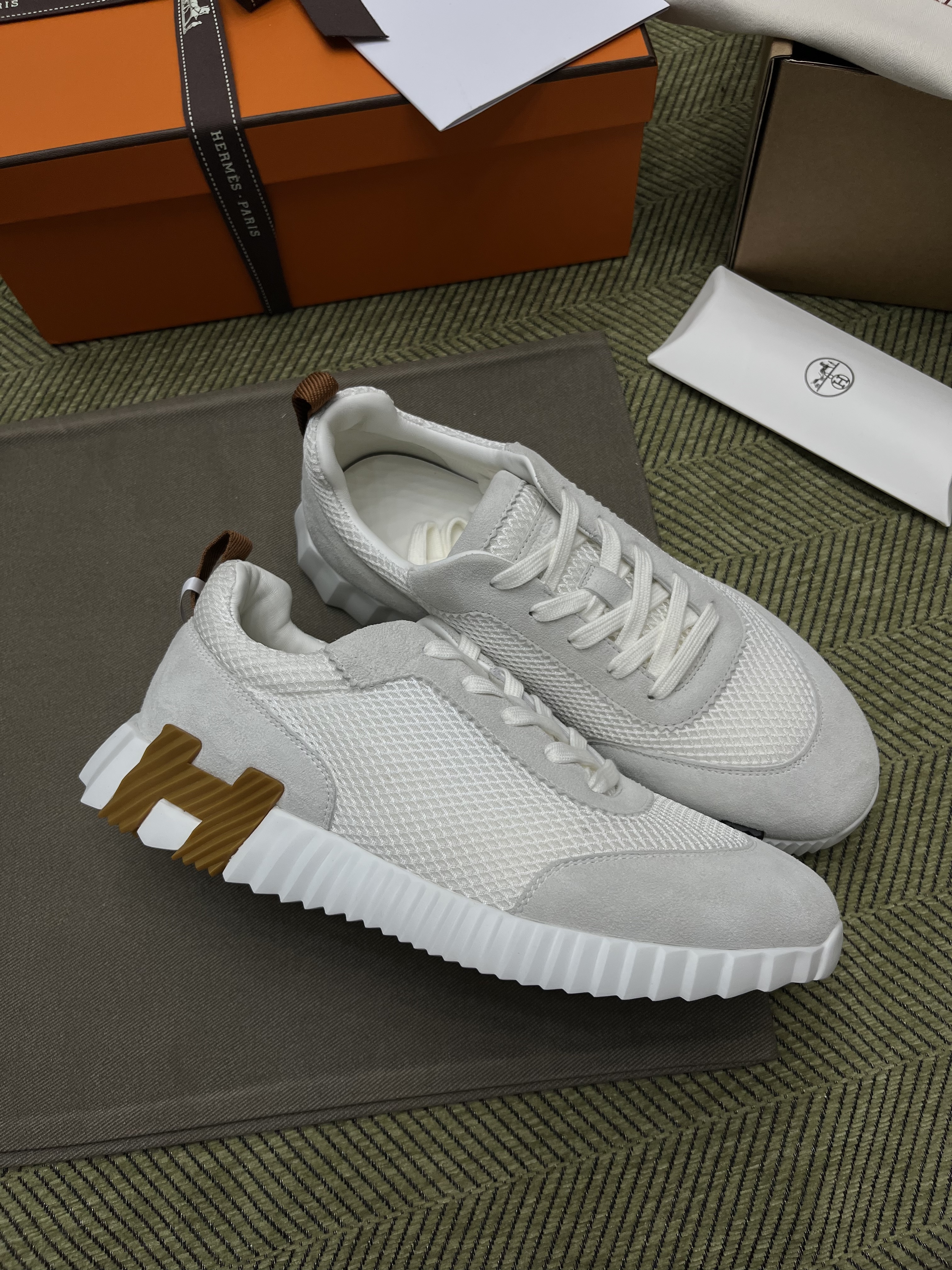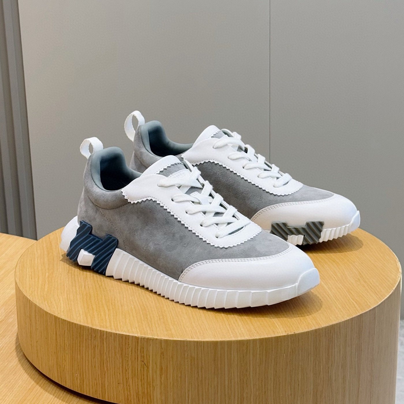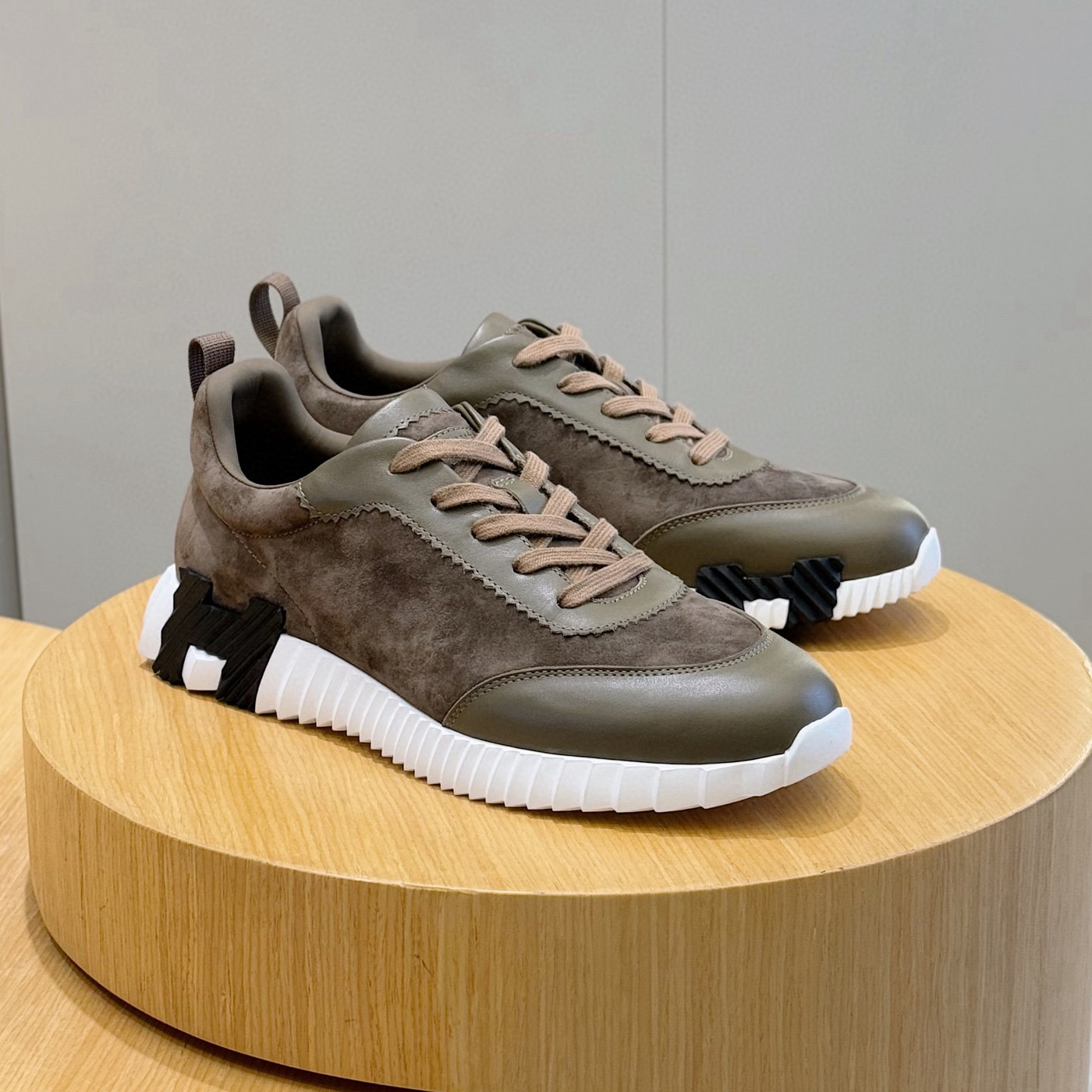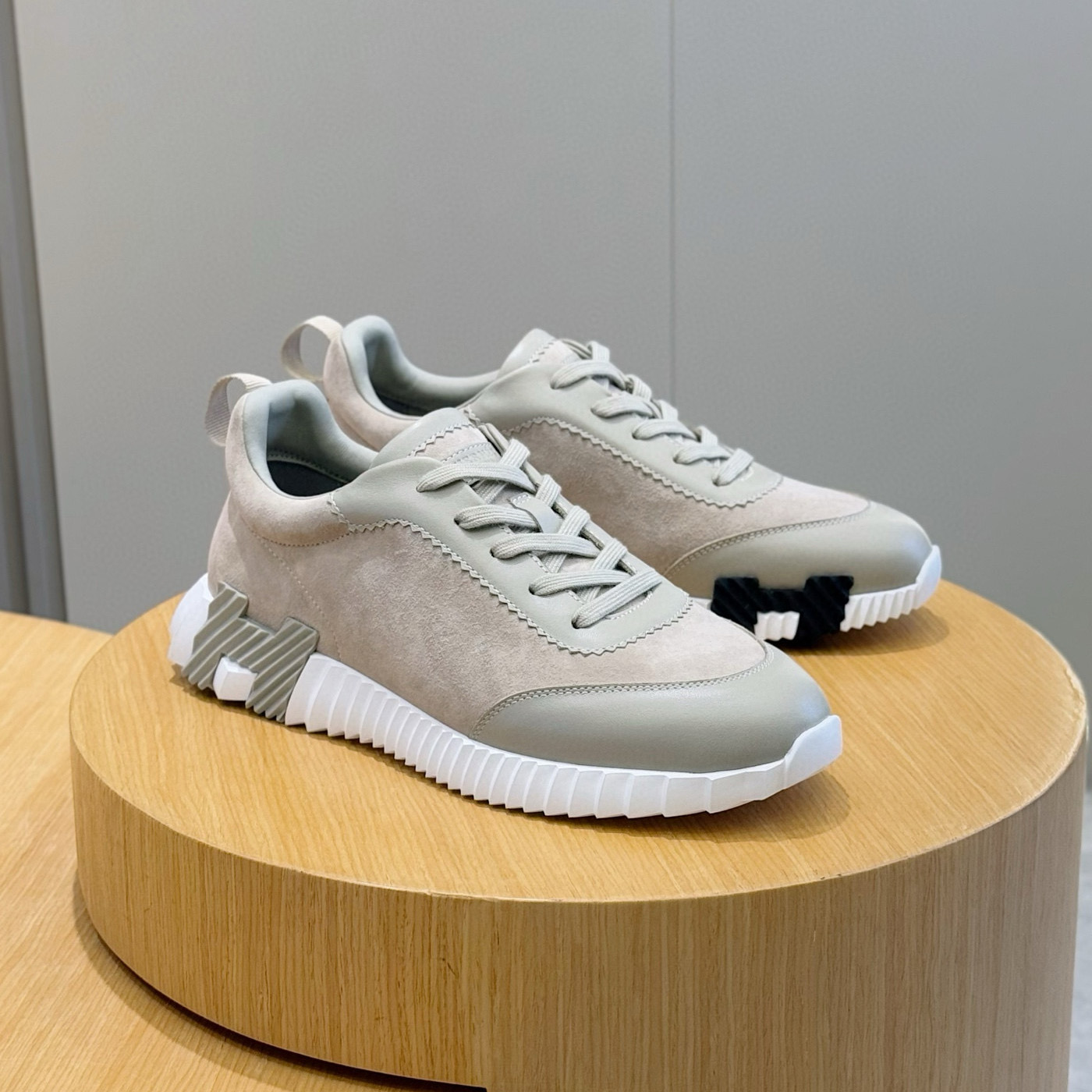 NIGO Hermes Bouncing Sneakers Men's Solid Color Leather and Suede Mesh Low-Top Lace-Up Shoes #nigo81413