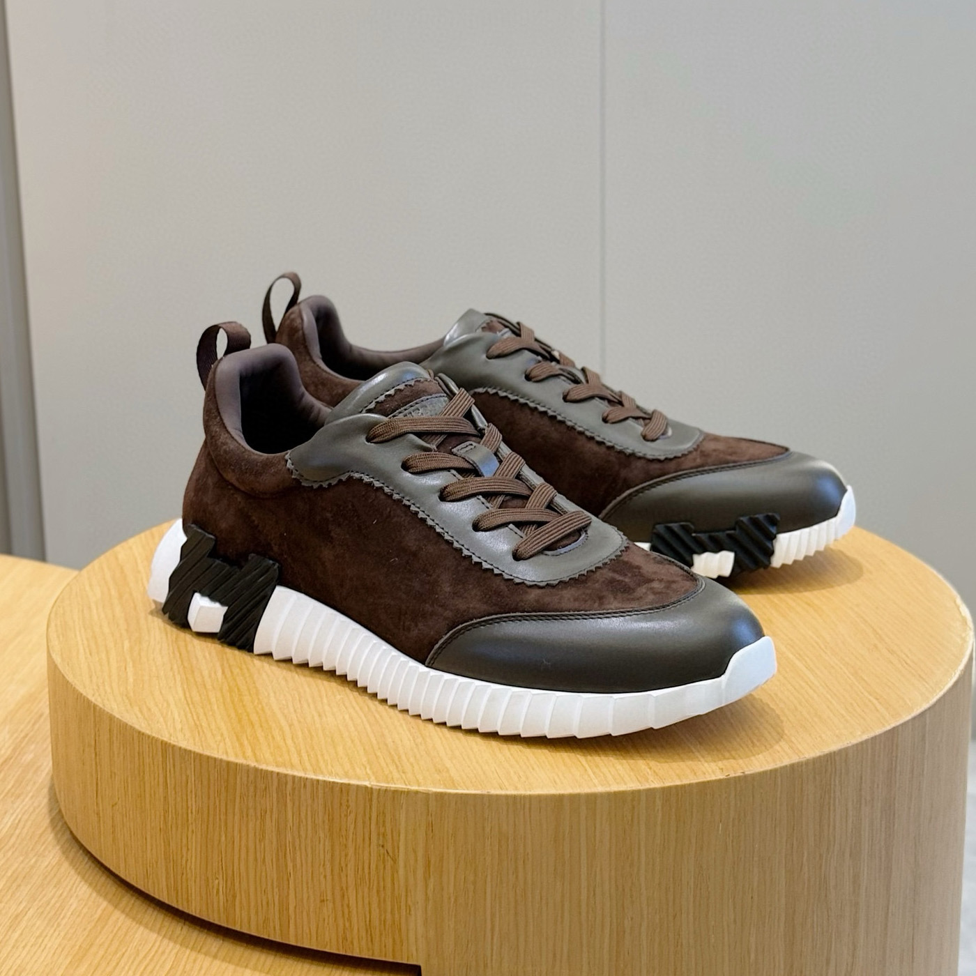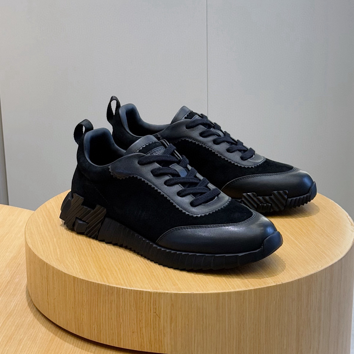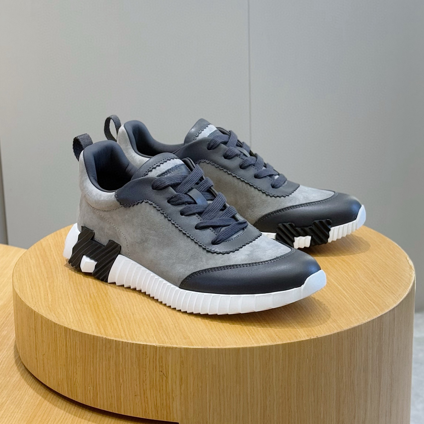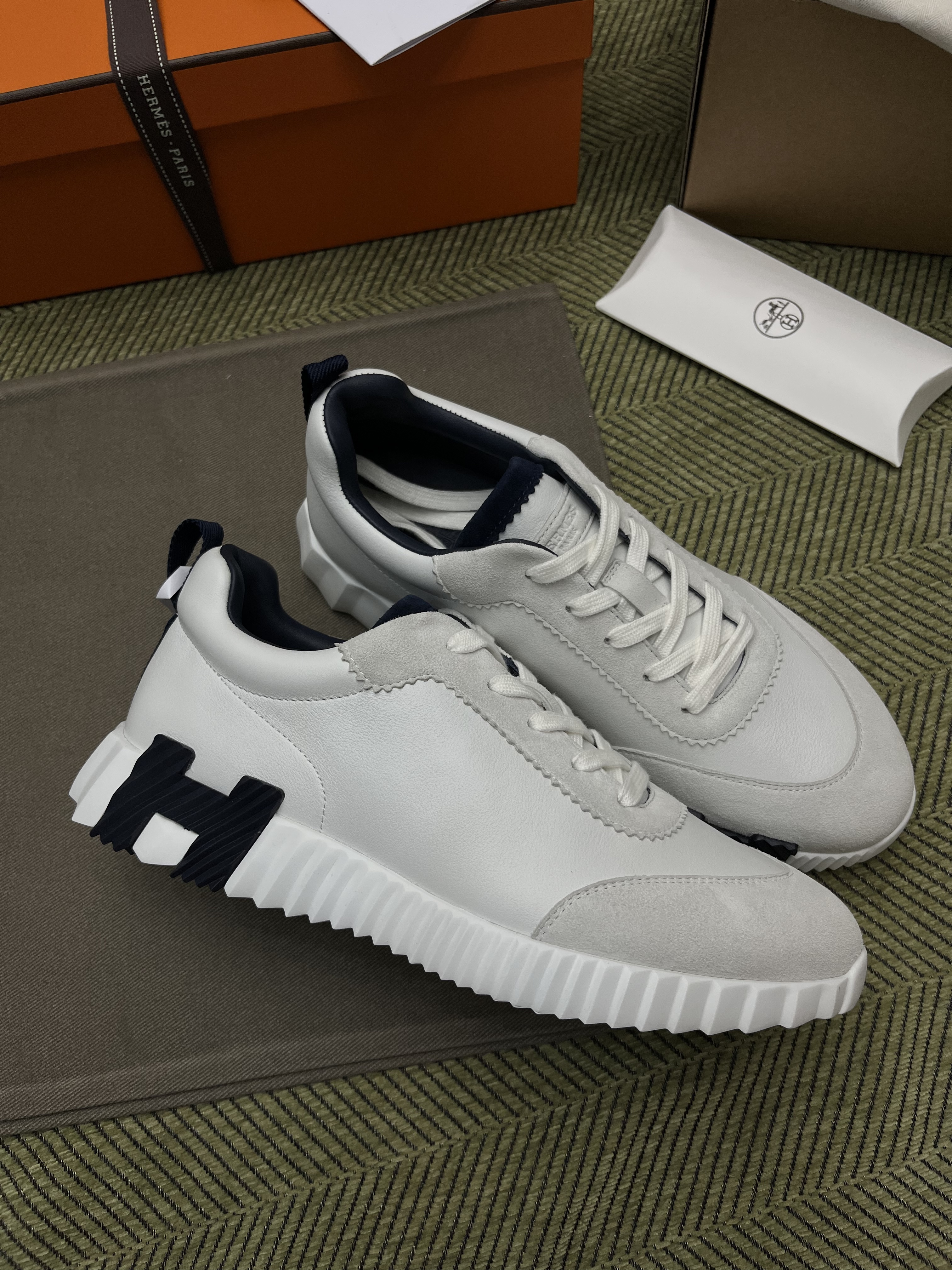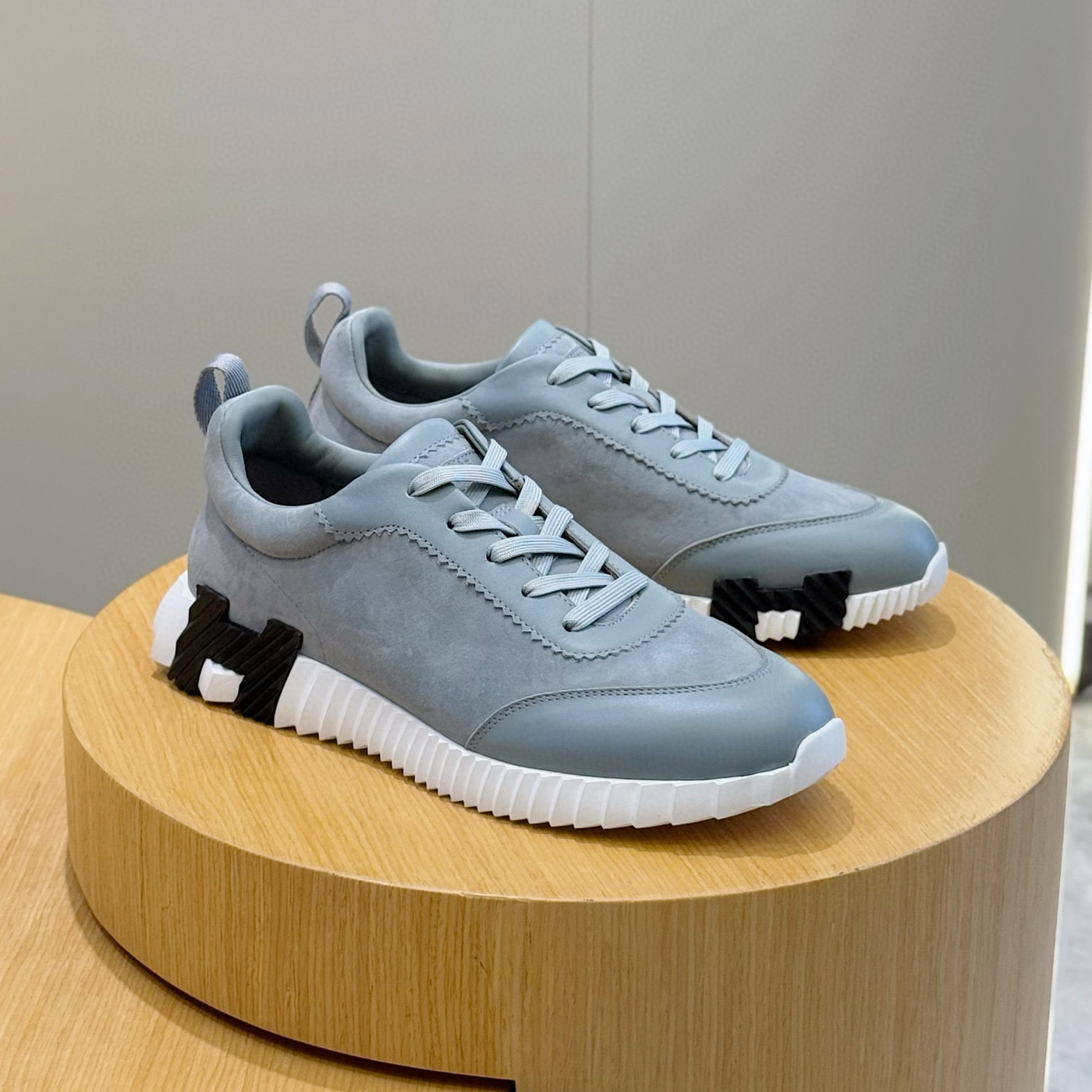 NIGO Hermes Bouncing Sneakers Men's Solid Color Leather and Suede Mesh Low-Top Lace-Up Shoes #nigo81413