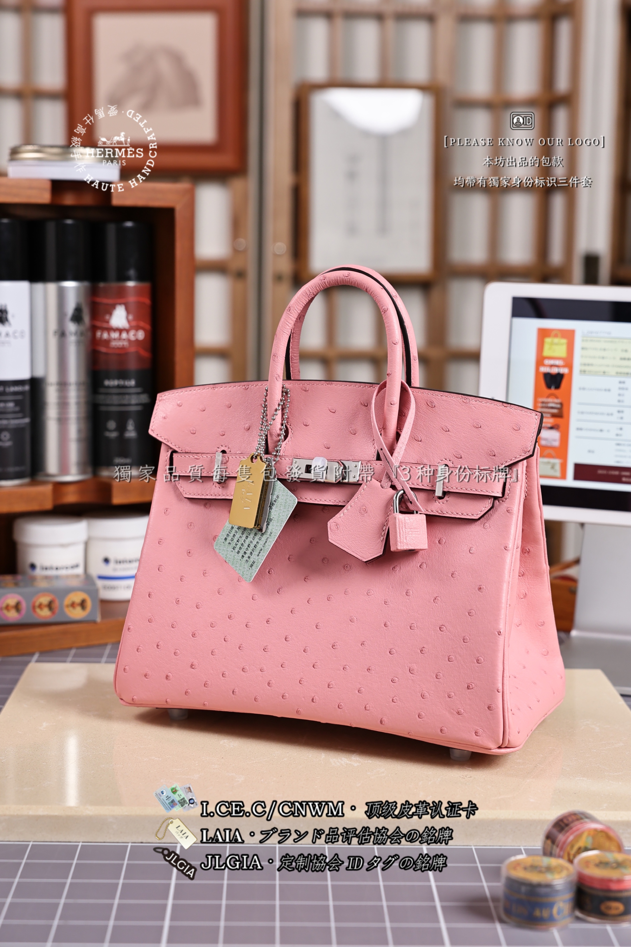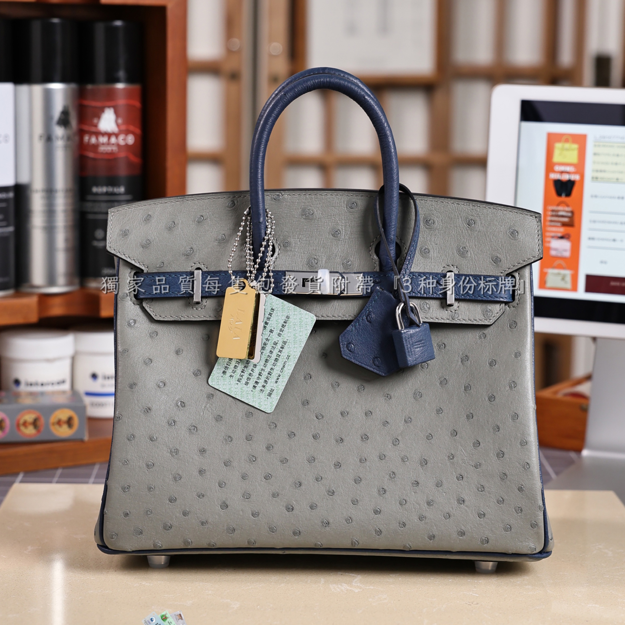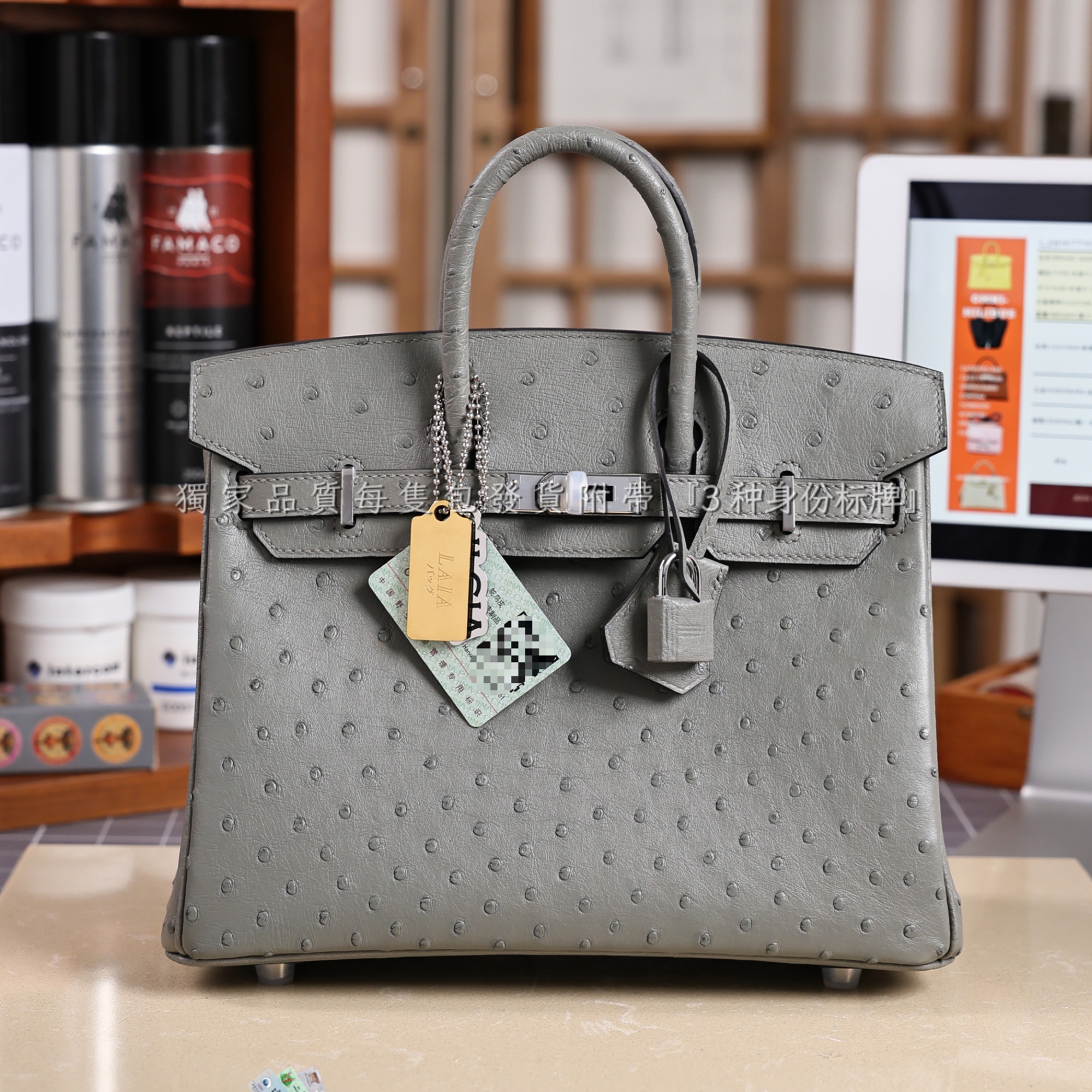 NIGO Hermes Women's Birkin 25 Ostrich Leather Platinum Bag With Silver Buckle Handbag Casual Solid Color Bag Bags H041944CK94 #nigo2137