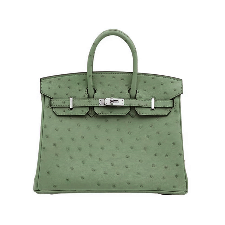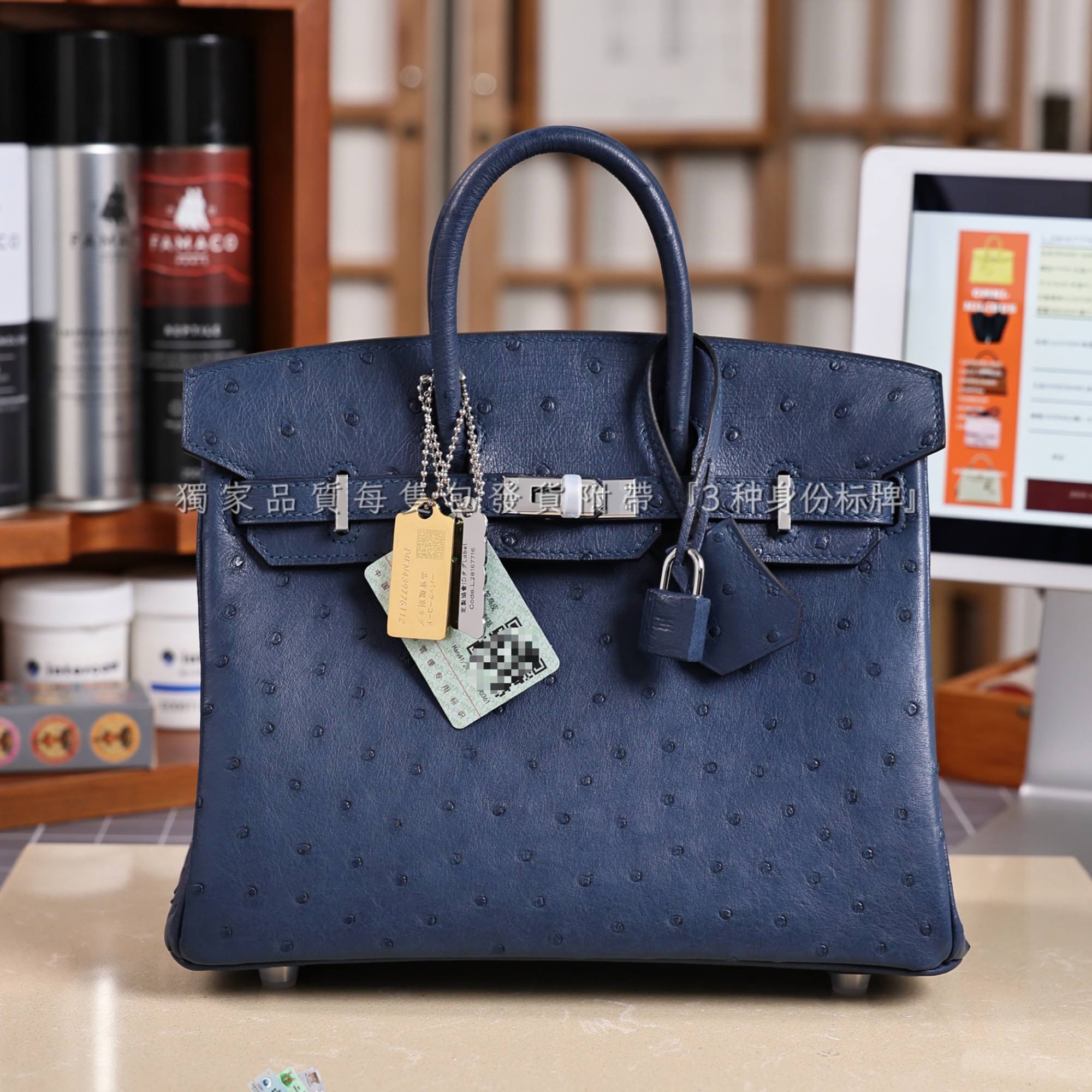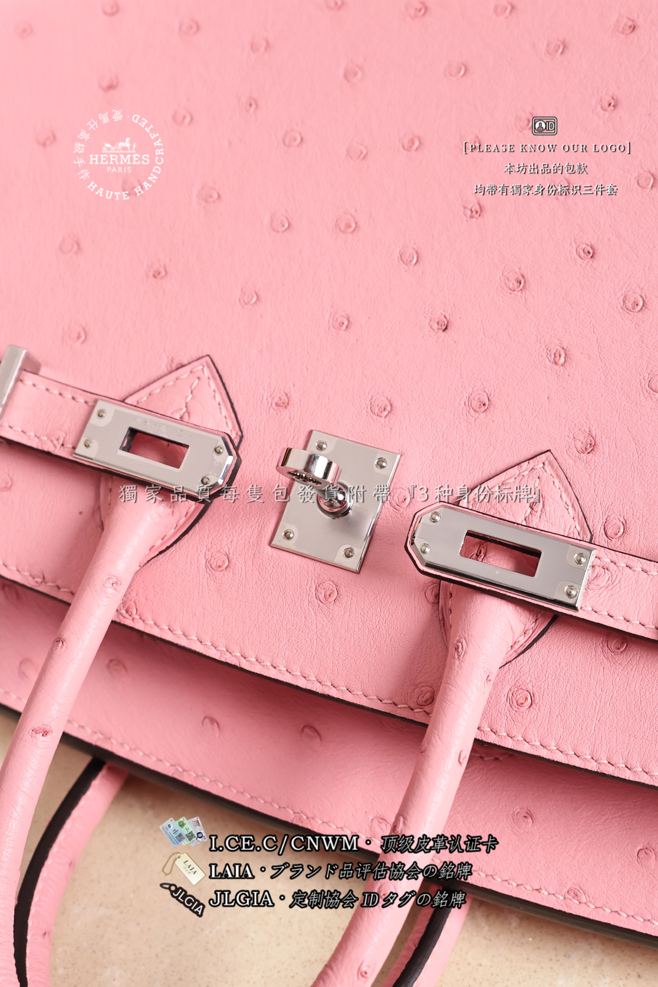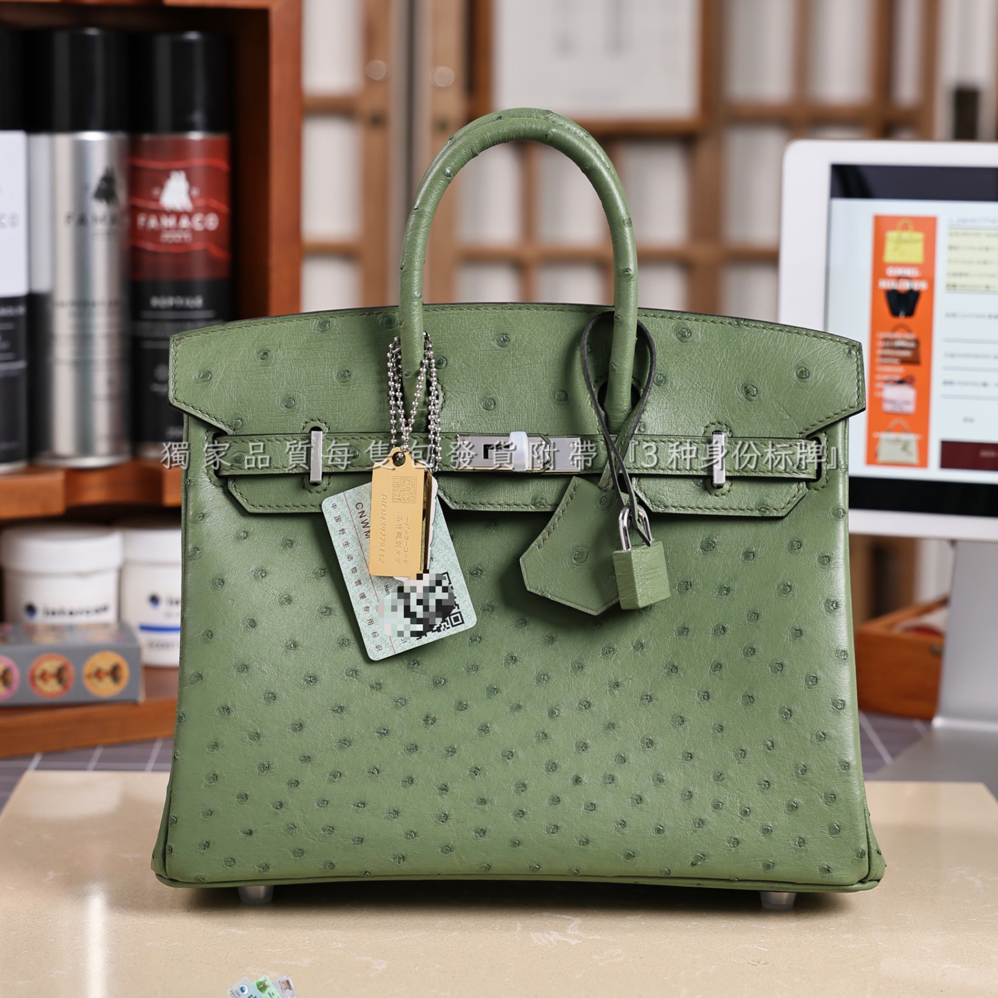 NIGO Hermes Women's Birkin 25 Ostrich Leather Platinum Bag With Silver Buckle Handbag Casual Solid Color Bag Bags H041944CK94 #nigo2137