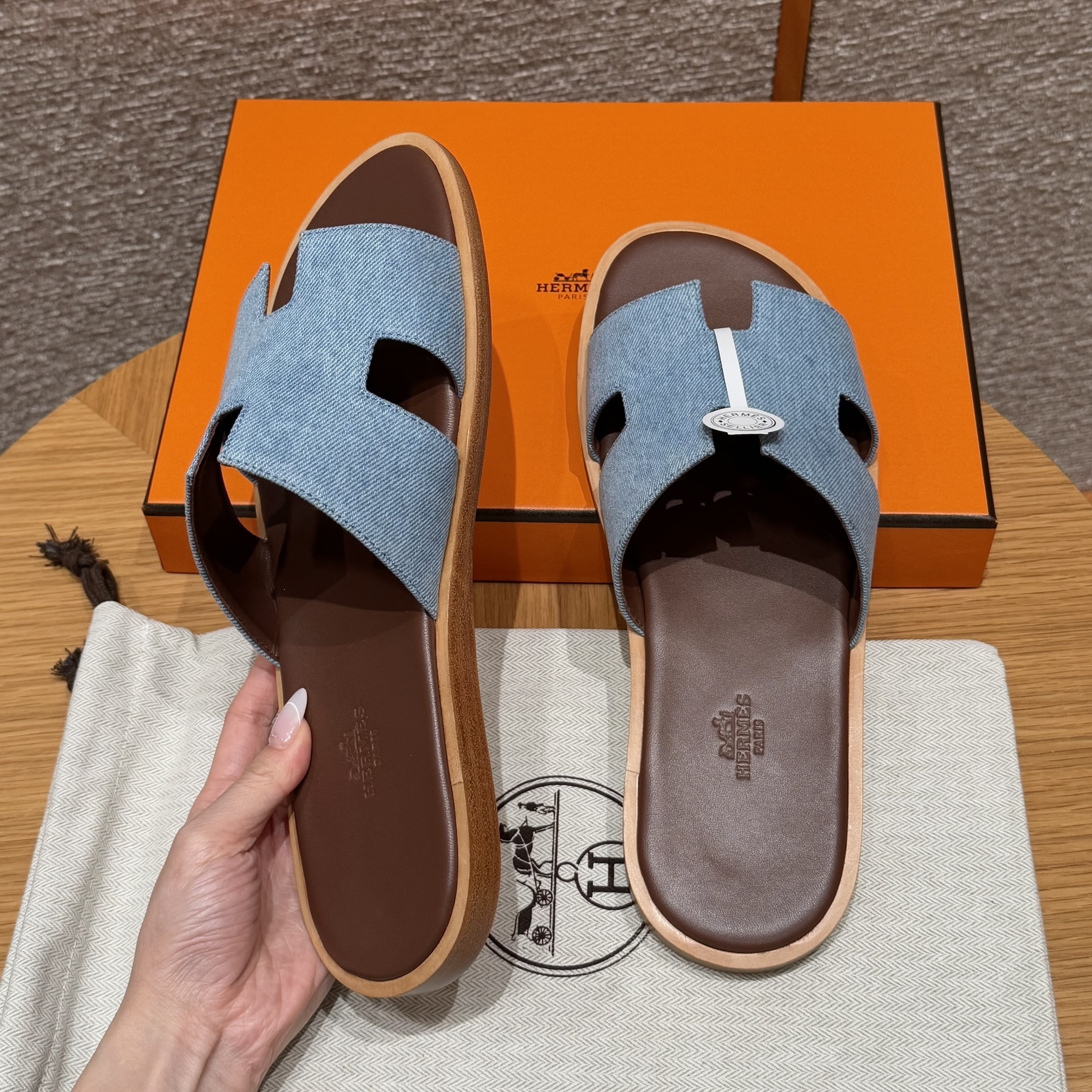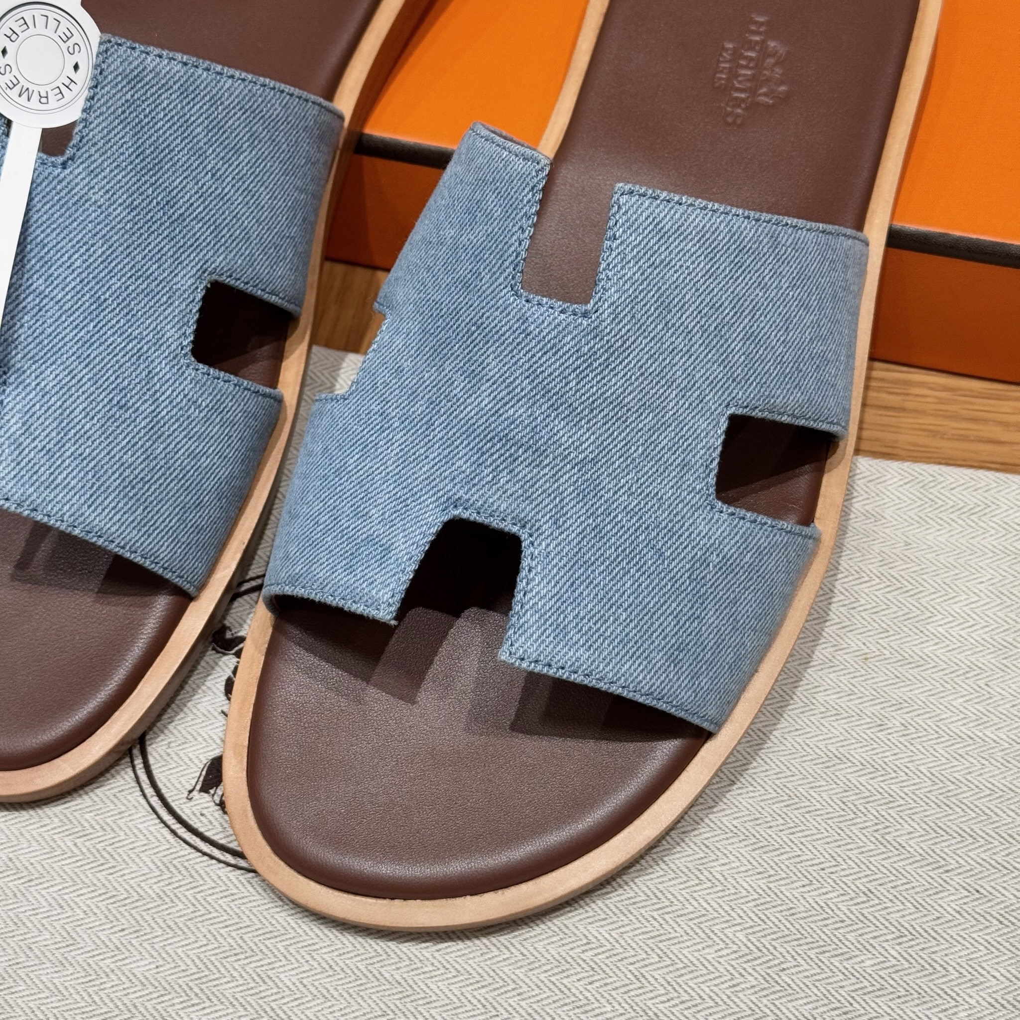 NIGO Hermes Men's Summer Izmir Sandals Embroidered Leather Cowboy Round Toe Flat Casual Slippers Shoes #nigo81317