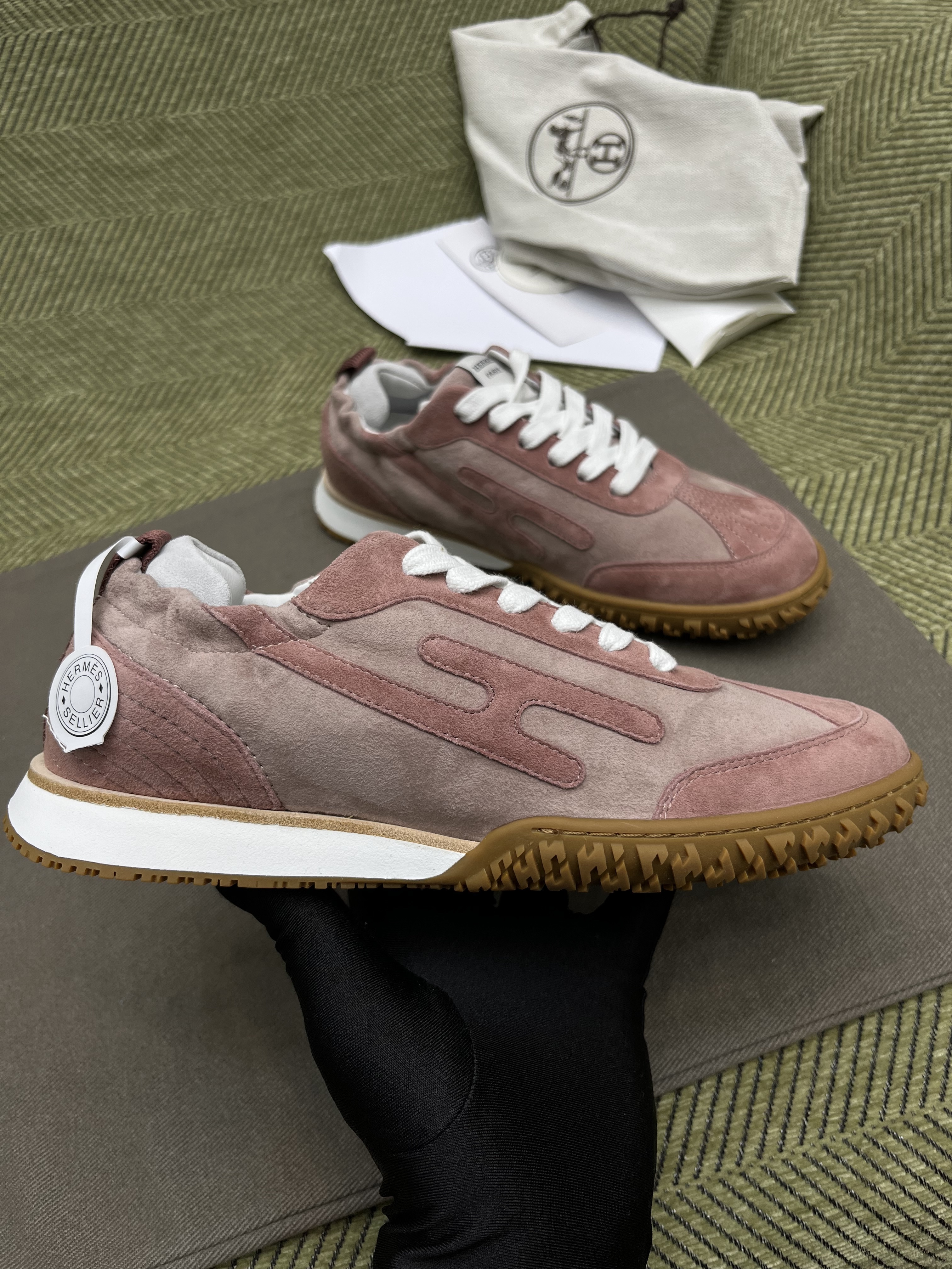 NIGO Hermes Women's Four Seasons Low Round Toe Lace Up Casual Shoes Solid Color Leather Jet Sneakers #nigo81318