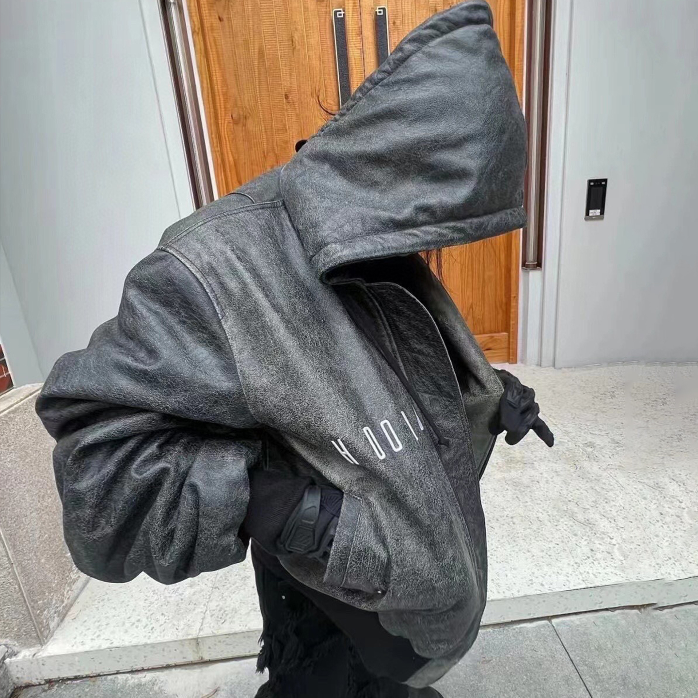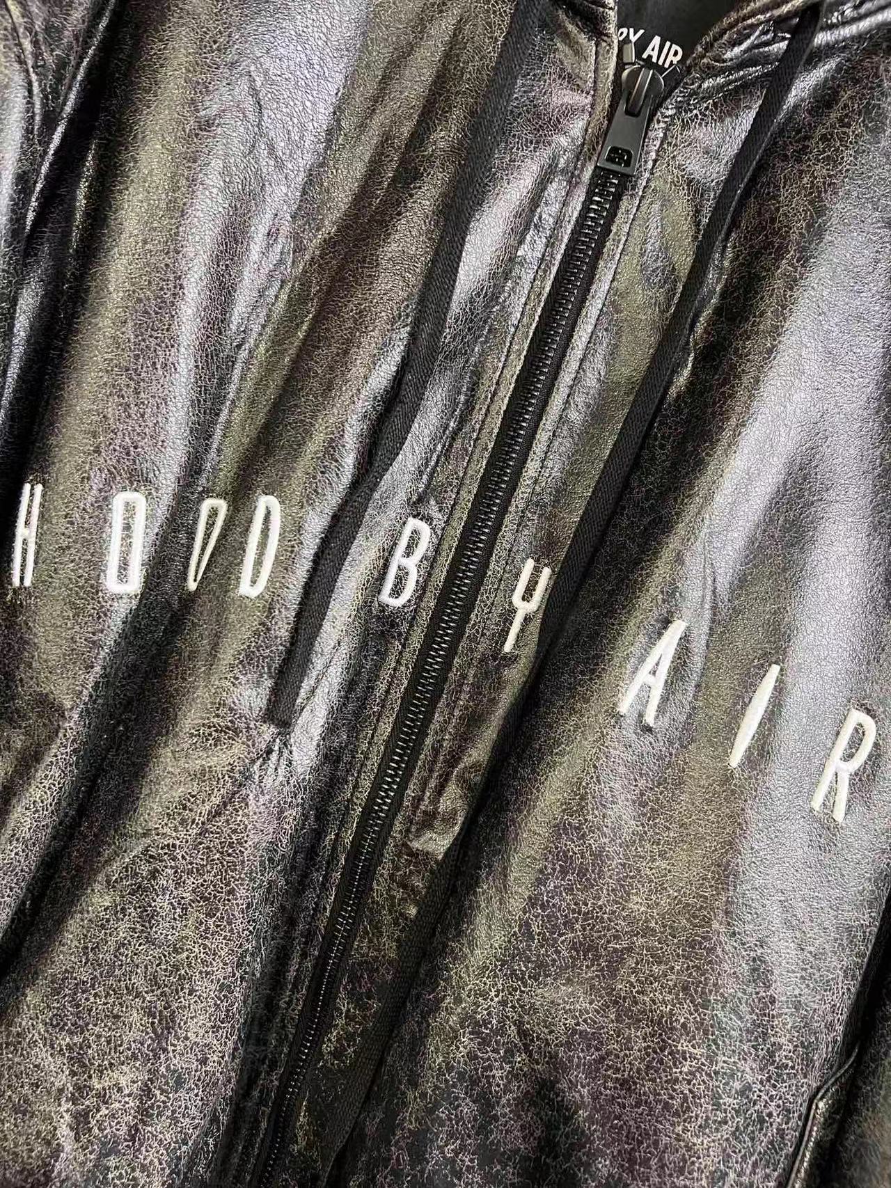 NIGO HOOD BY AIR Men's Winter Solid Color Retro Burst Pattern Long Sleeved Hooded Leather Coat Jacket Ngvp #nigo6258