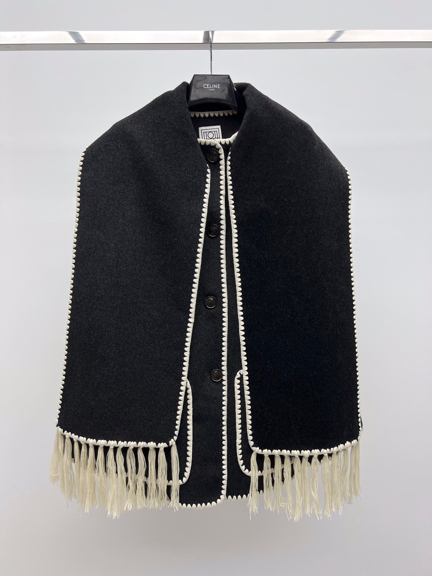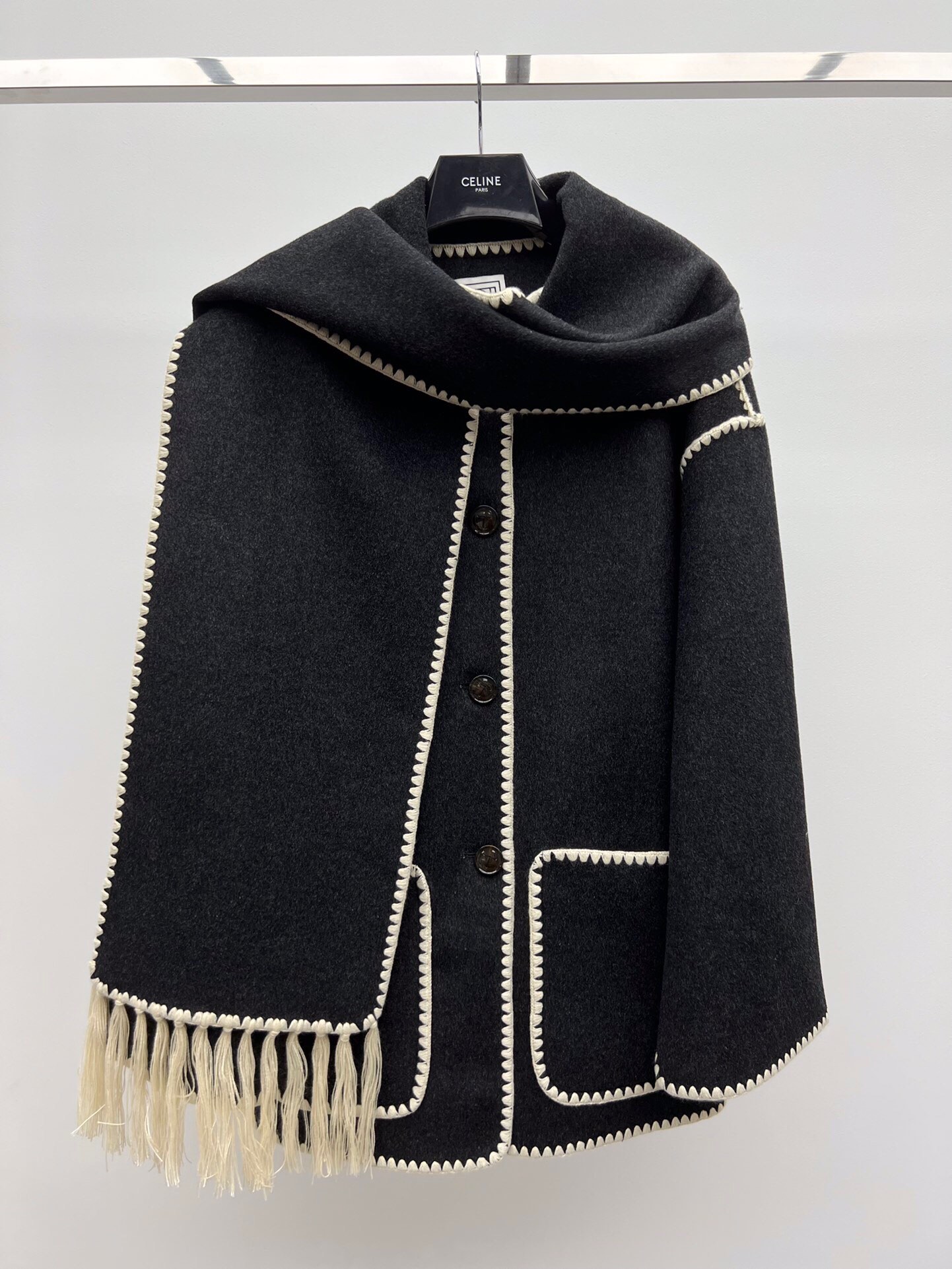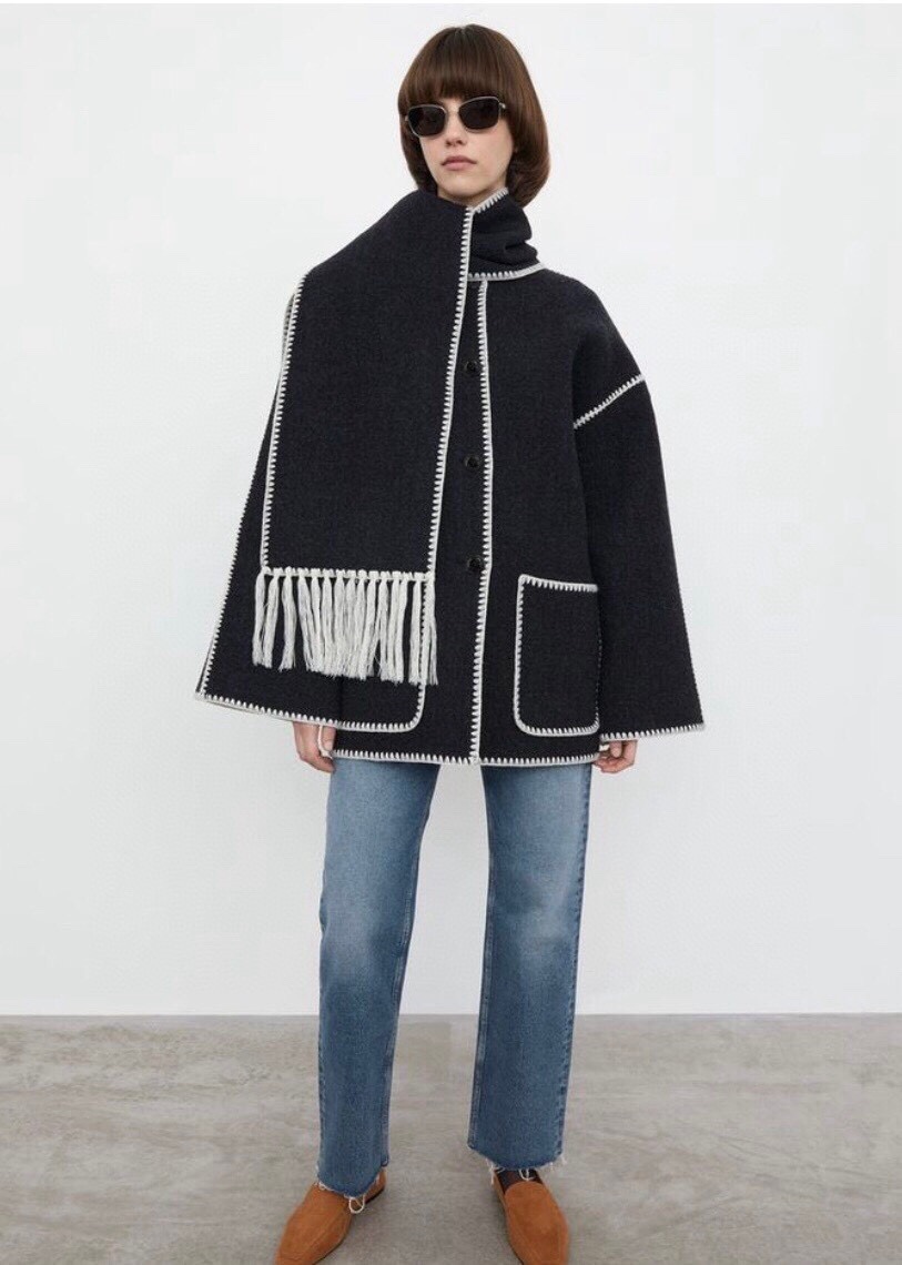 NIGO Toteme Women's Embroidered Tassel Scarf Jacket Dark Grey Mélange #nigo286726