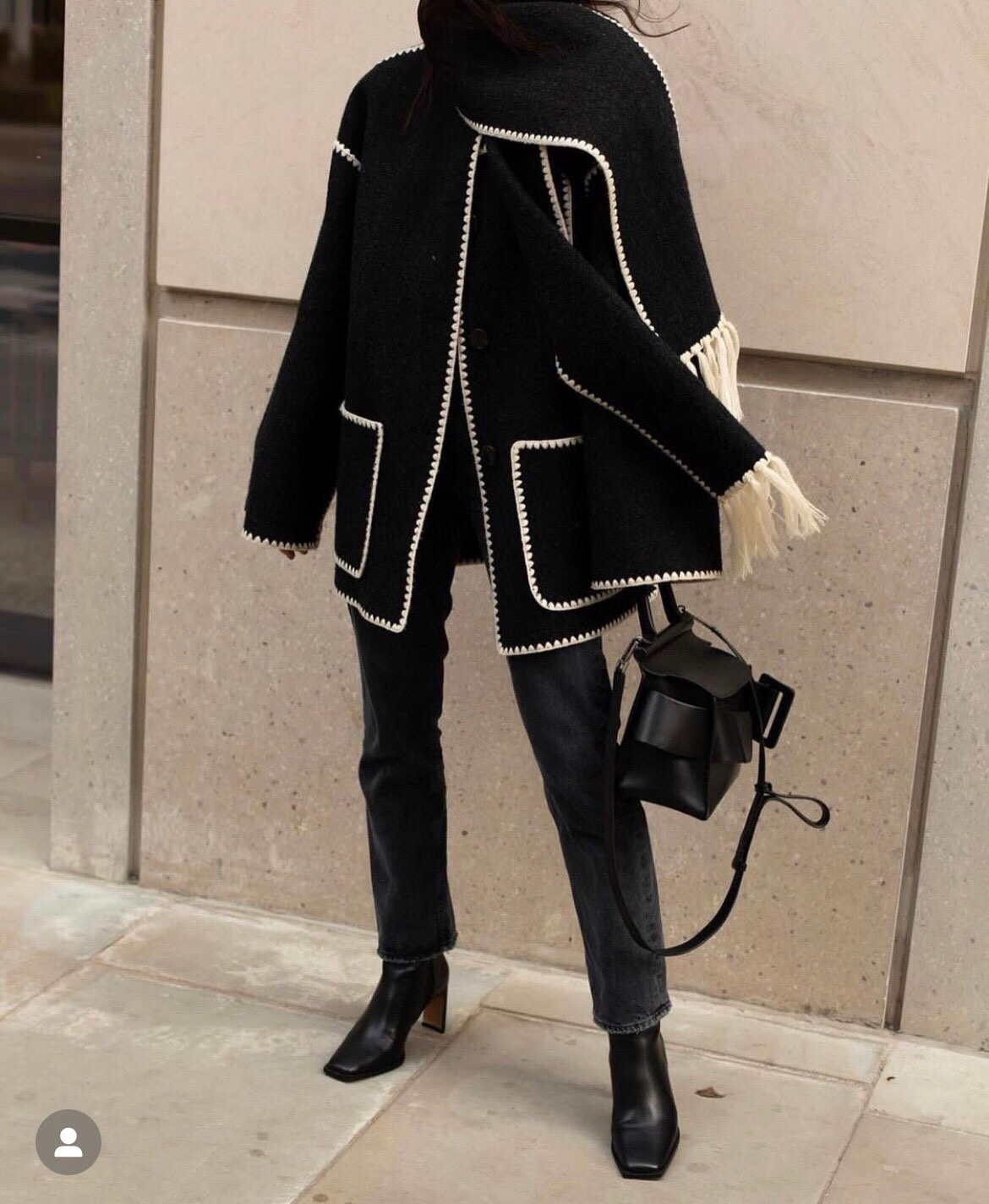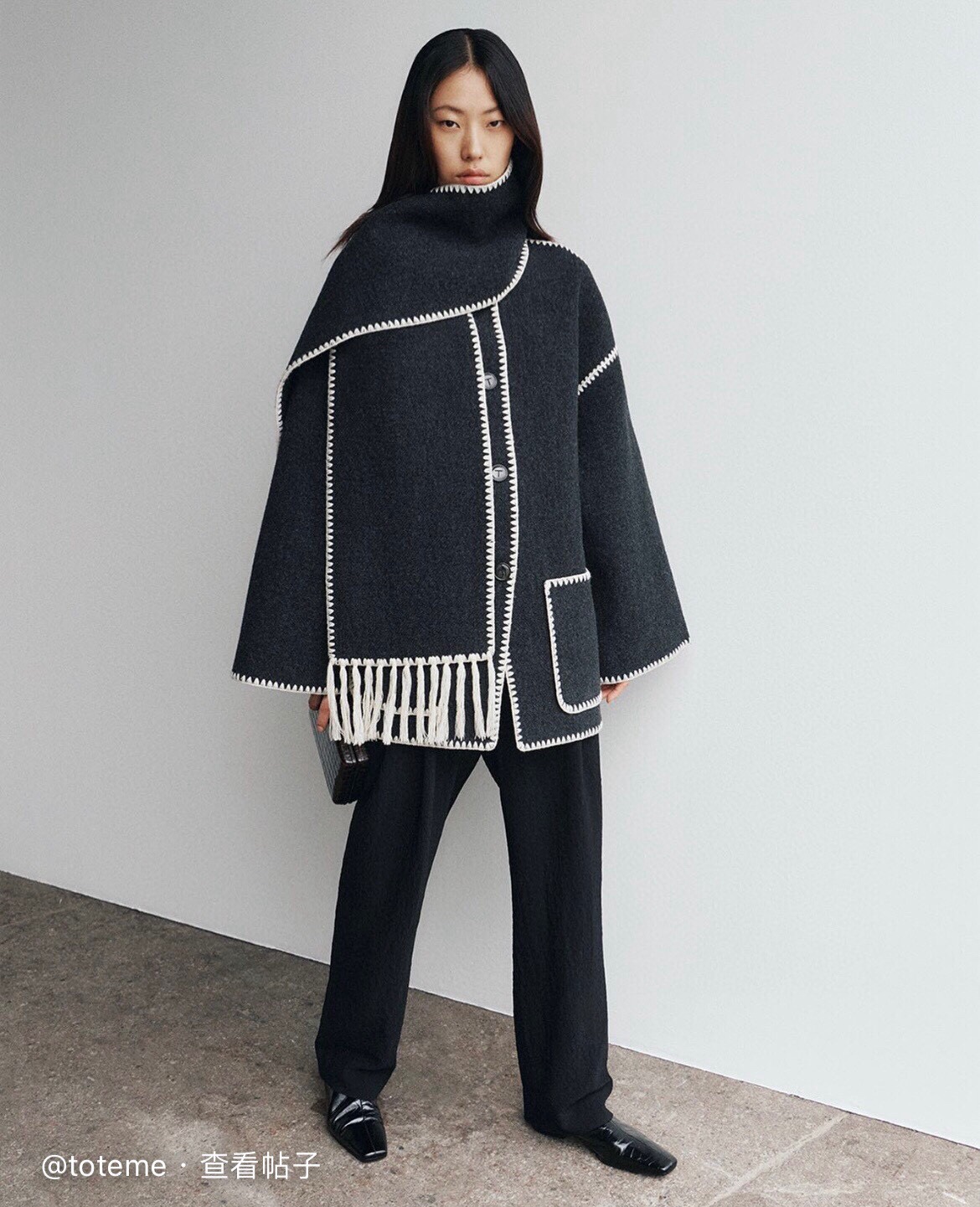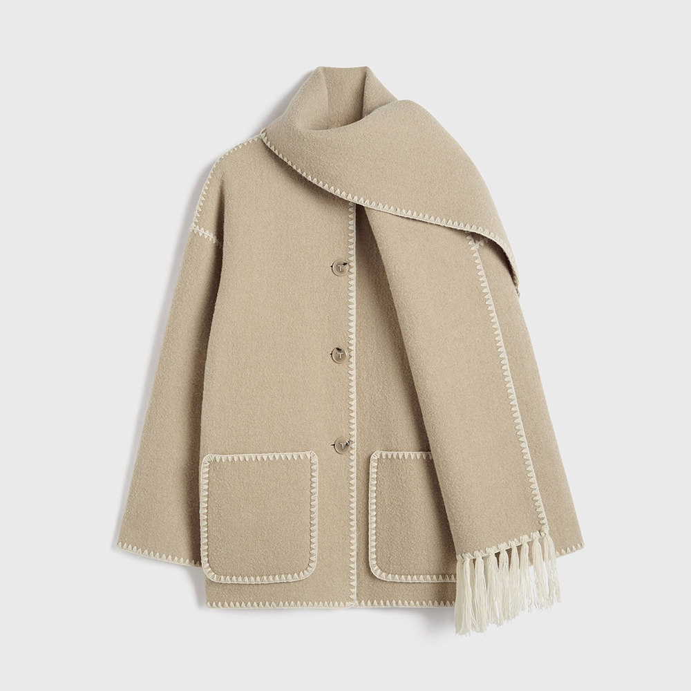 NIGO Toteme Women's Embroidered Tassel Scarf Jacket Dark Grey Mélange #nigo286726
