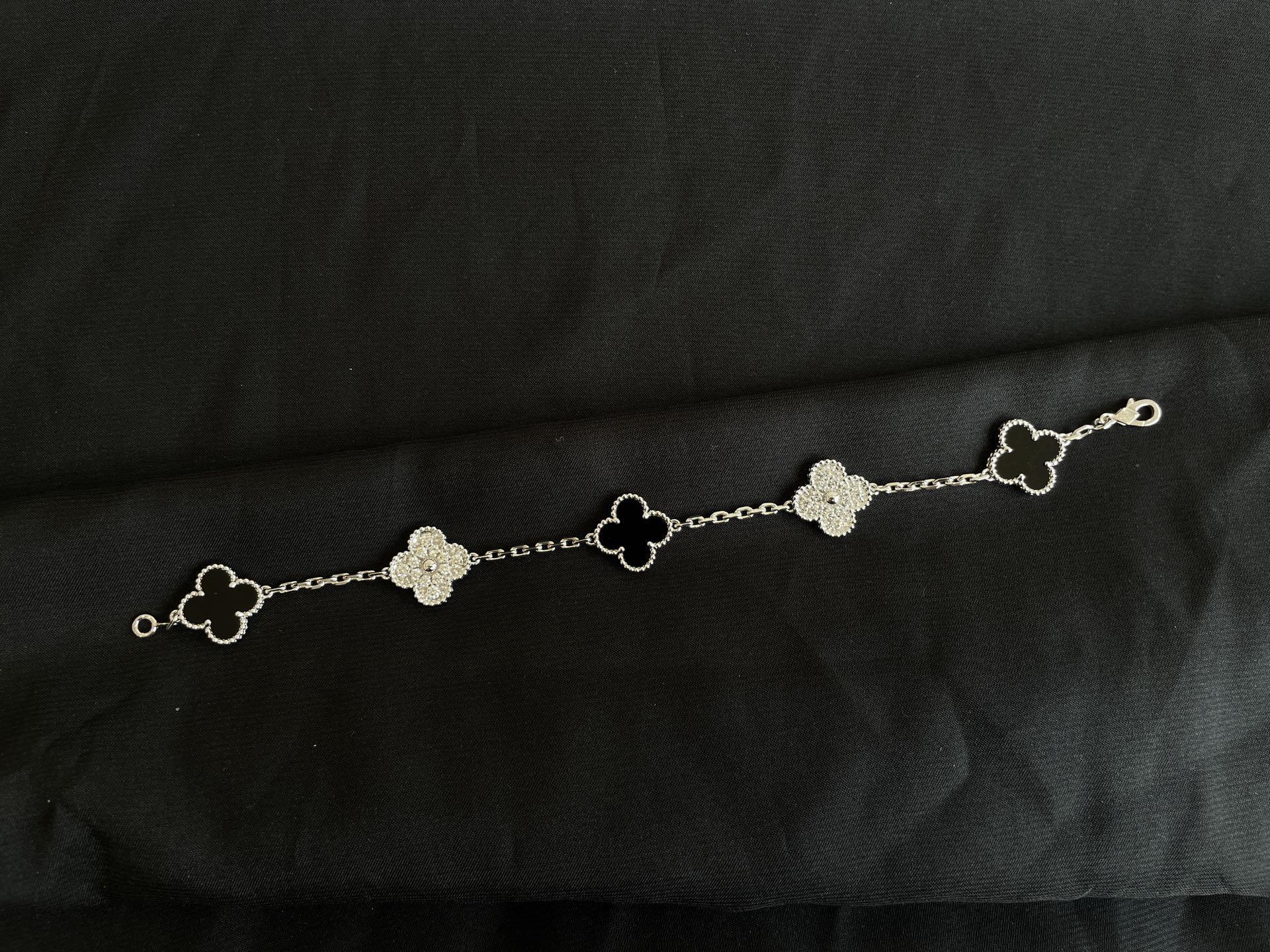 NIGO Van Cleef & Arpels Diamond & Onyx Vintage 18Kt White Gold Alhambra Bracelet #nigo320139