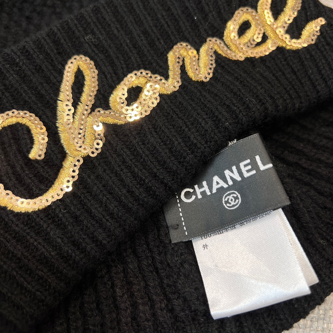 Chanel Knitted Cashmere Scarf Hat #nigo96643