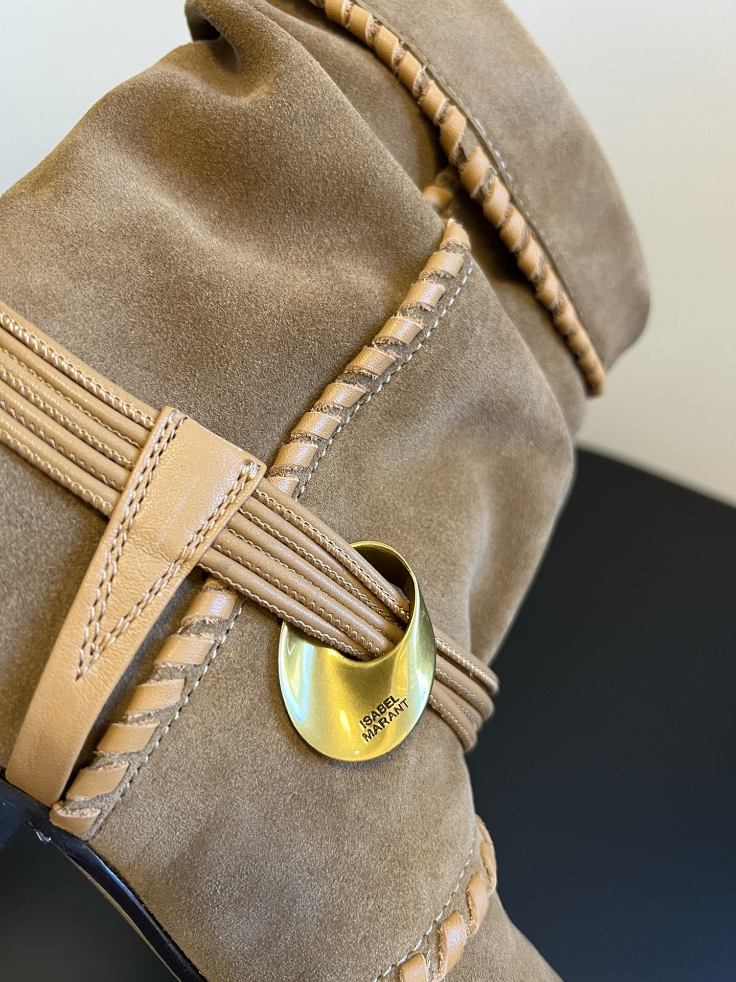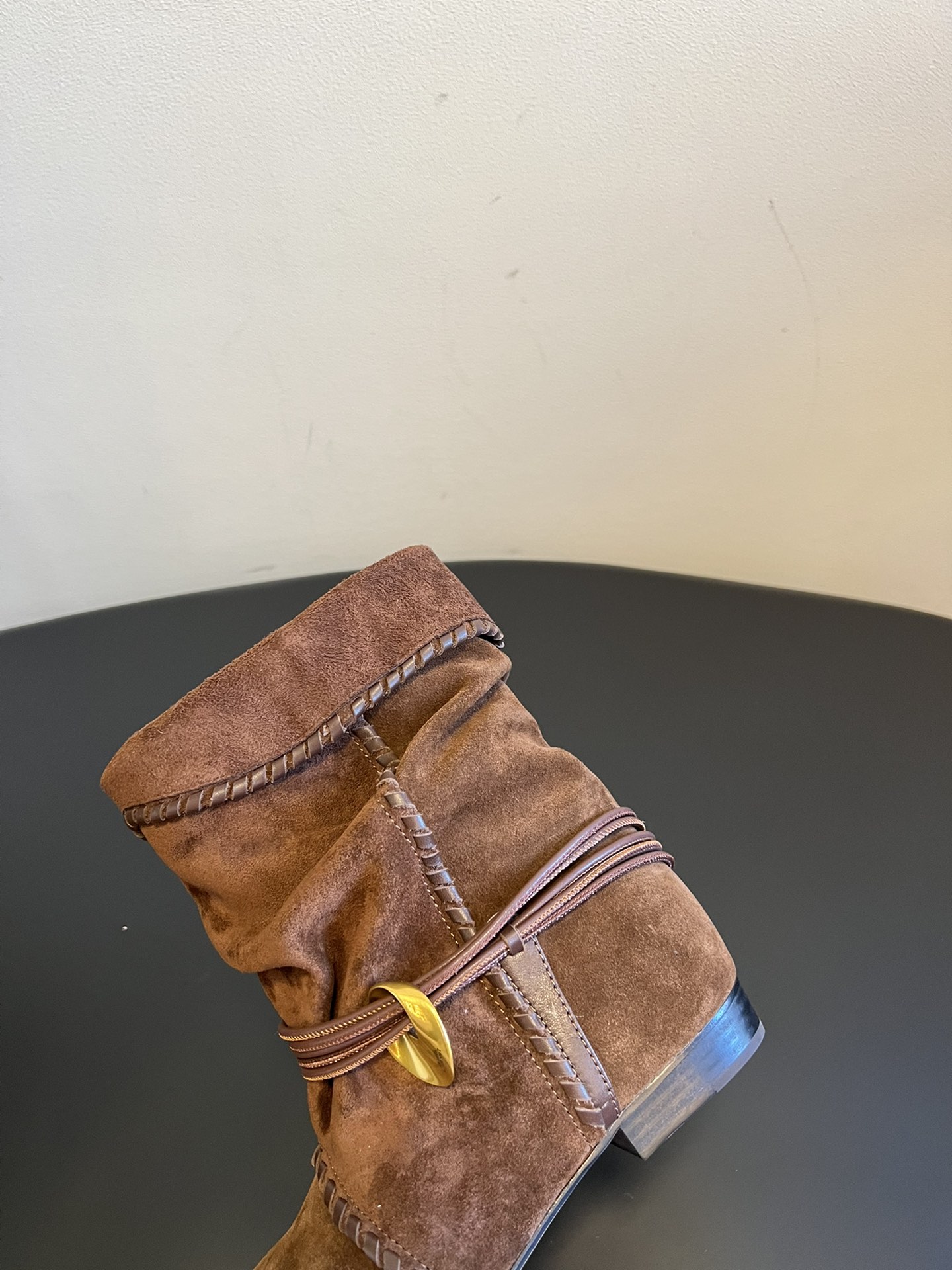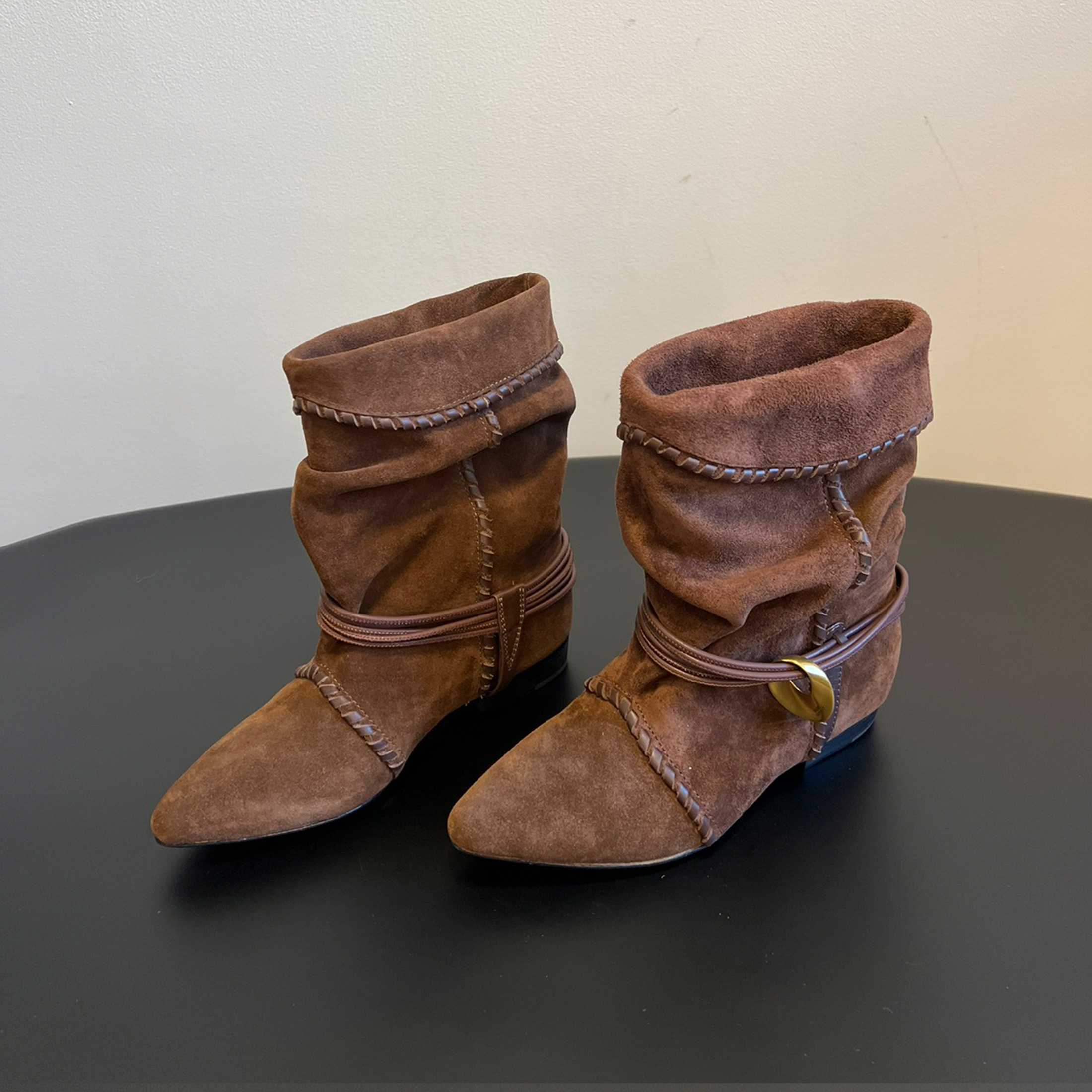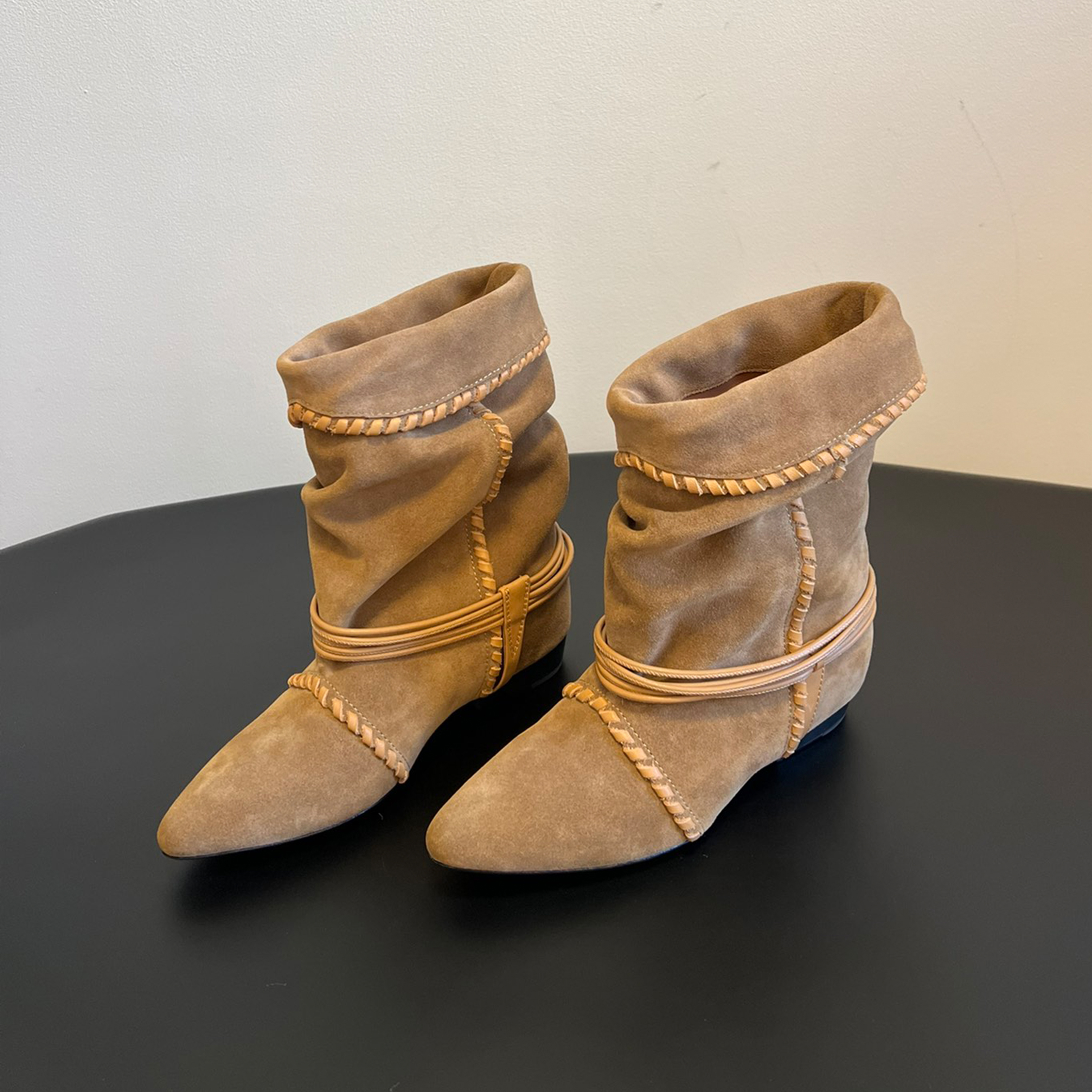 NIGO Isabel Marant Women's Fashion Trend Pleated Suede Temperament Short Boots Spring Summer Pointed Toe Leather Knight Boots Shoes #nigo81111