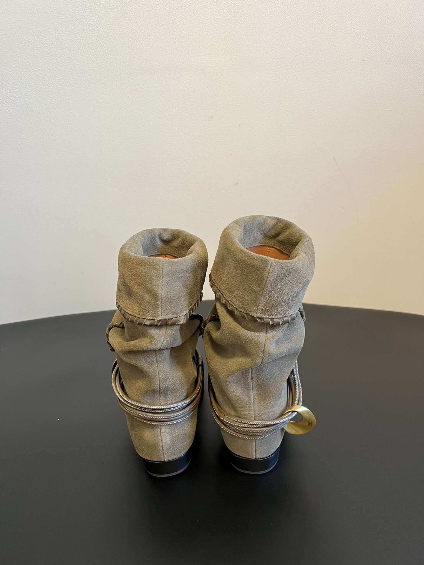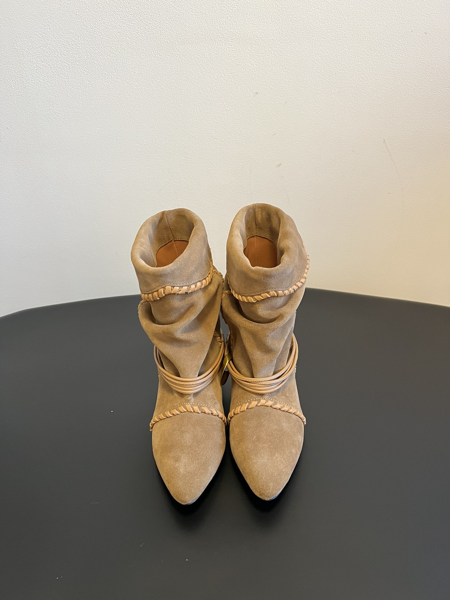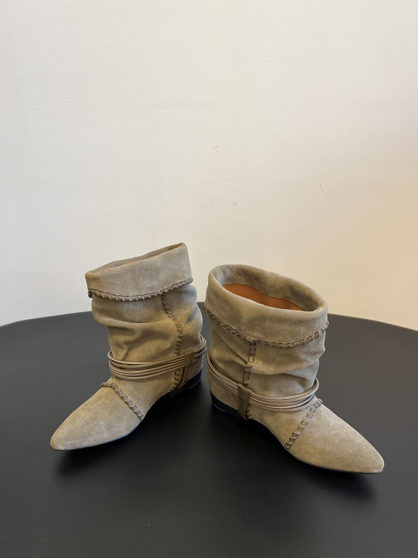 NIGO Isabel Marant Women's Fashion Trend Pleated Suede Temperament Short Boots Spring Summer Pointed Toe Leather Knight Boots Shoes #nigo81111