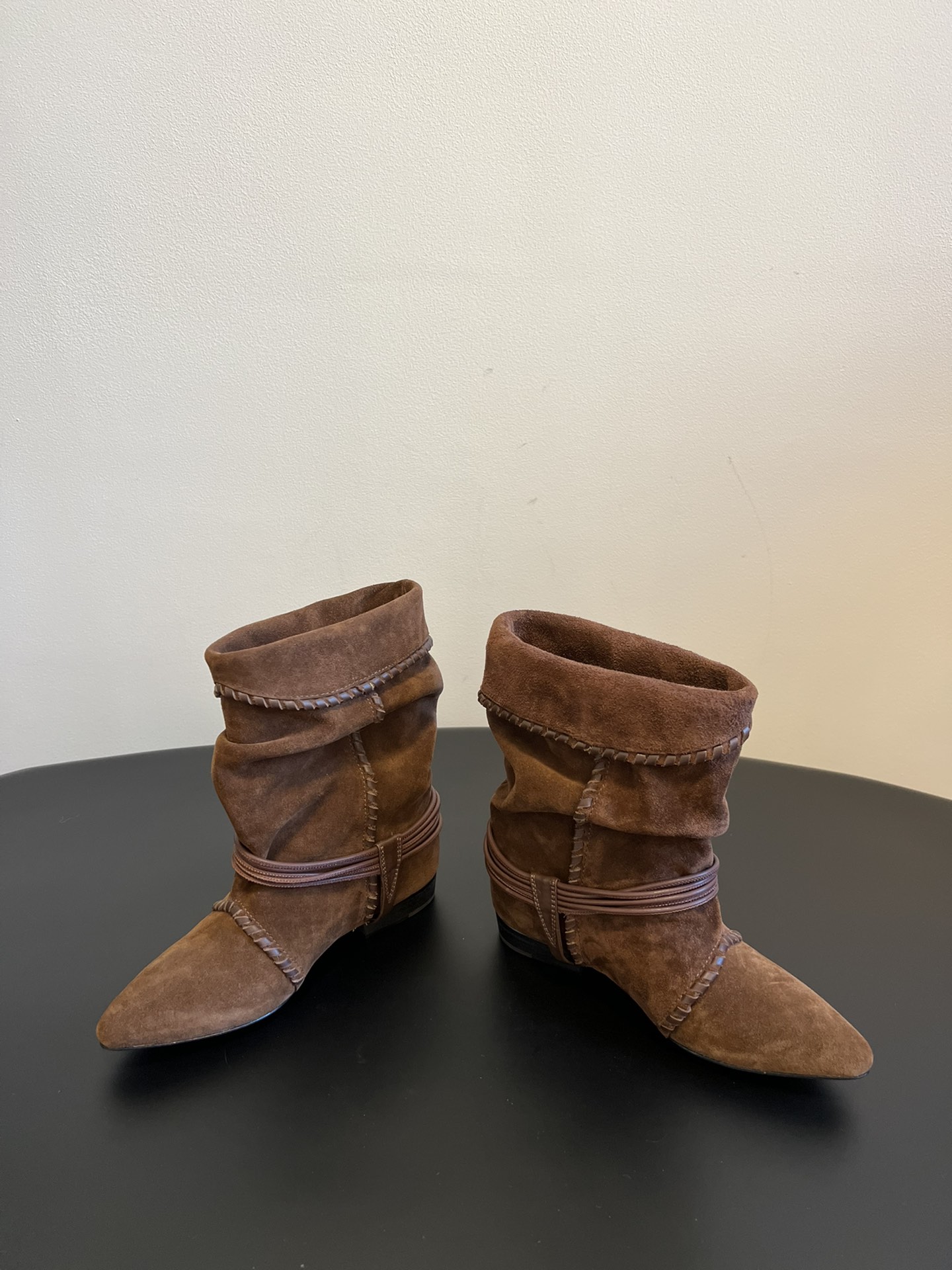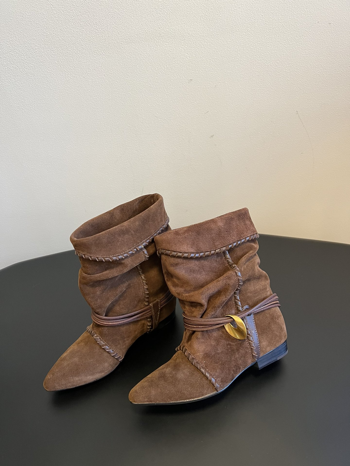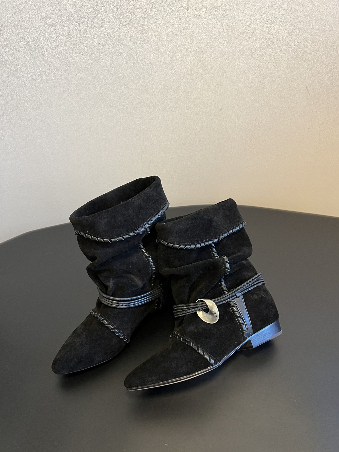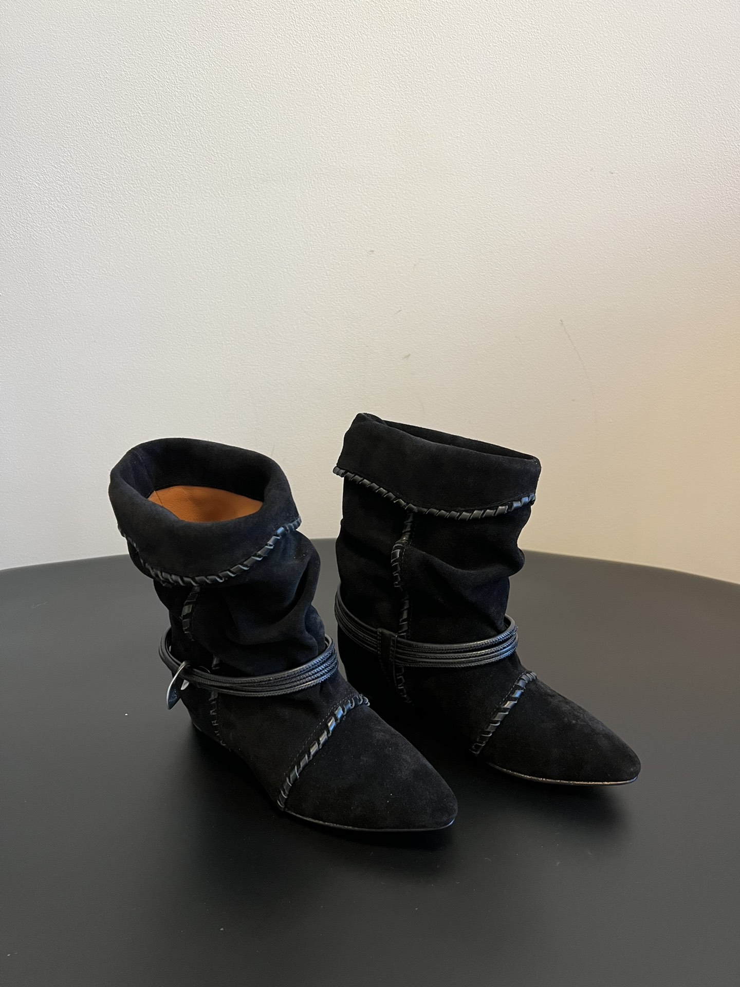 NIGO Isabel Marant Women's Fashion Trend Pleated Suede Temperament Short Boots Spring Summer Pointed Toe Leather Knight Boots Shoes #nigo81111